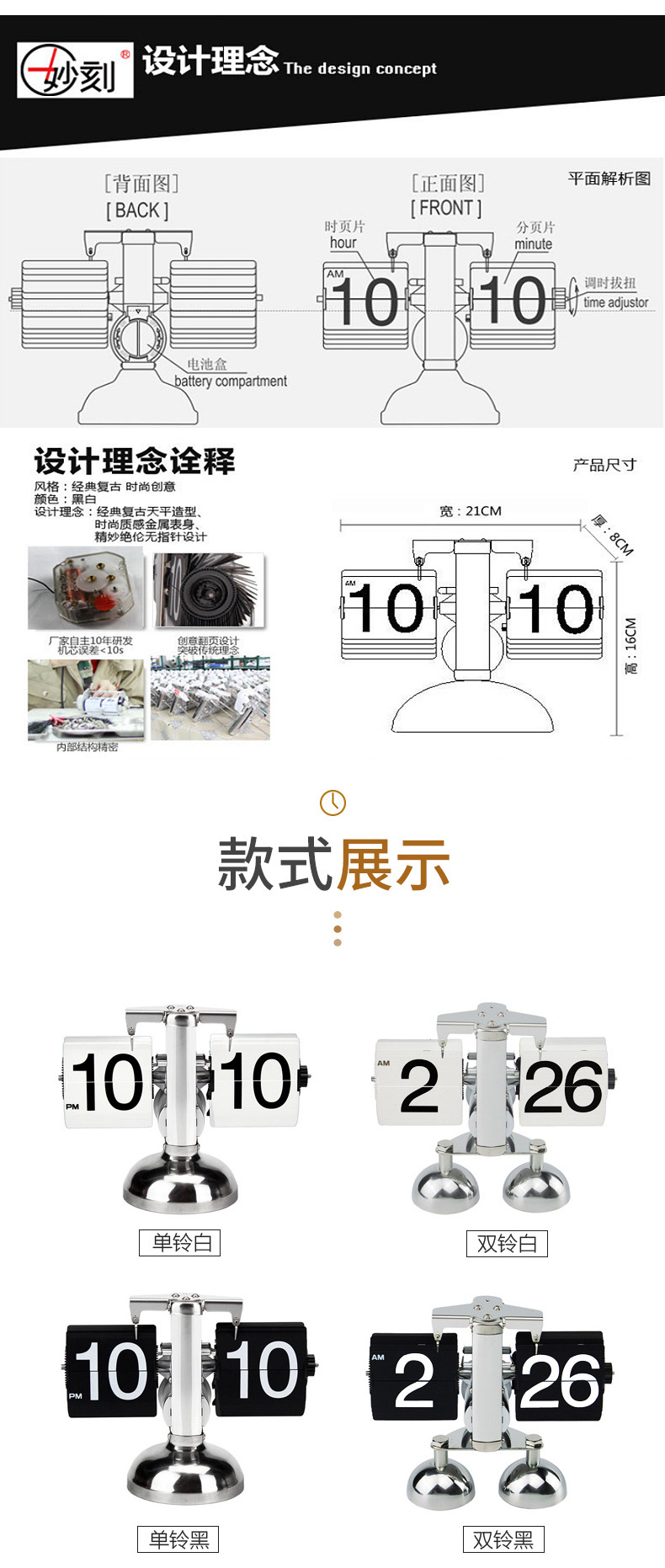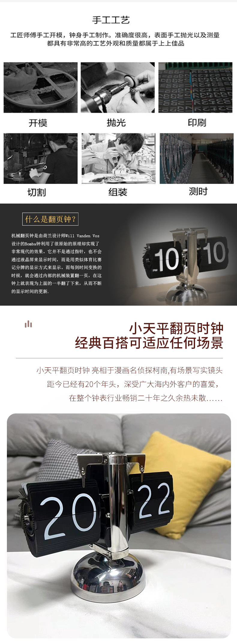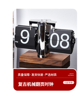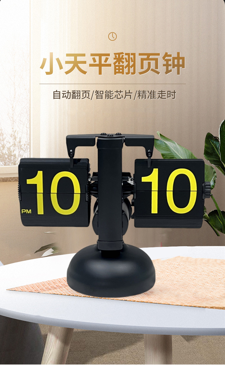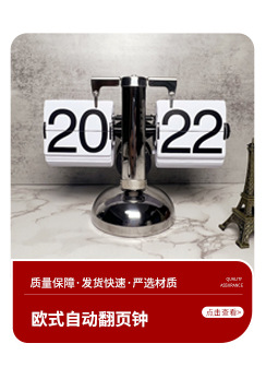 跨境欧式自动翻页钟复古简约家居客厅座钟小天平机械自动翻页时钟