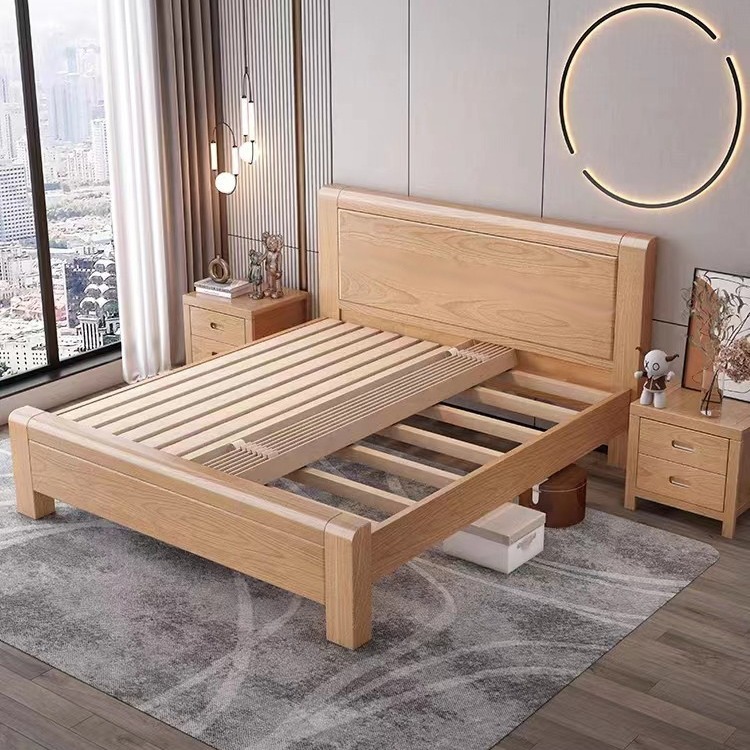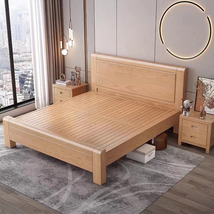 全实木床榉木双人原木1米8主卧室1.5储物高箱床中式现代简约家具
