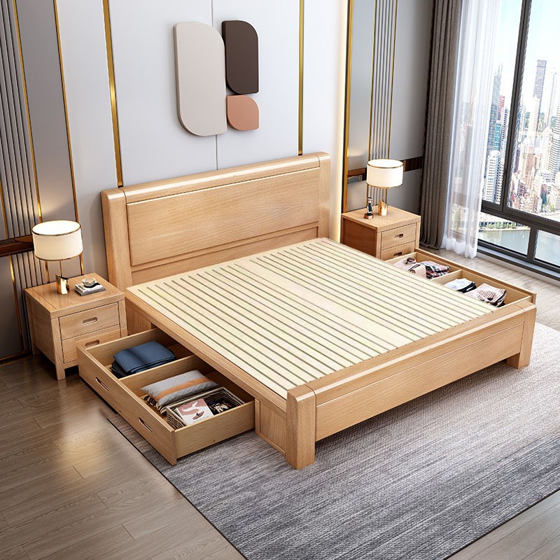 加厚加粗榉木实木床现代简约1.8米单双人1.5米主卧大床实心脚床