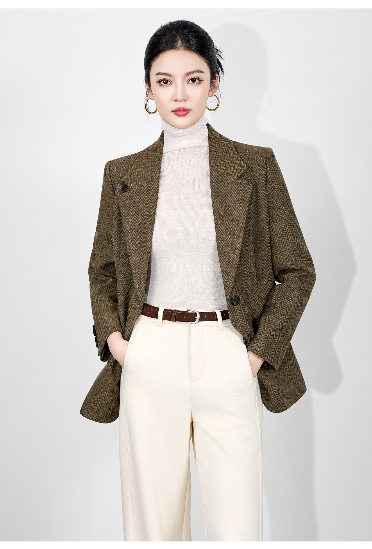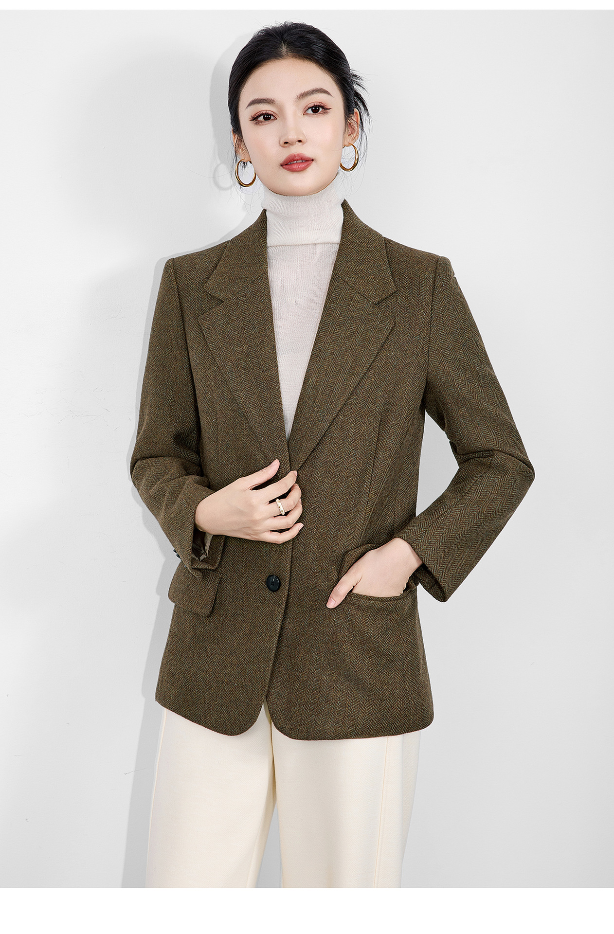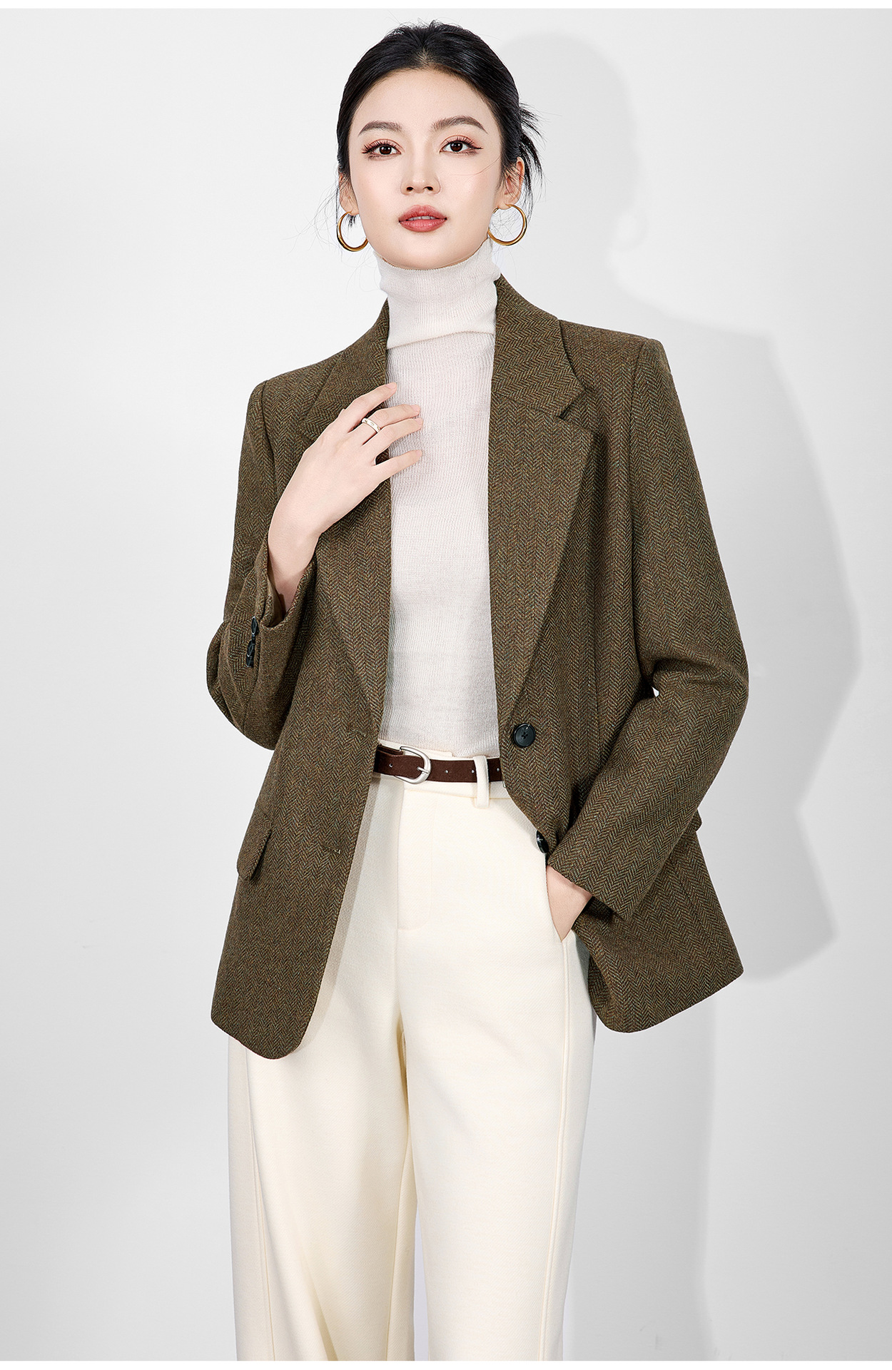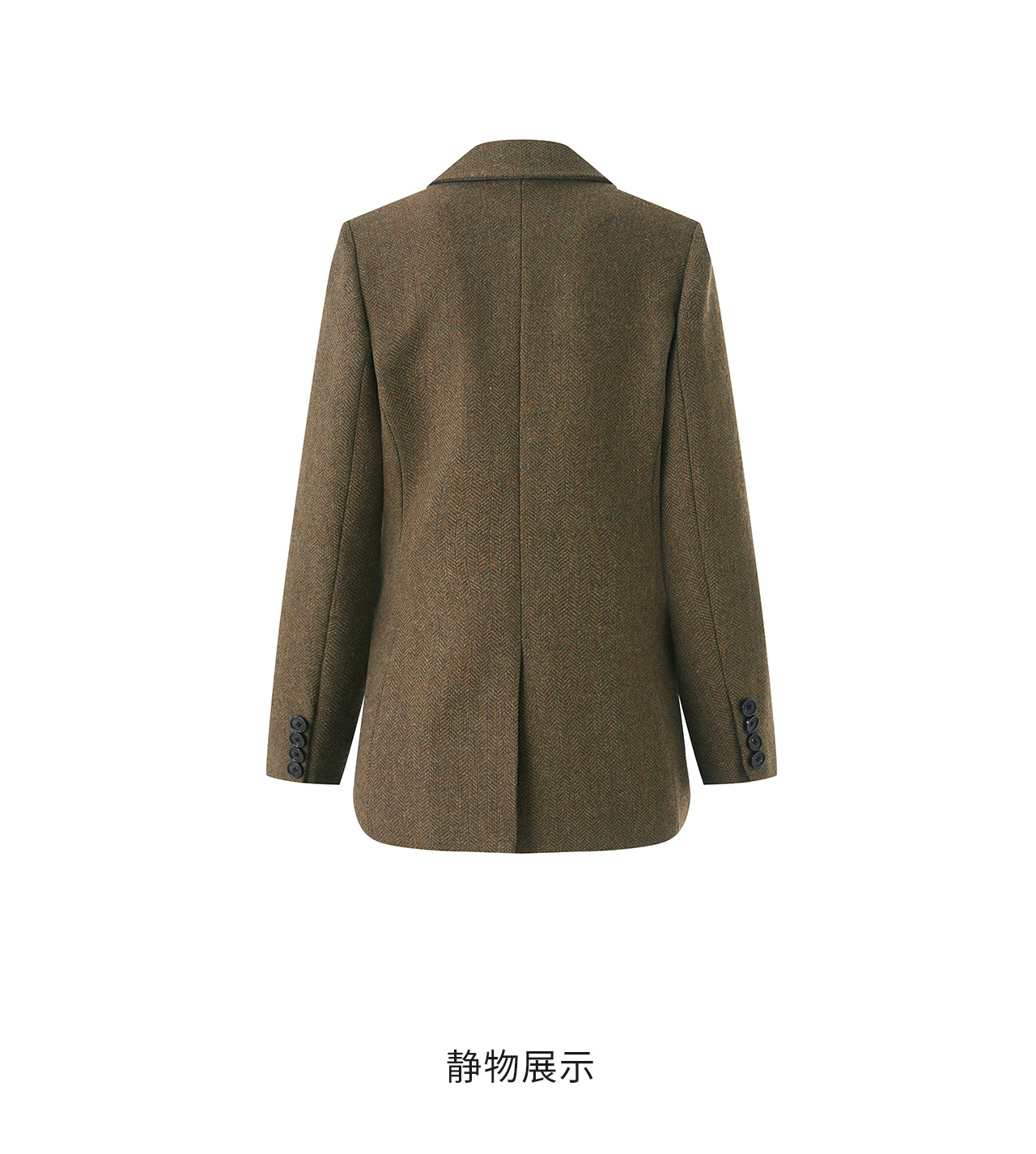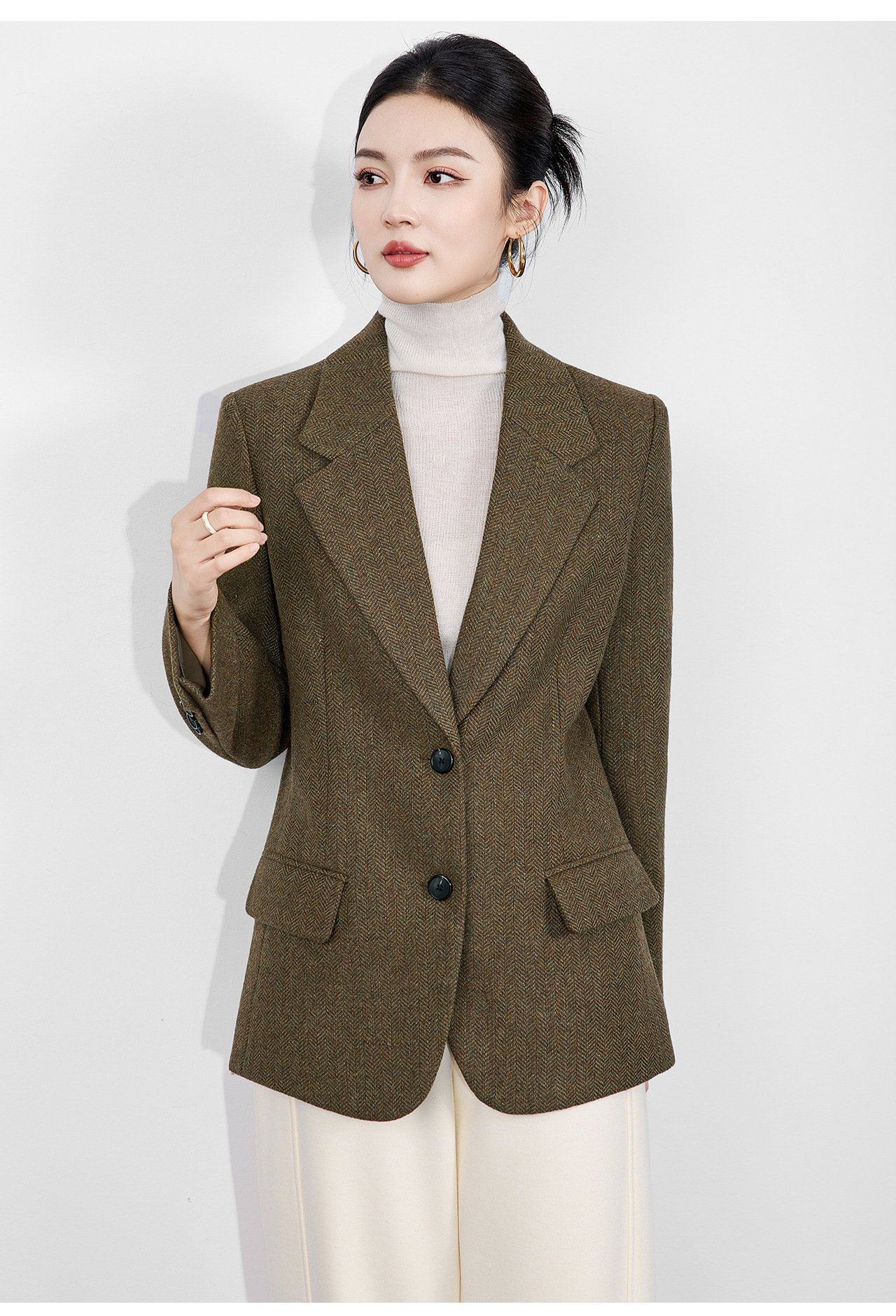 251高货加厚西装外套女冬新款老钱风人字纹羊毛混纺上衣