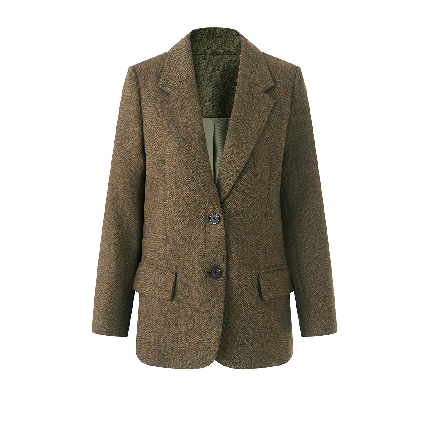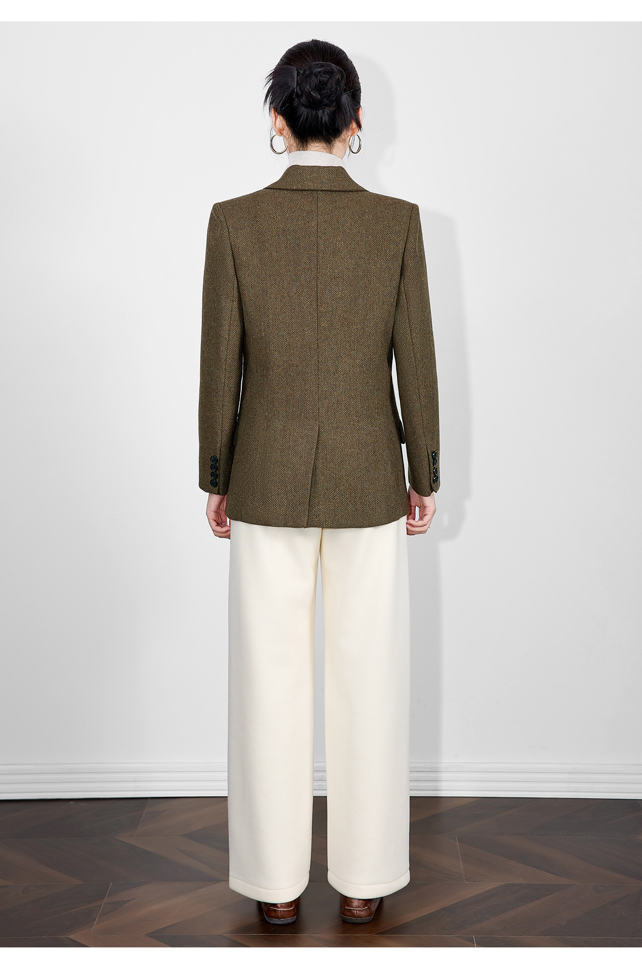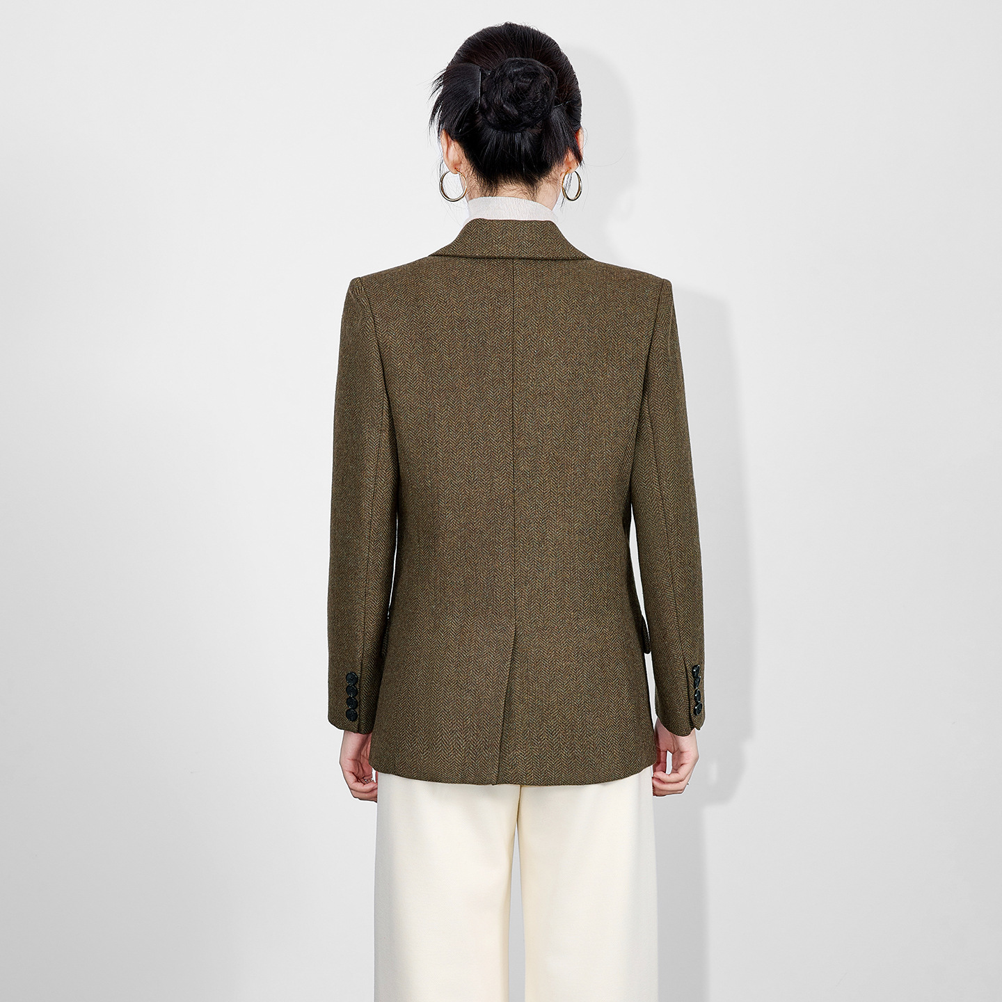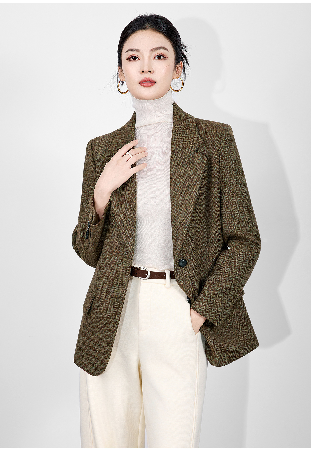 251高货加厚西装外套女冬新款老钱风人字纹羊毛混纺上衣