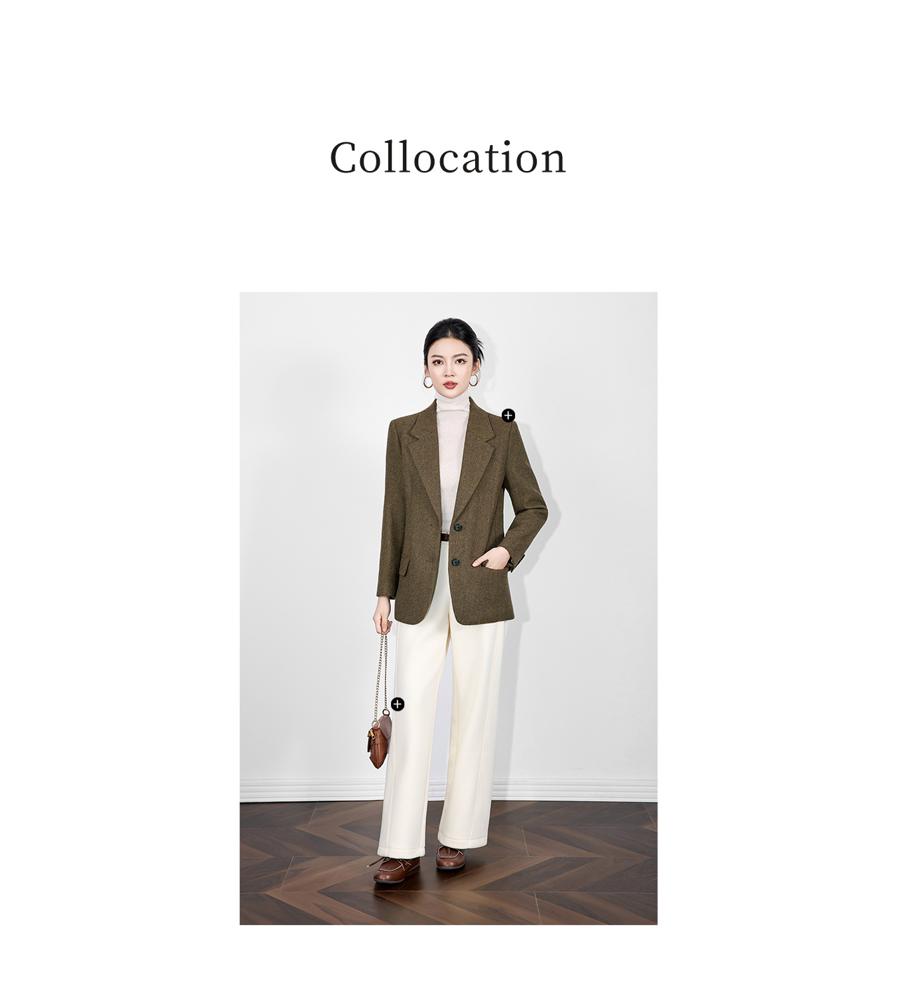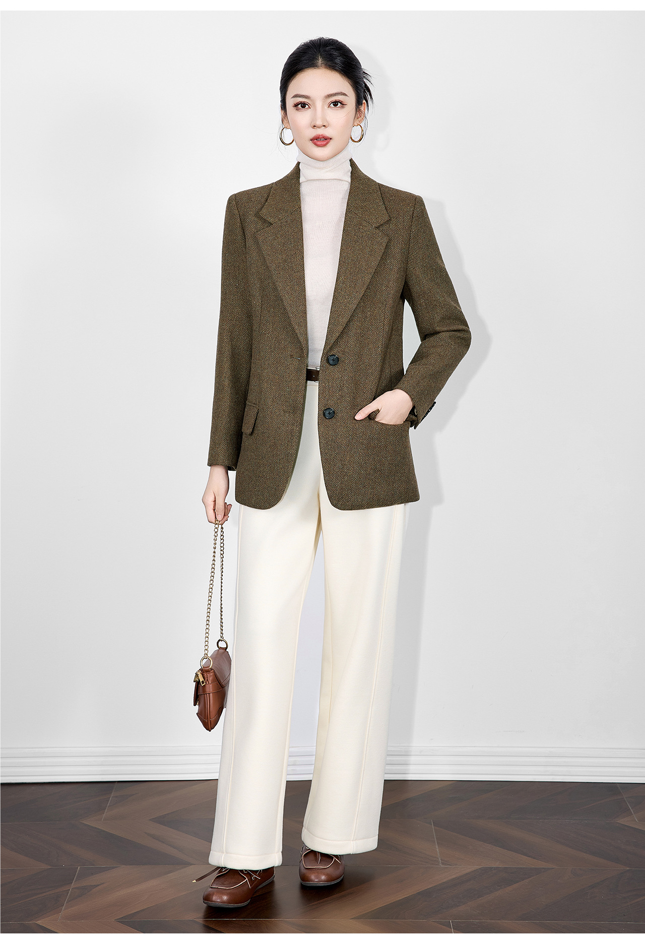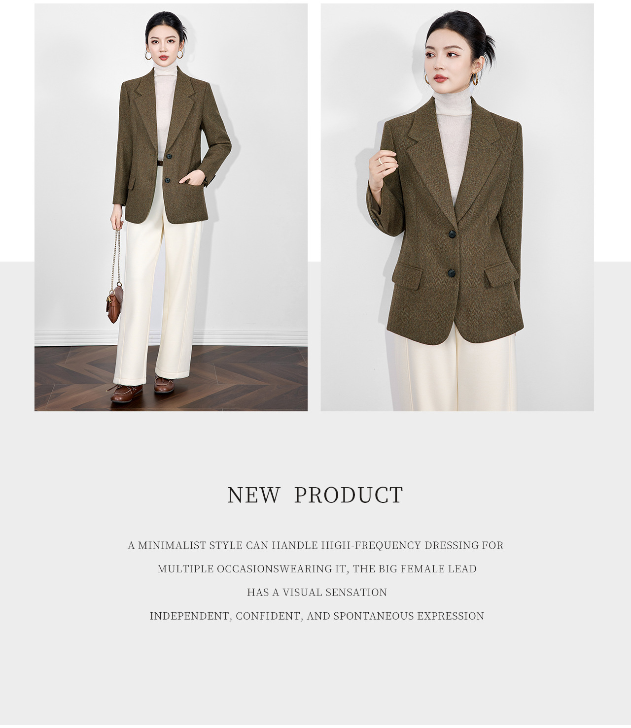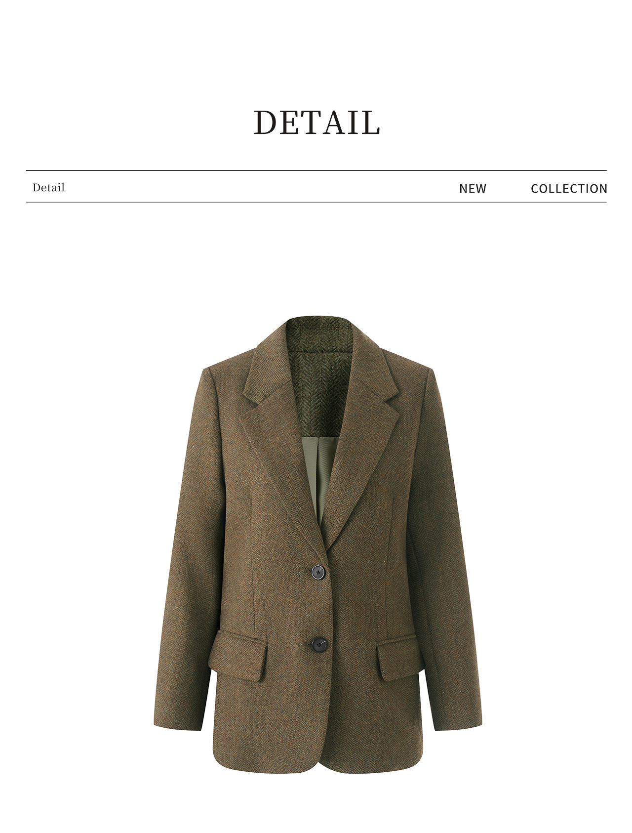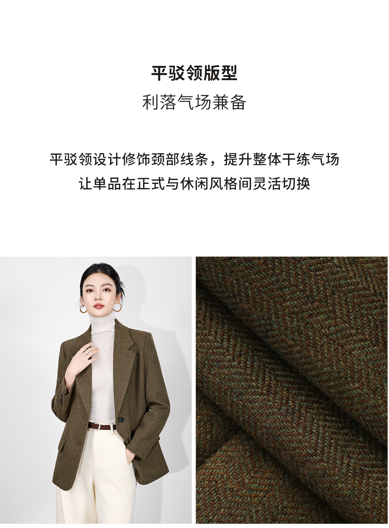 251高货加厚西装外套女冬新款老钱风人字纹羊毛混纺上衣