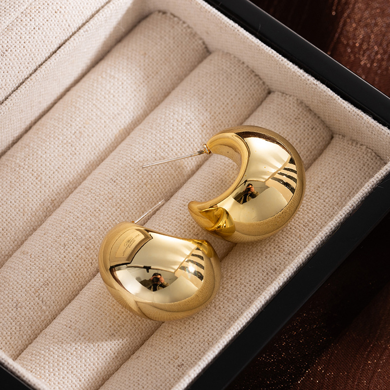 欧美跨境金银豆豆耳钉简约百搭耳环高级感冷淡风男女时尚气质耳饰