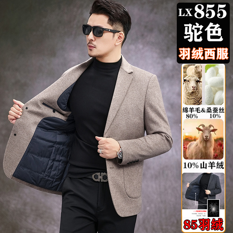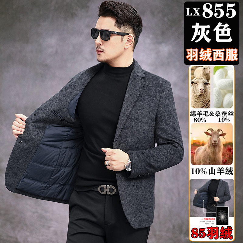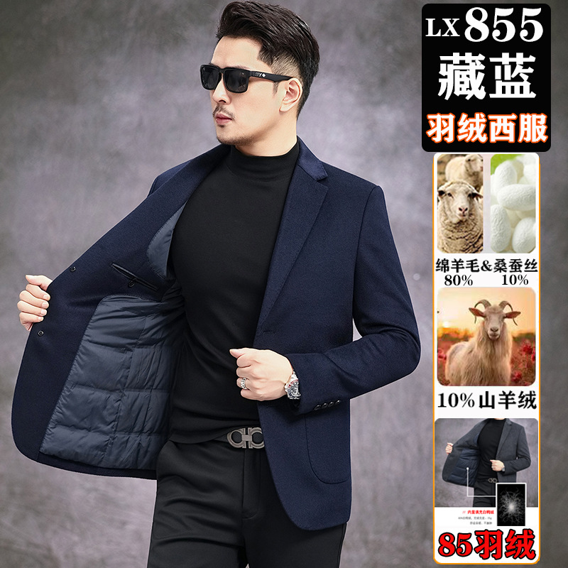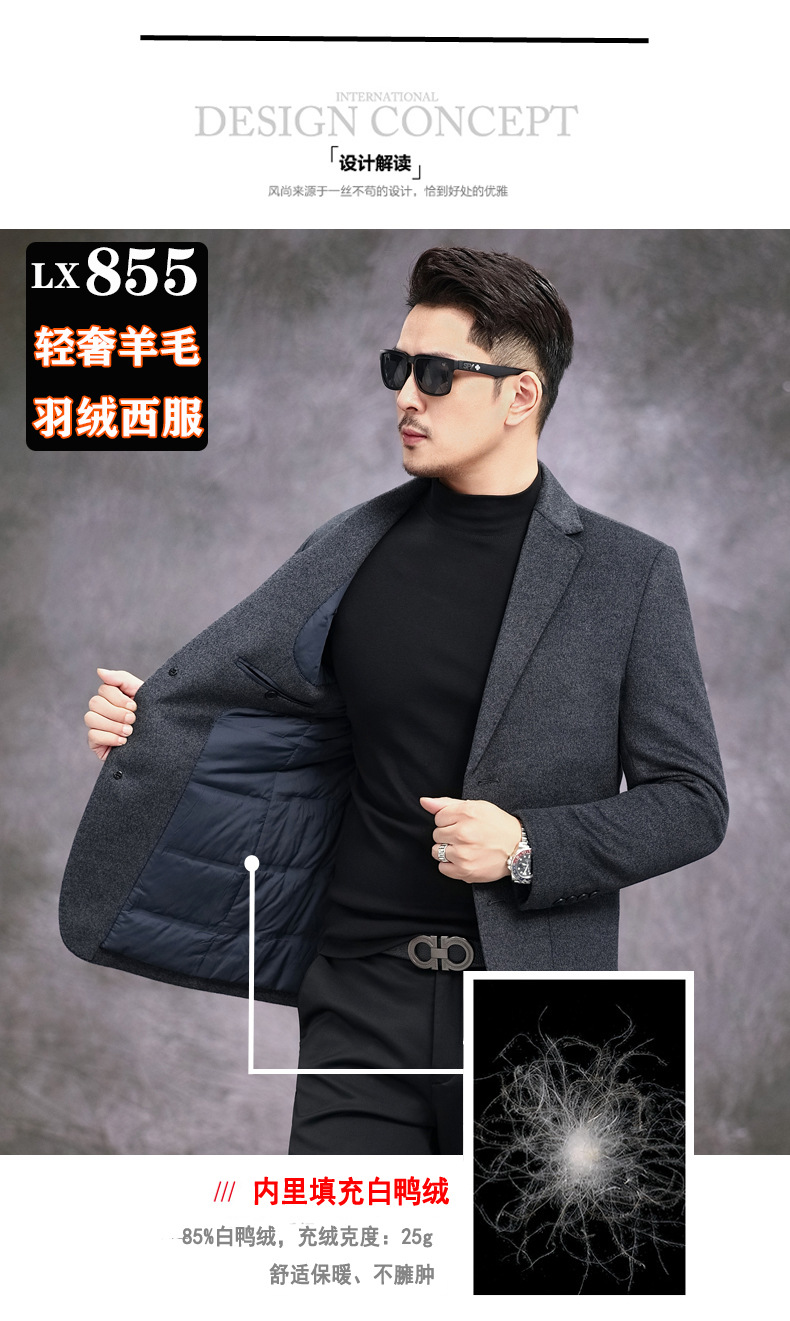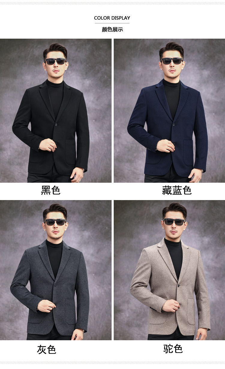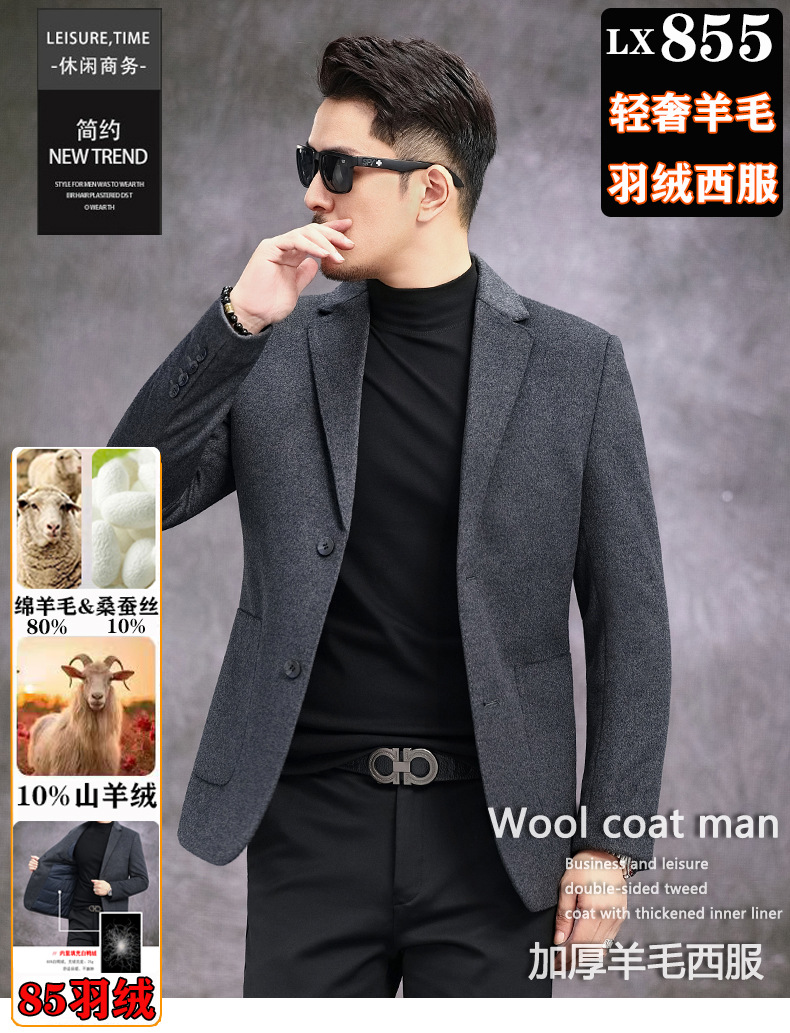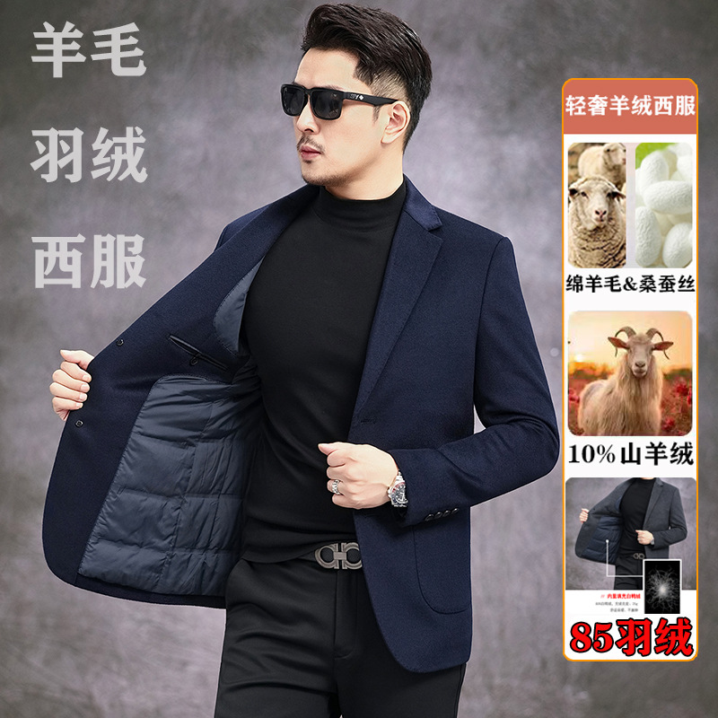 羊毛男士大衣羊绒西服厚实商务西装桑蚕丝秋冬毛呢单西羽绒服外套