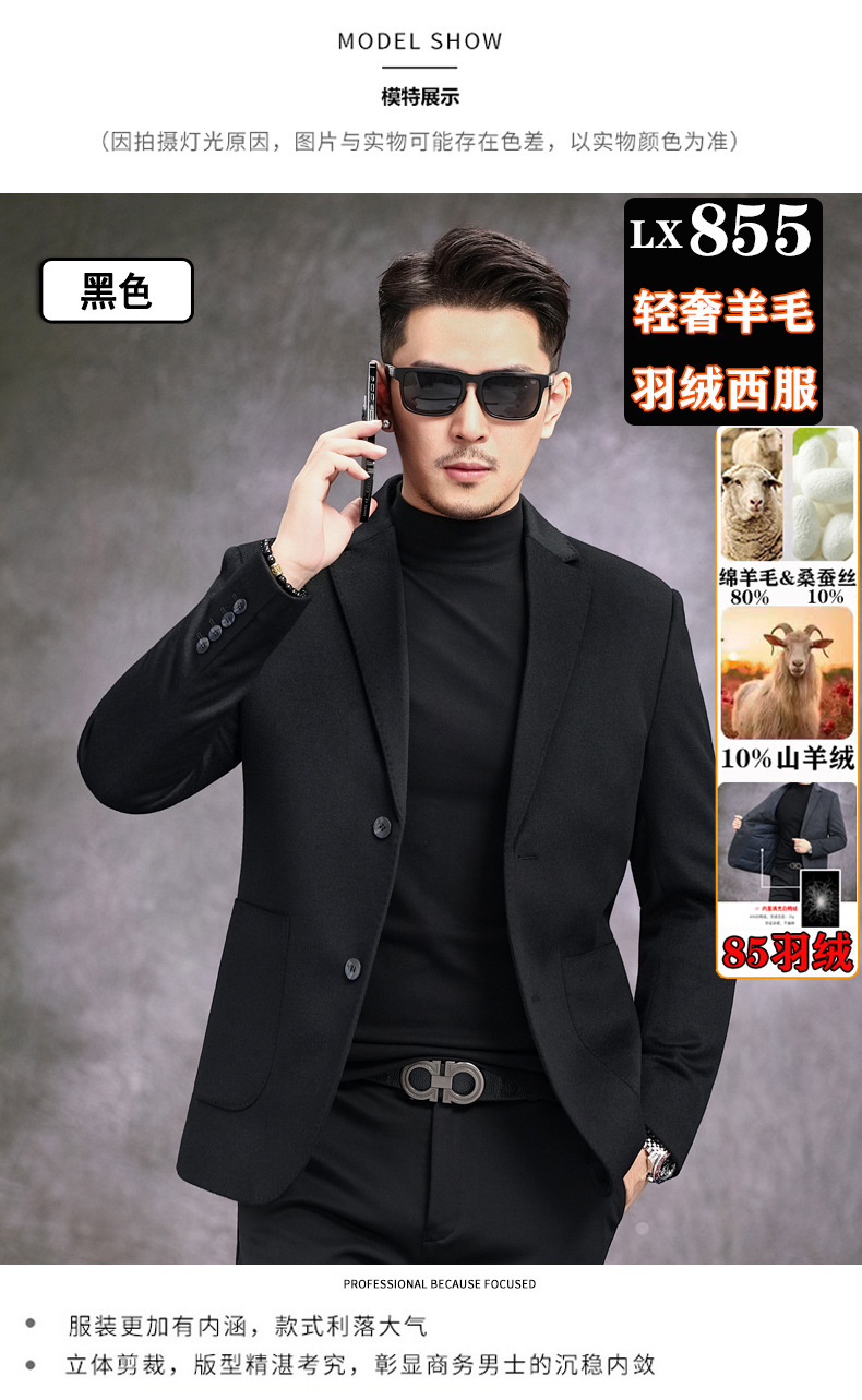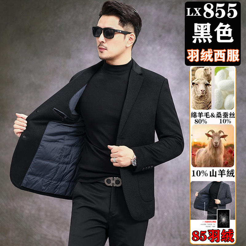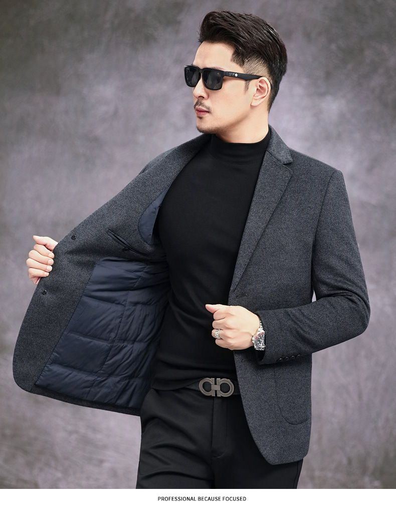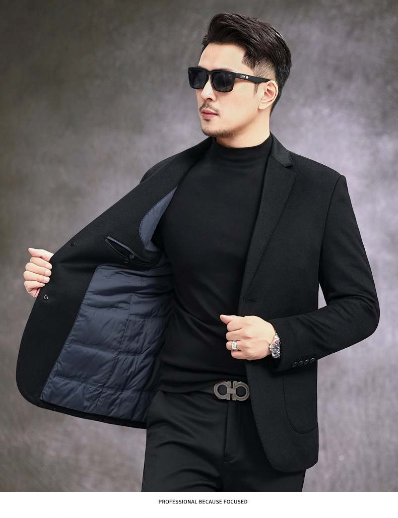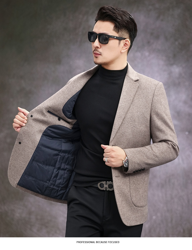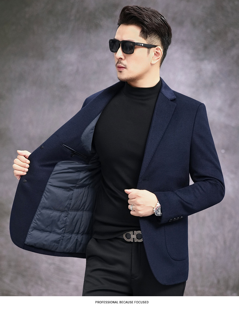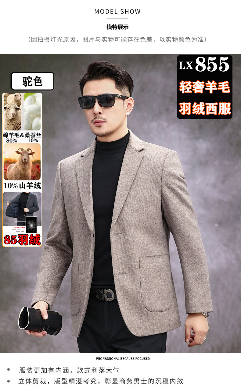羊毛男士大衣羊绒西服厚实商务西装桑蚕丝秋冬毛呢单西羽绒服外套