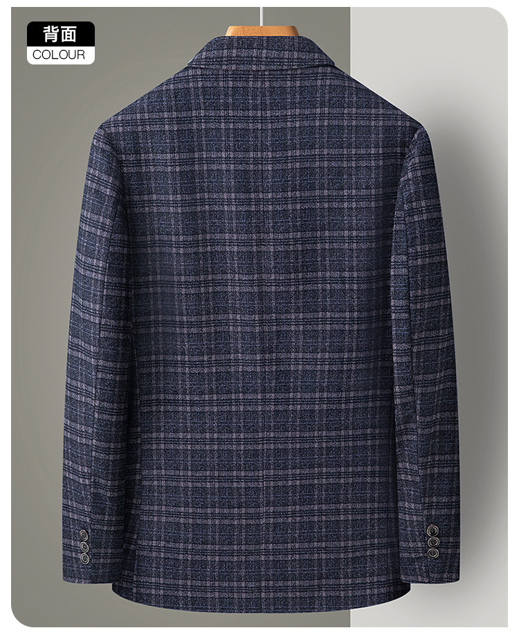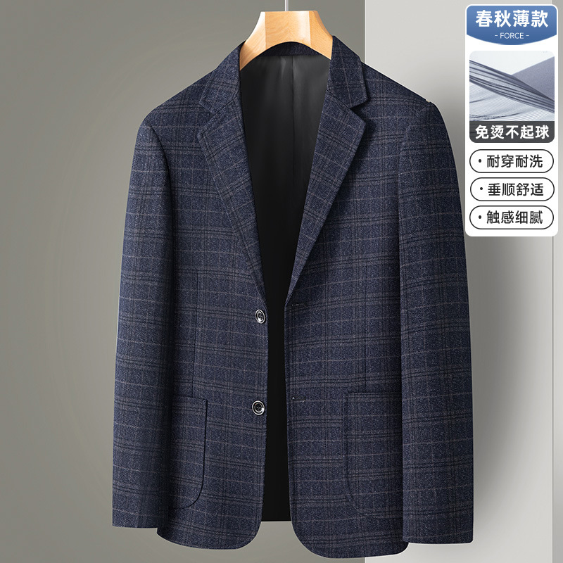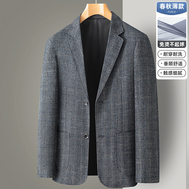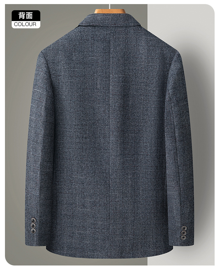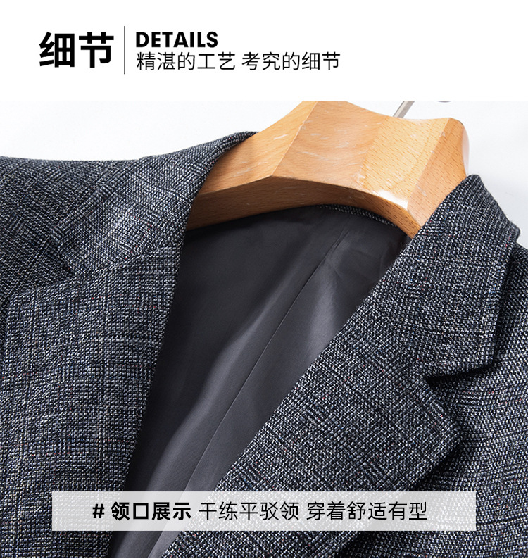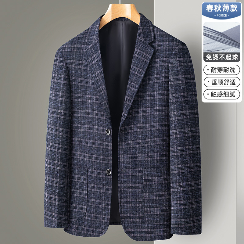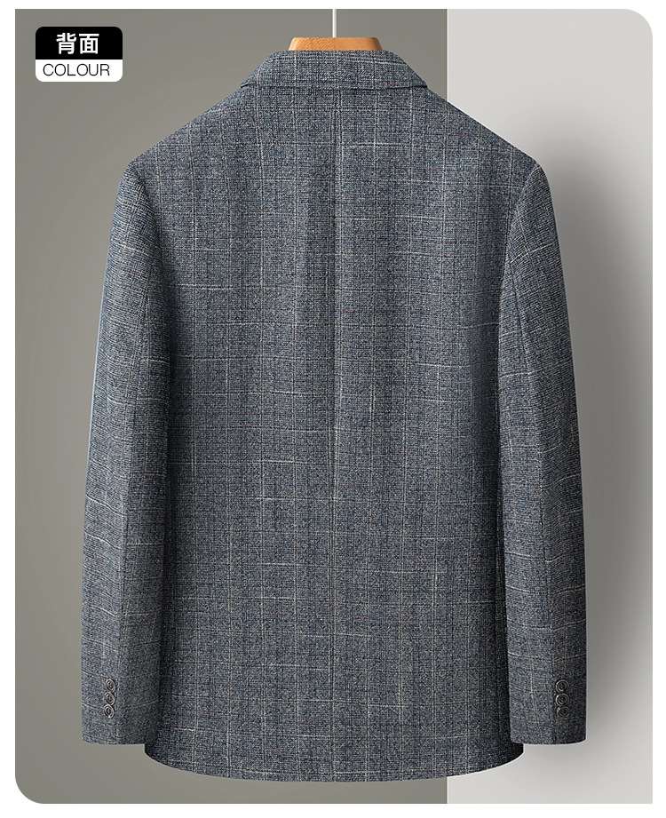 男式西服商务休闲格纹西装外套春秋款中年爸爸装单西上衣商务风