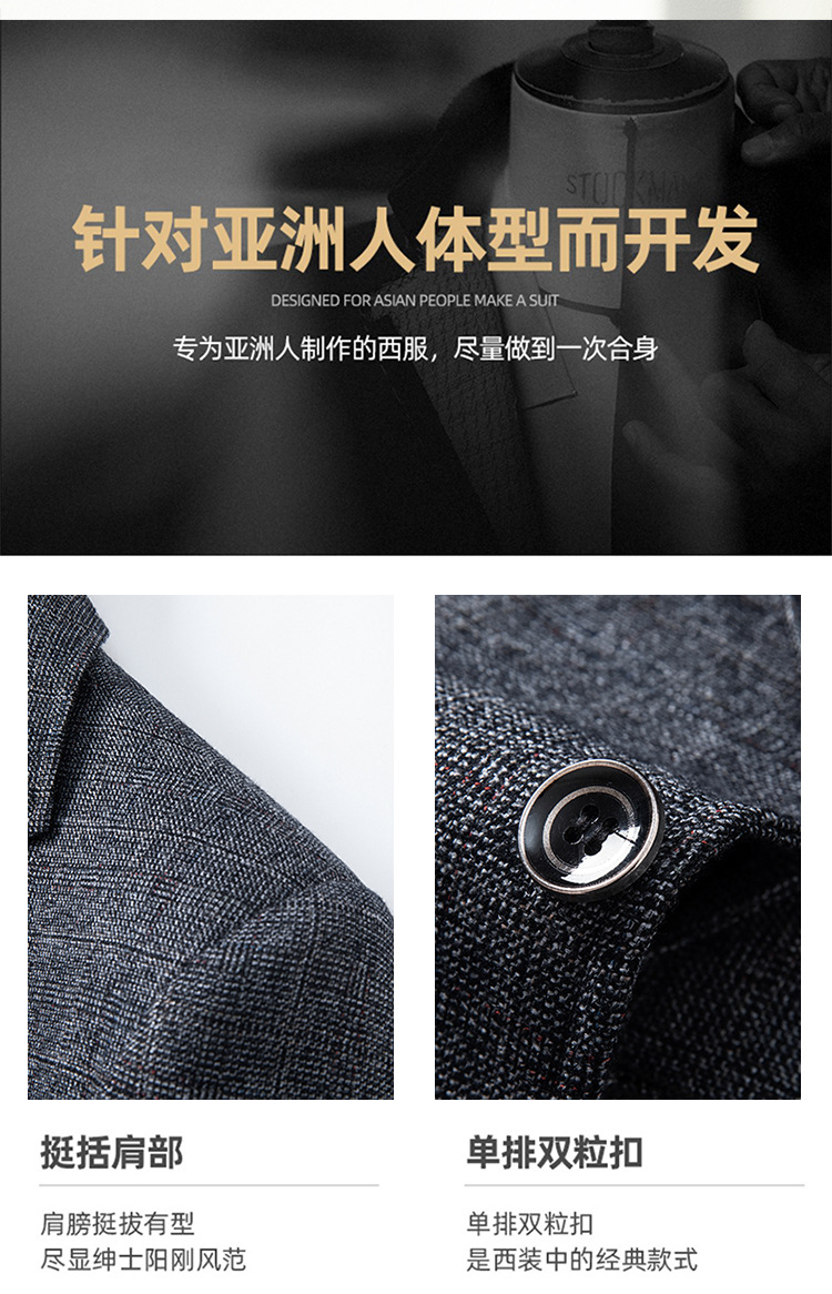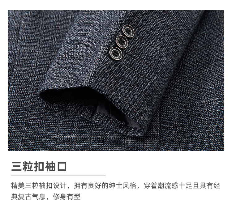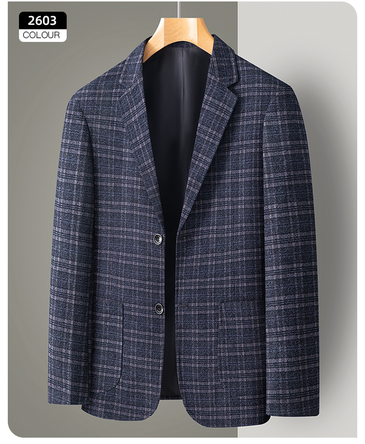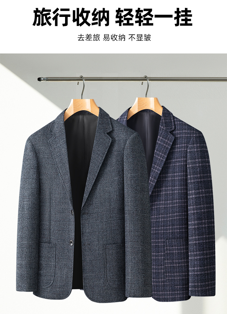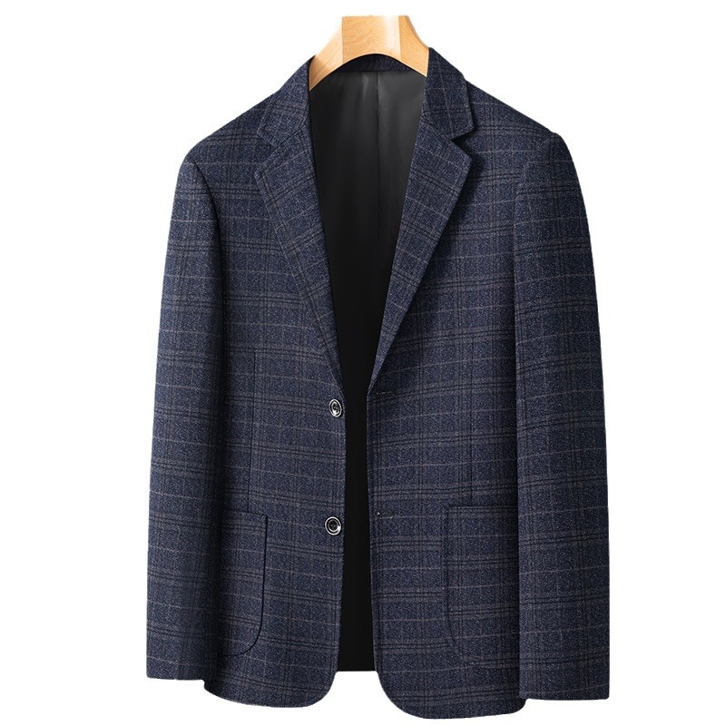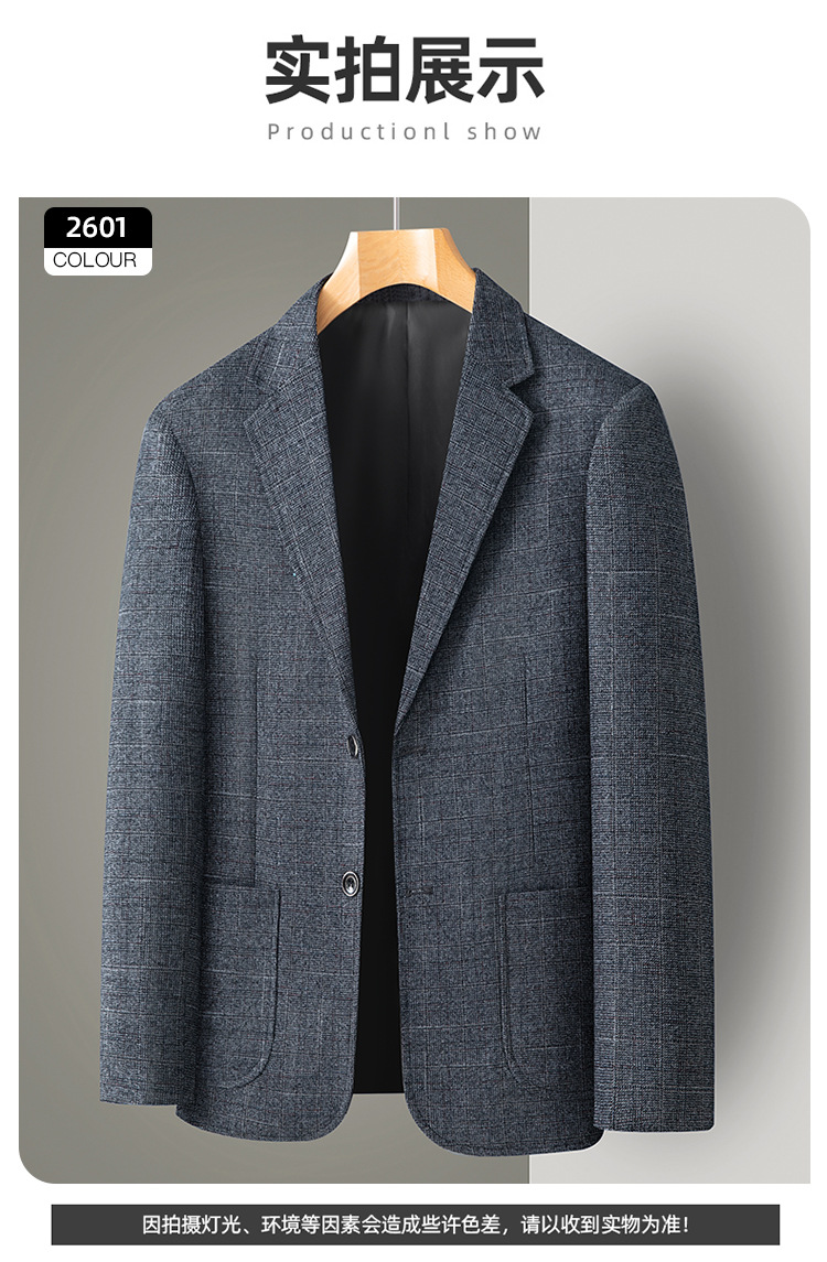 男式西服商务休闲格纹西装外套春秋款中年爸爸装单西上衣商务风