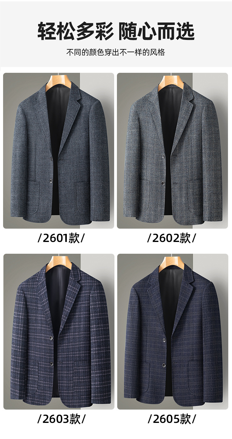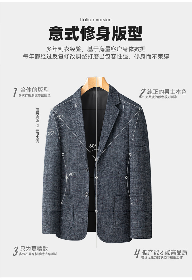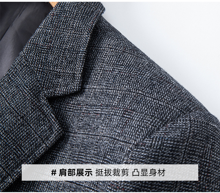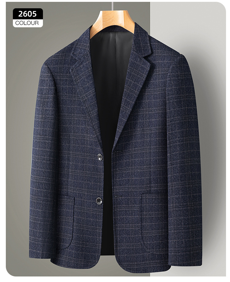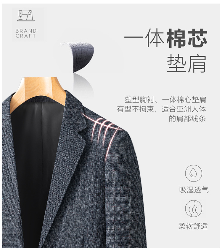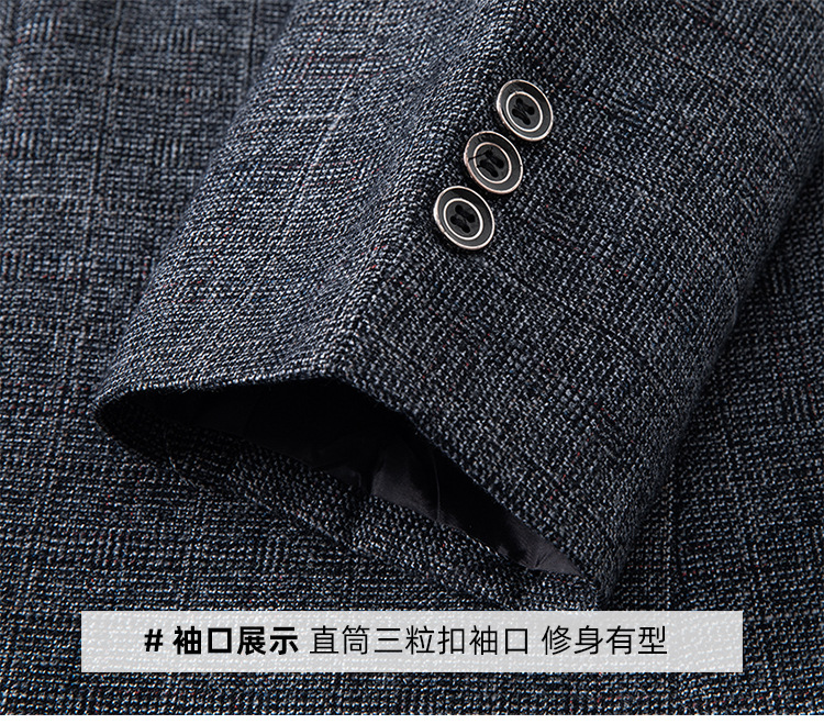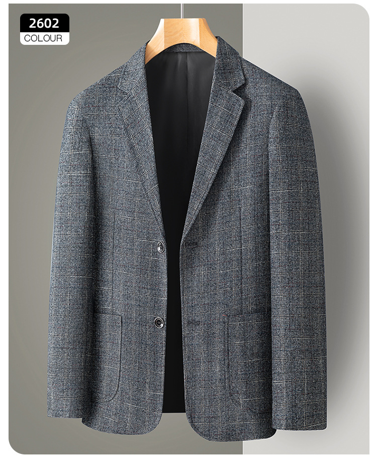 男式西服商务休闲格纹西装外套春秋款中年爸爸装单西上衣商务风
