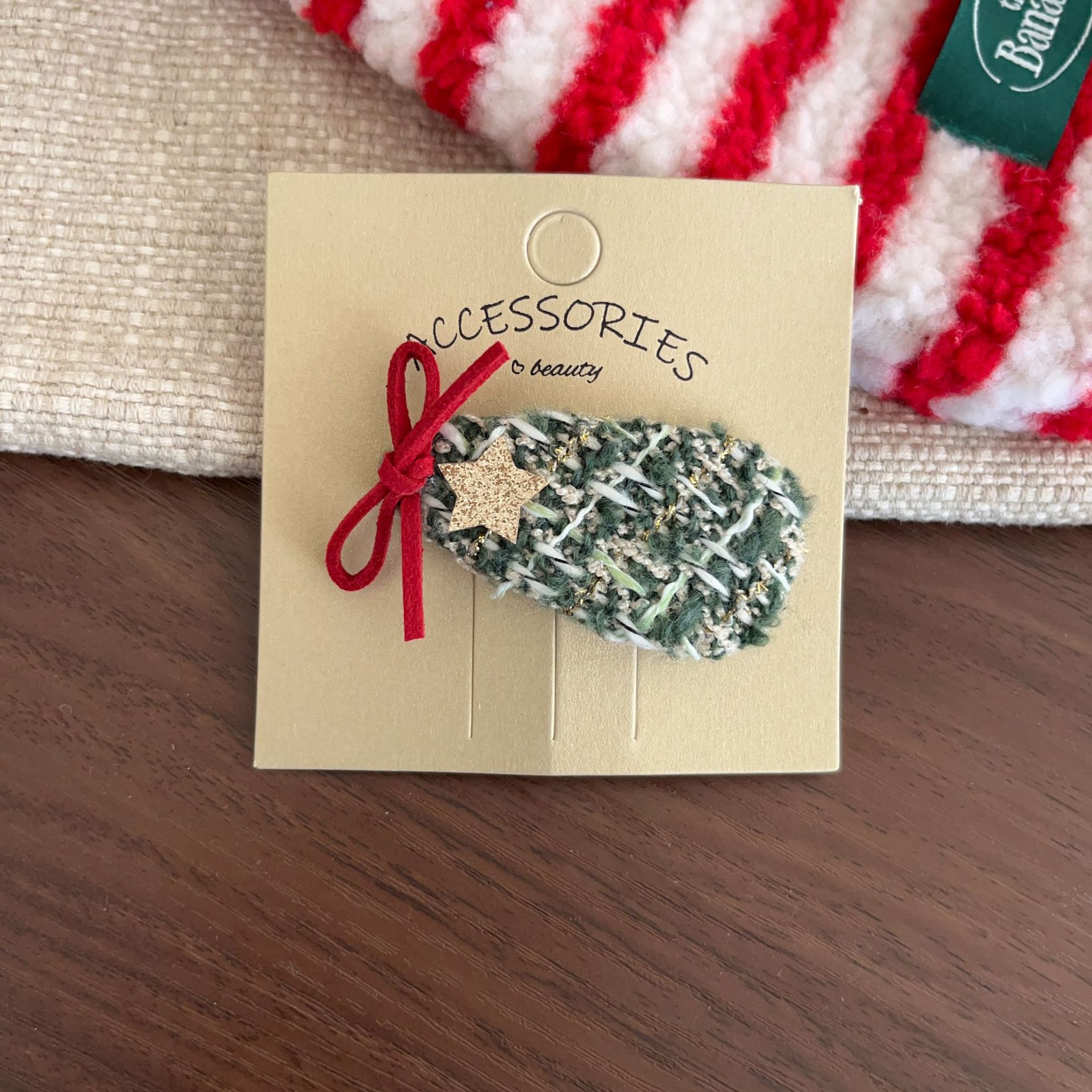 超精致!丝绒圣诞树星星发夹bb夹复古小香风蝴蝶结掰掰夹碎发边夹