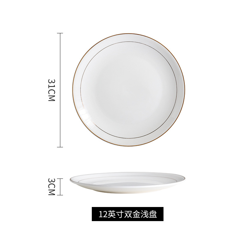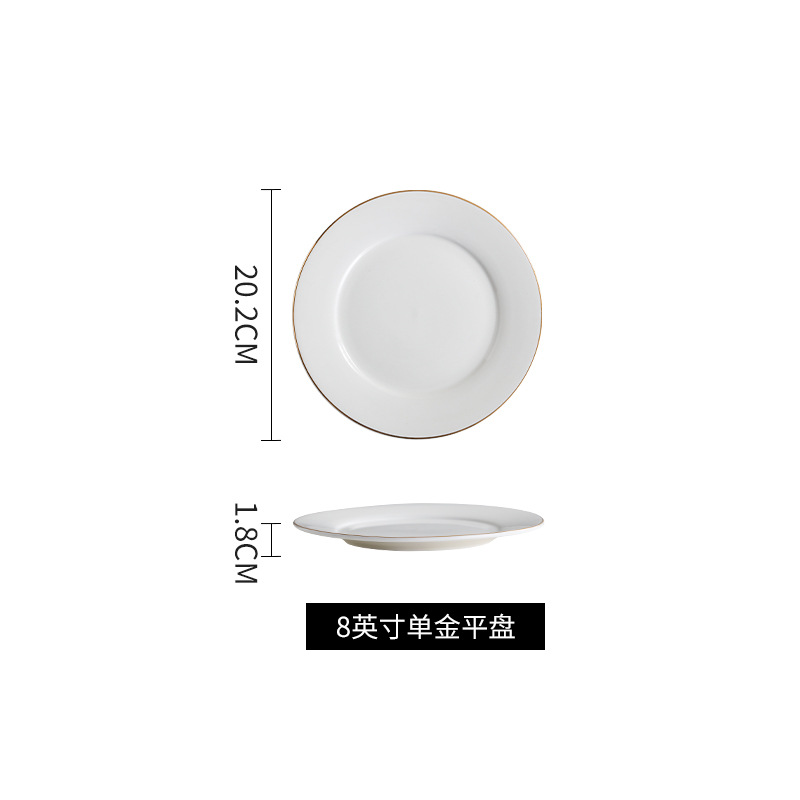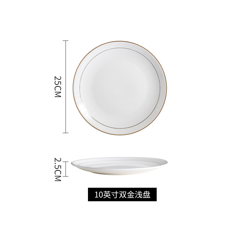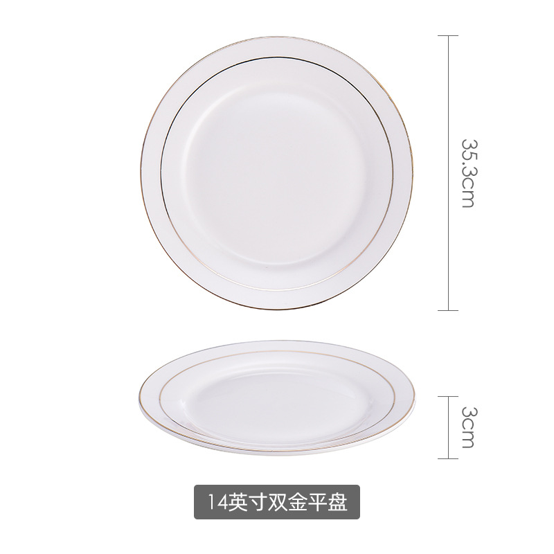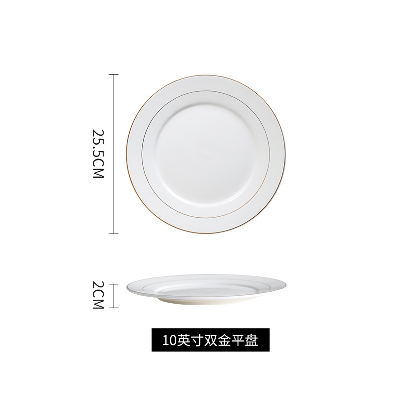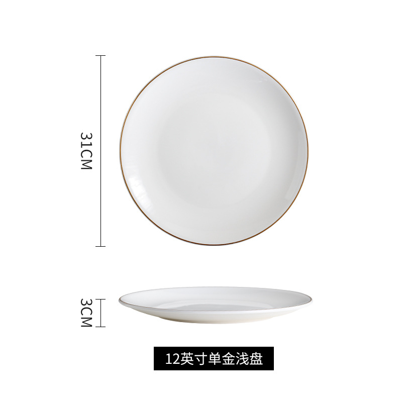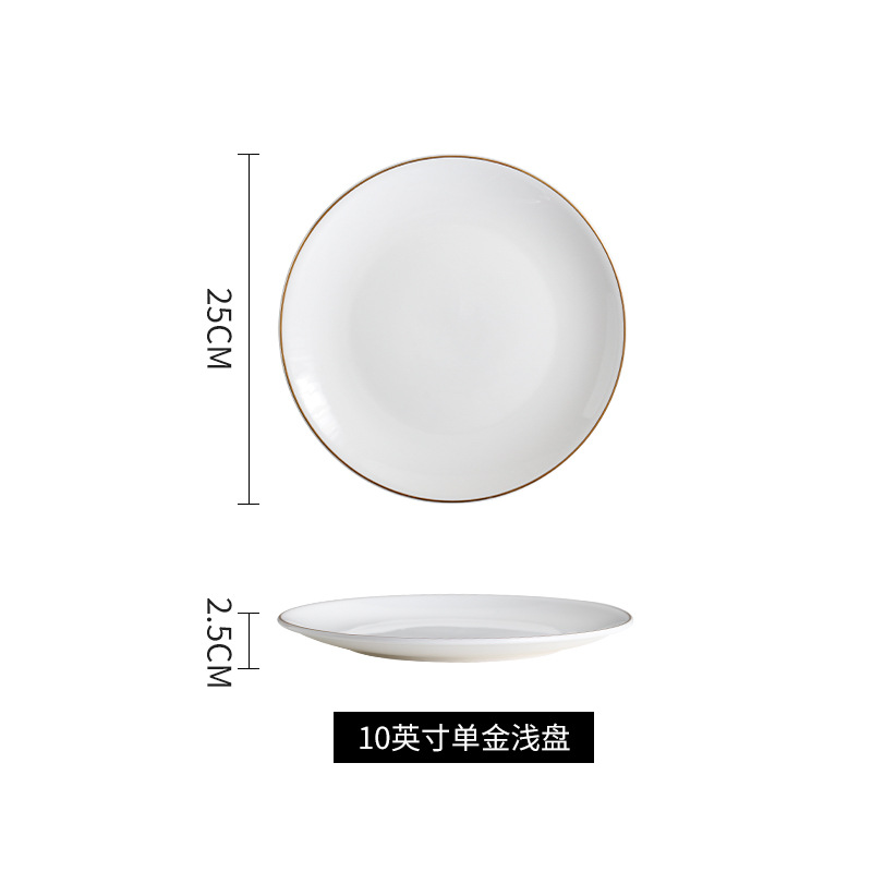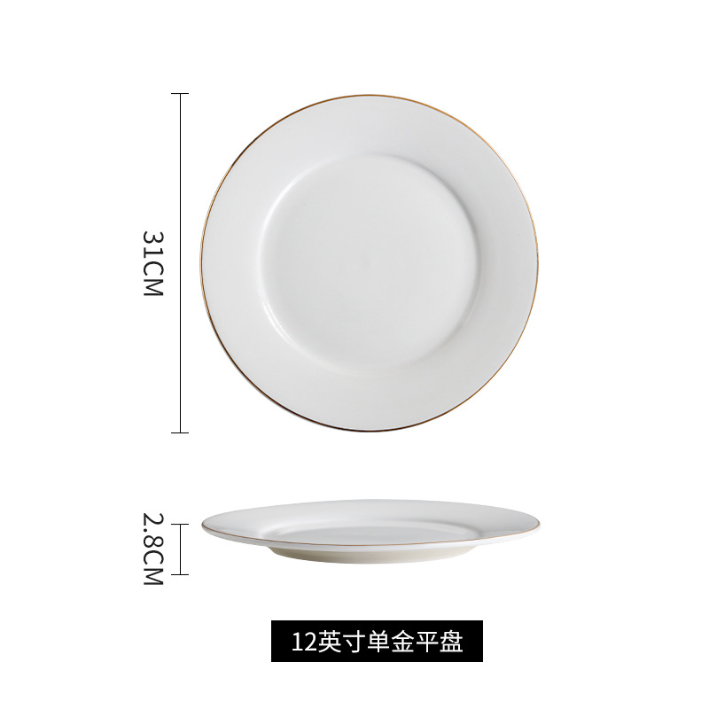 酒店西餐厅餐盘欧式金边描金陶瓷盘圆形浅盘平盘牛排盘子餐具批发