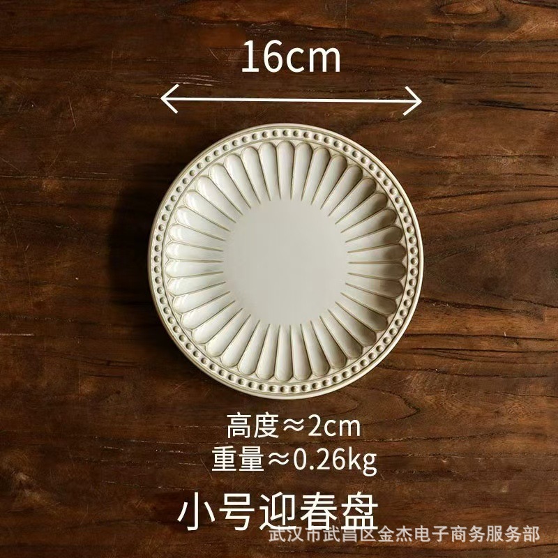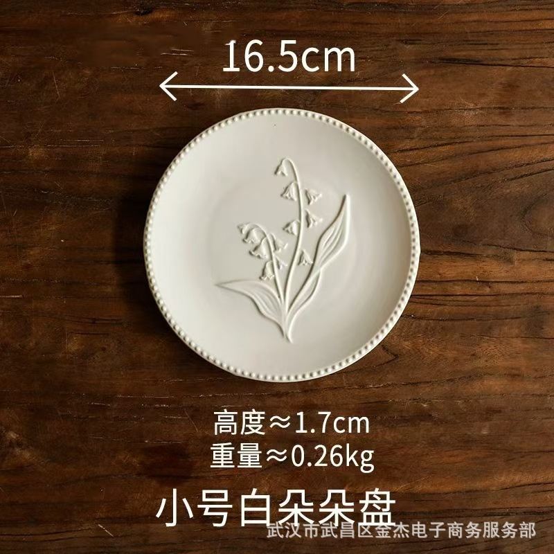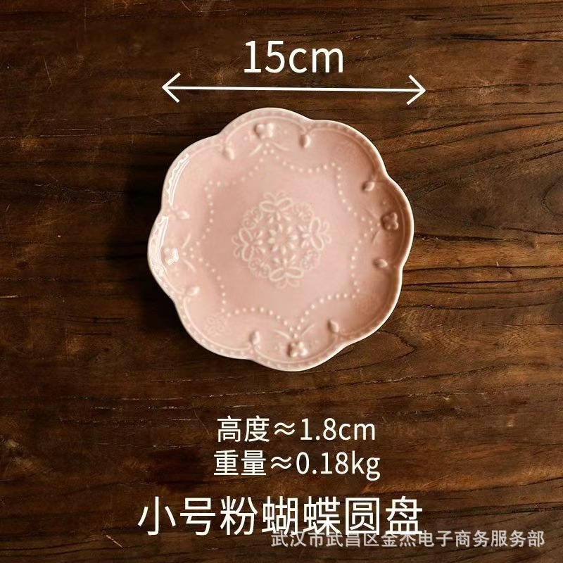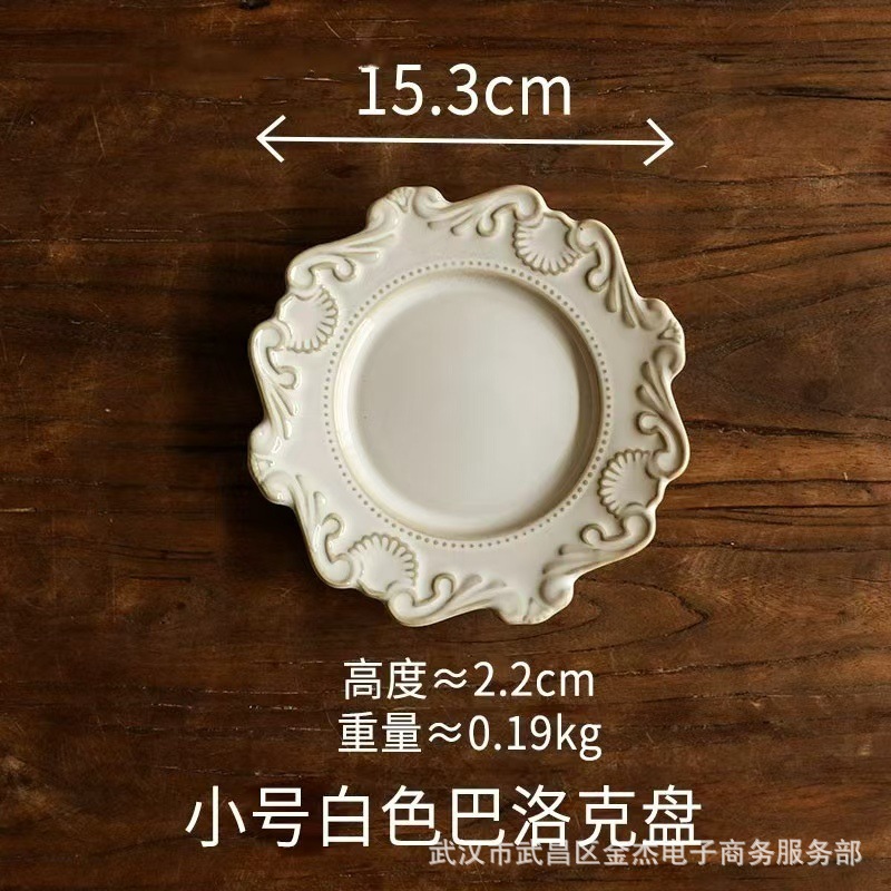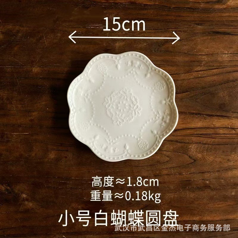 6寸小碟子陶瓷小吃盘甜品点心碟商用前菜盘浮雕一人食平盘吐骨碟