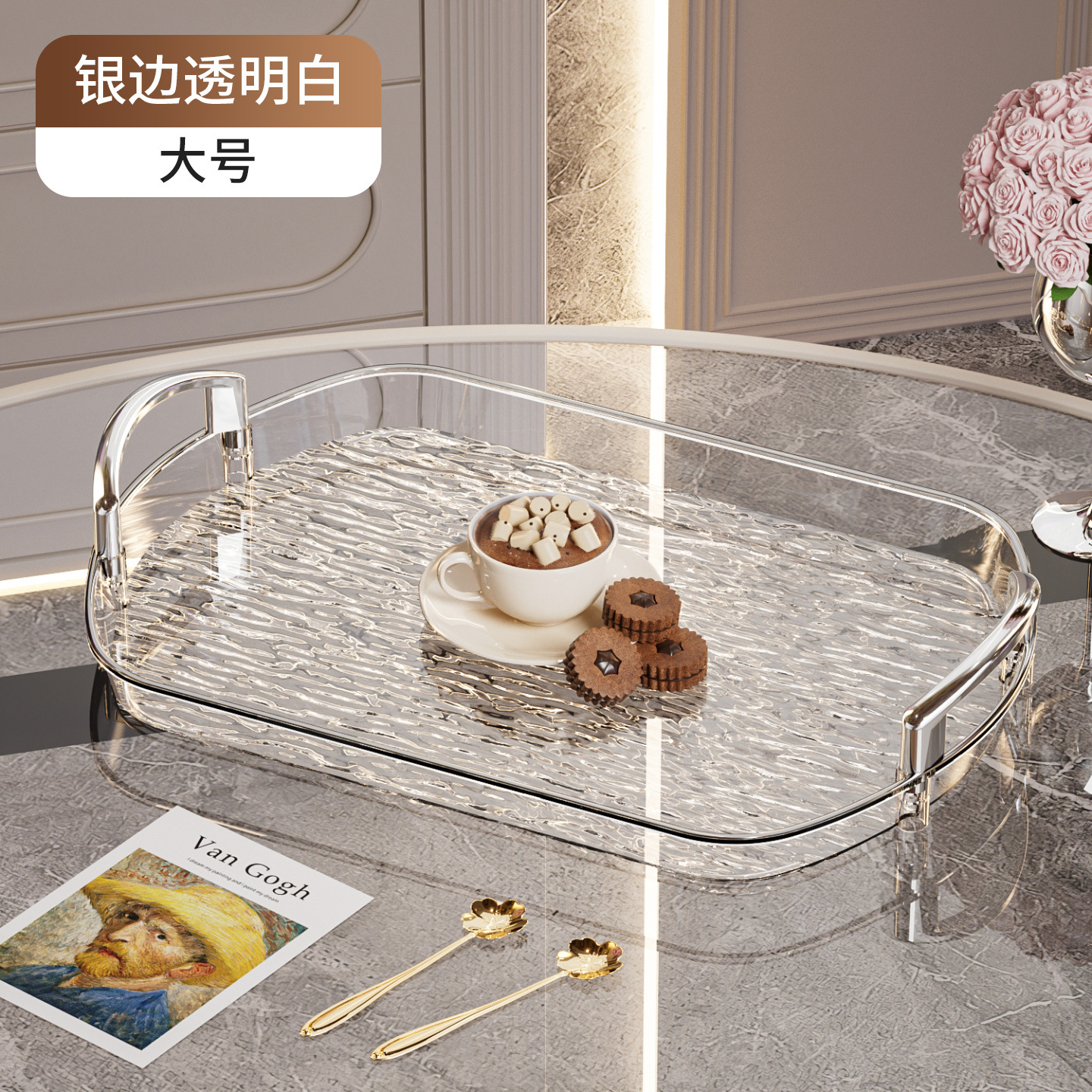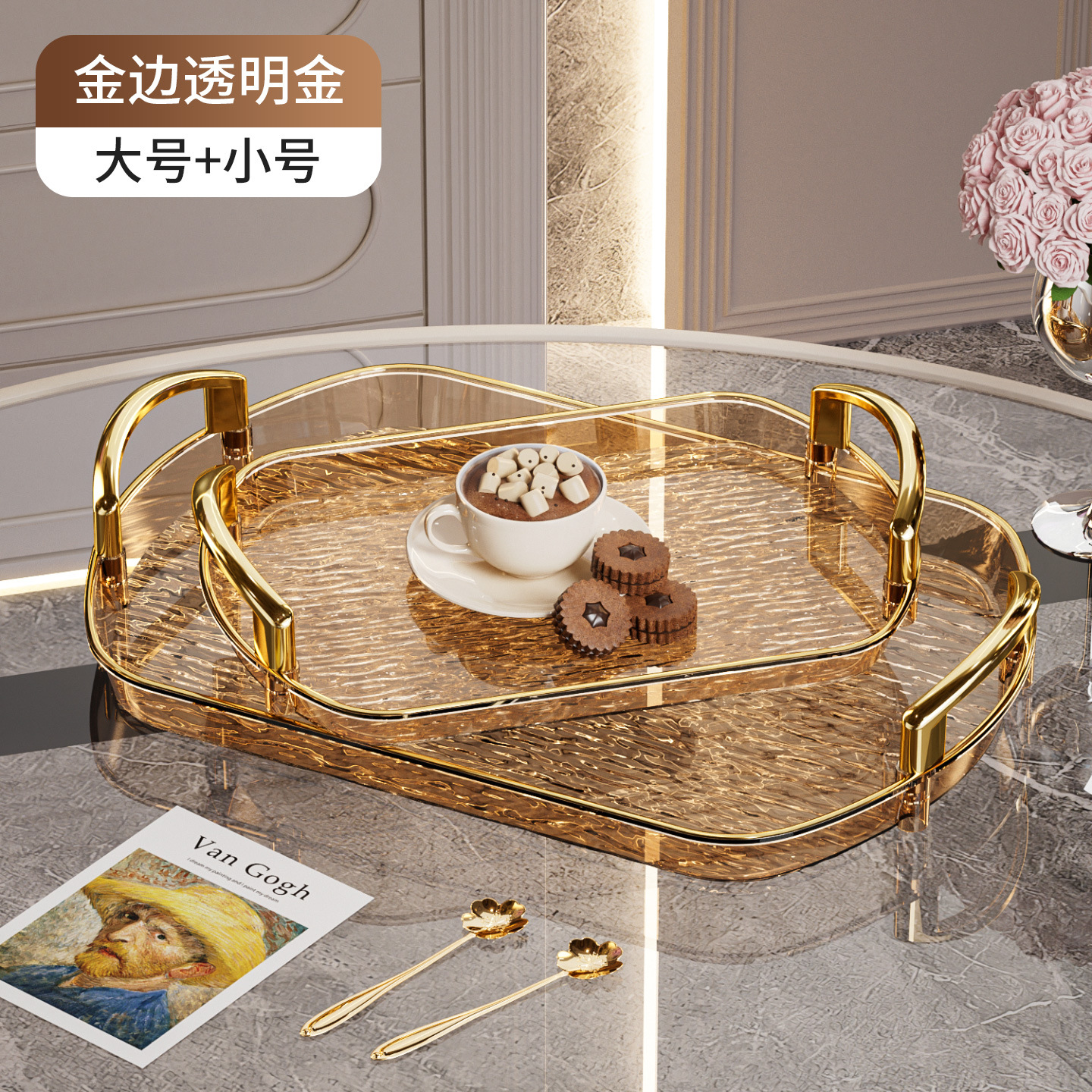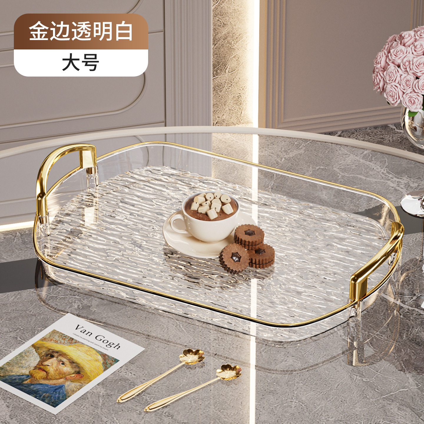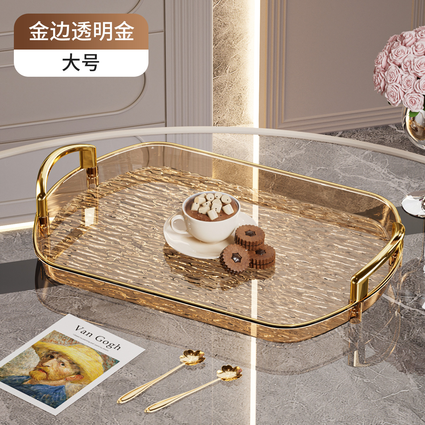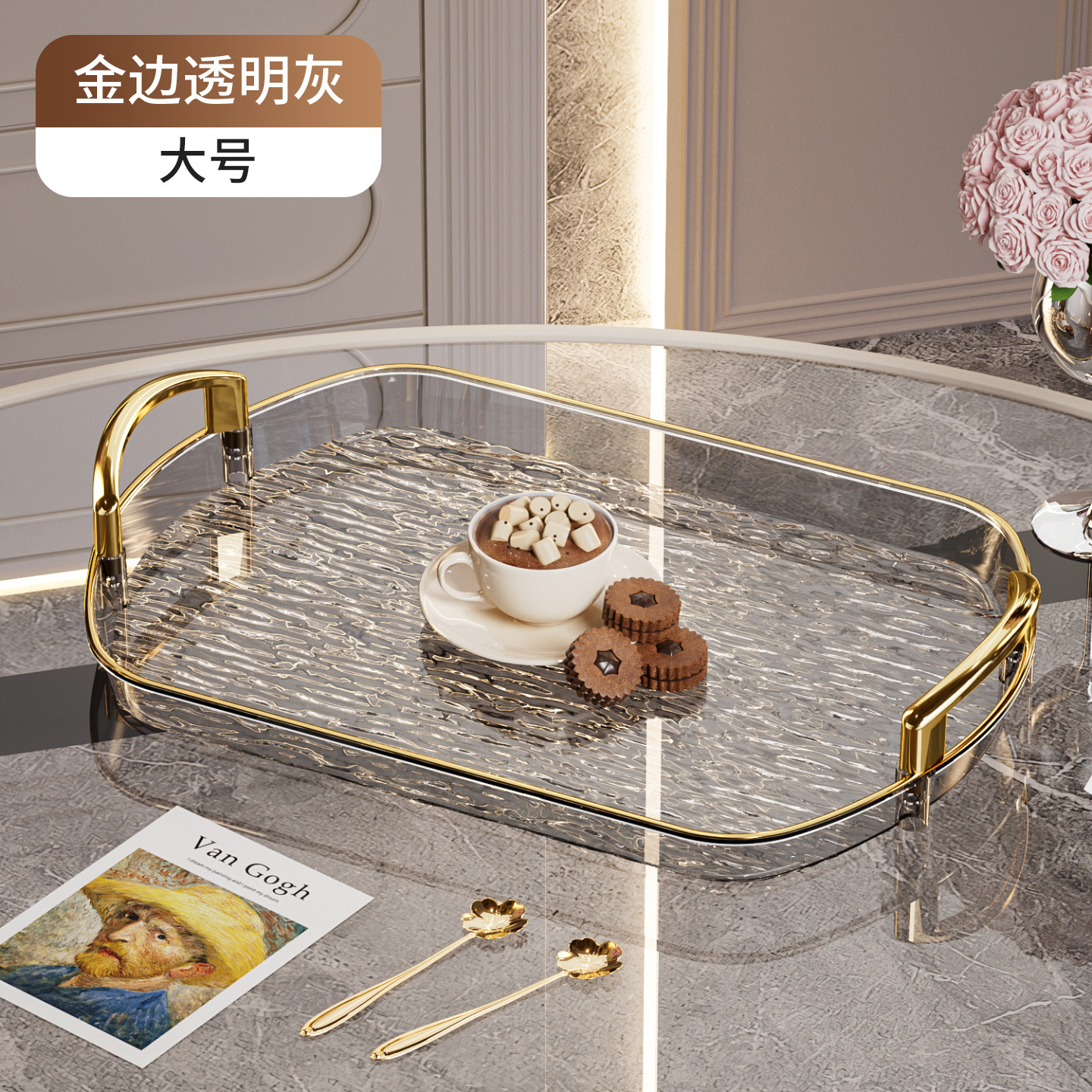 轻奢塑料托盘带把手双耳高档家用茶盘餐盘商用餐厅加厚大号盘子
