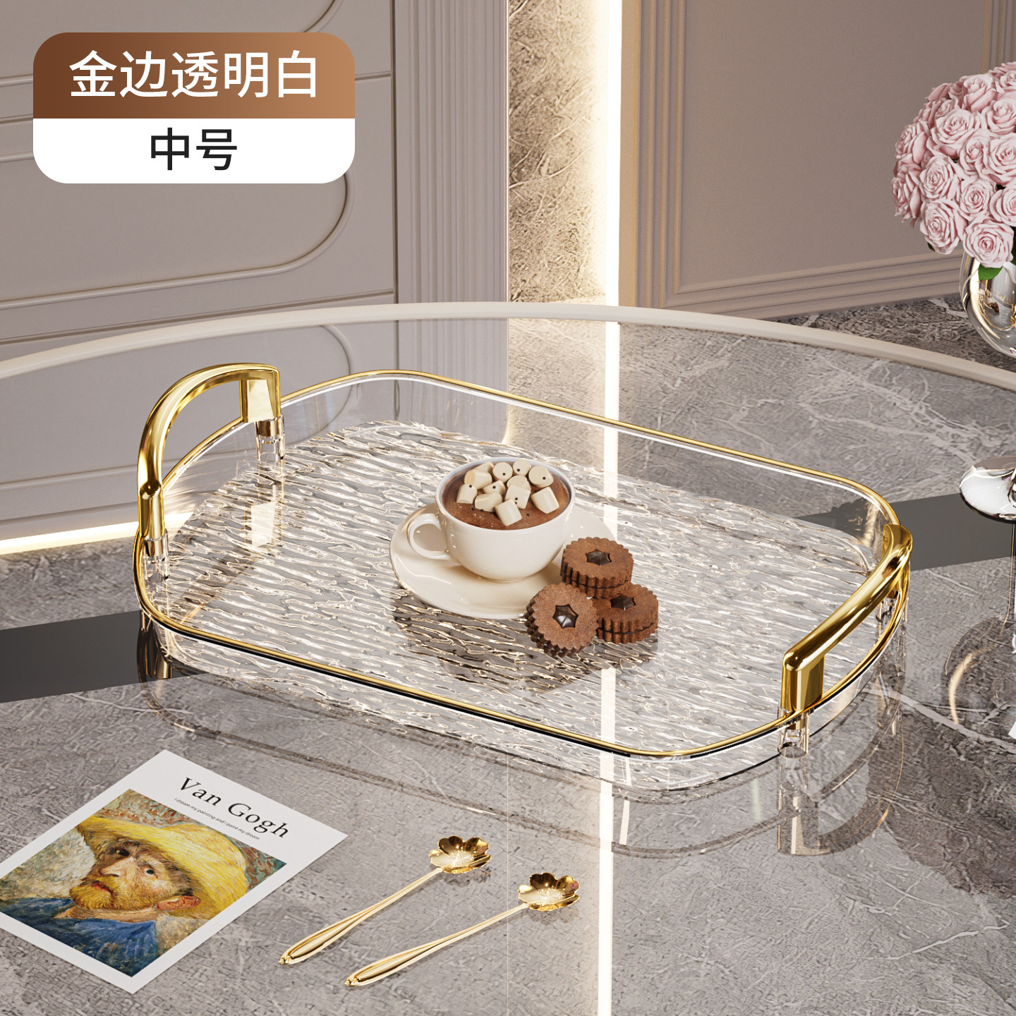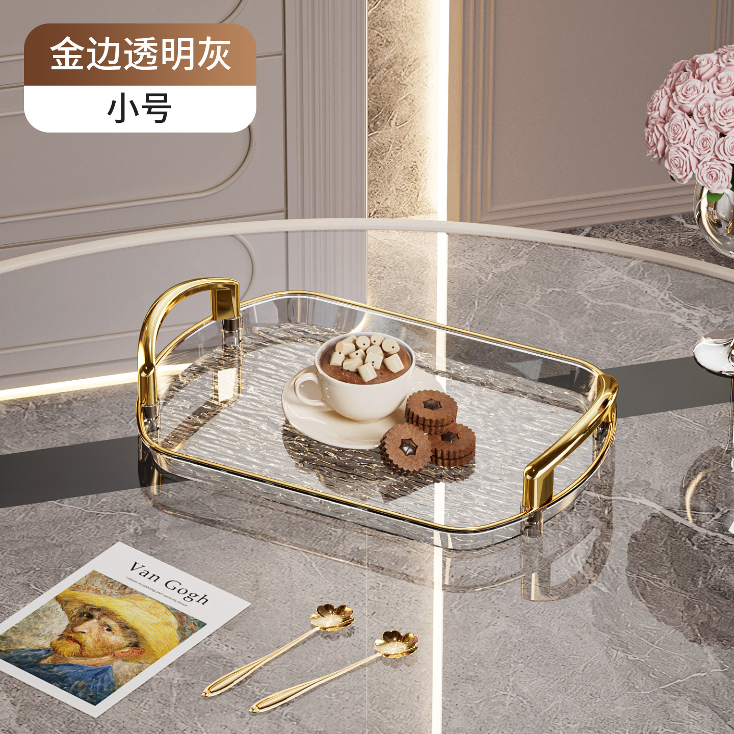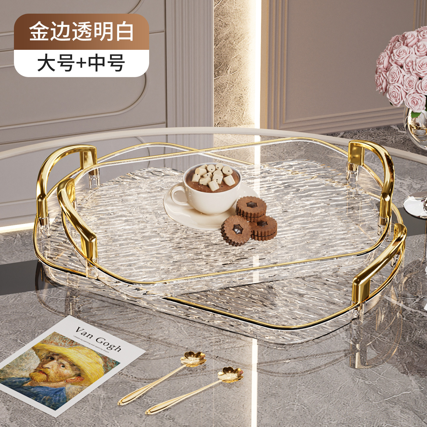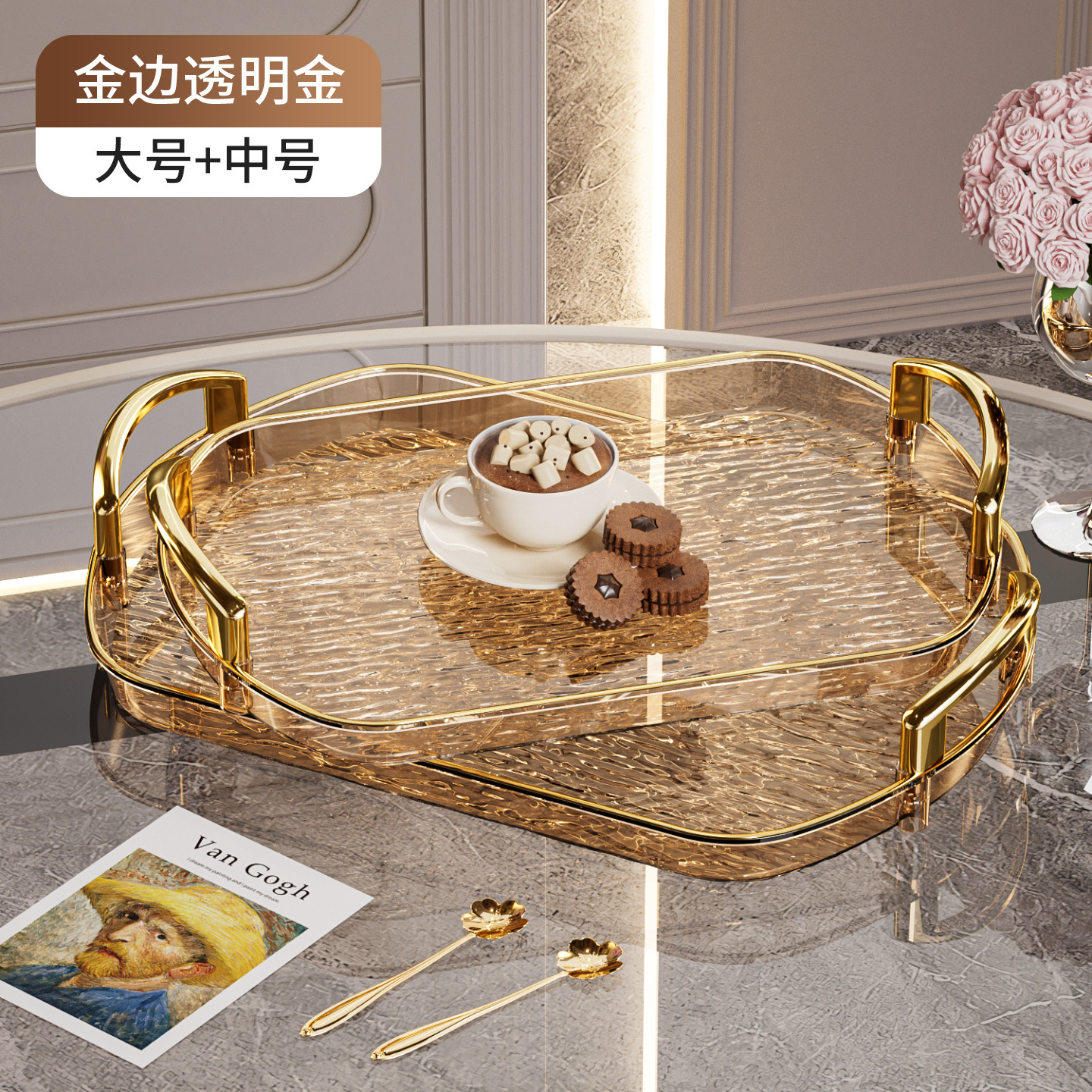 轻奢塑料托盘带把手双耳高档家用茶盘餐盘商用餐厅加厚大号盘子