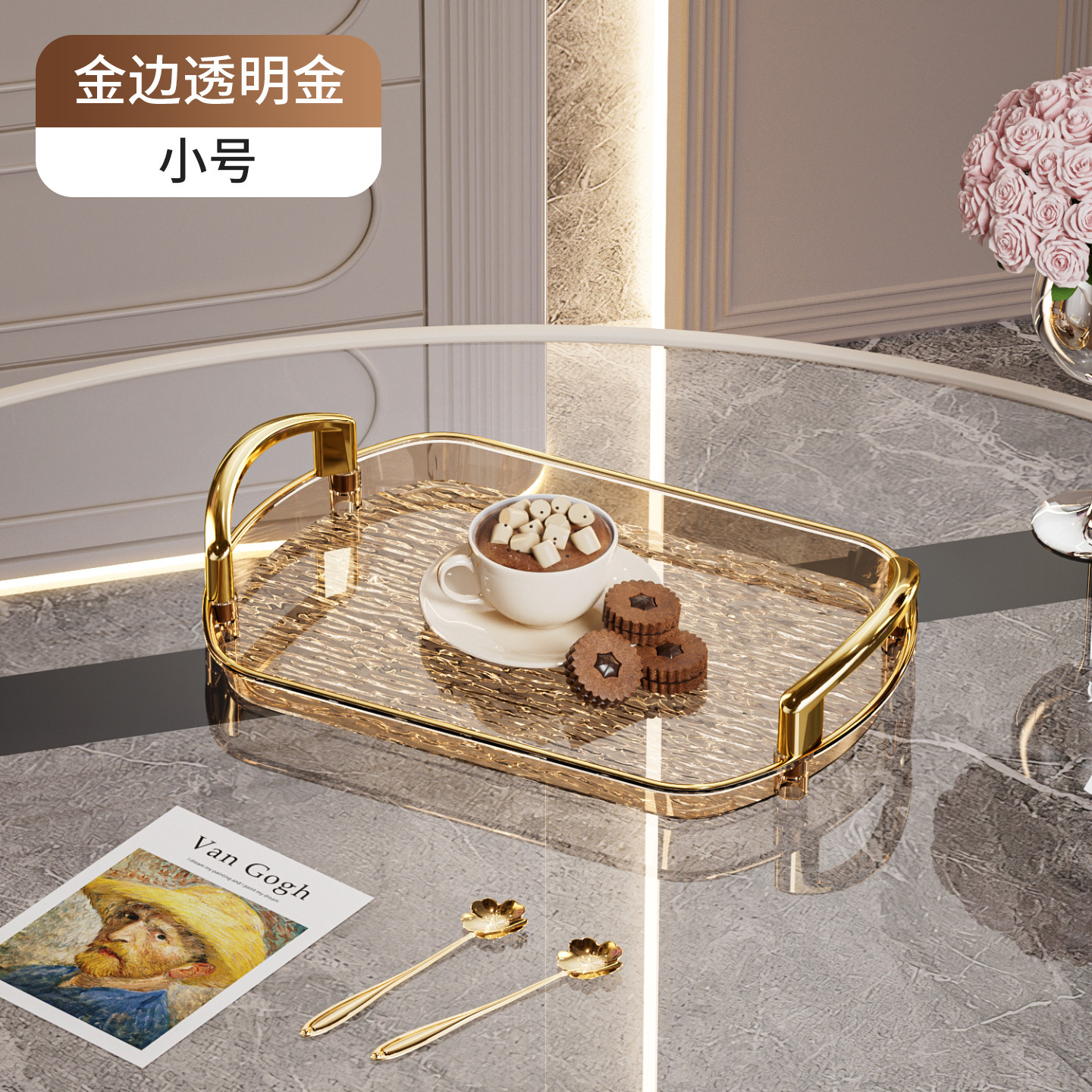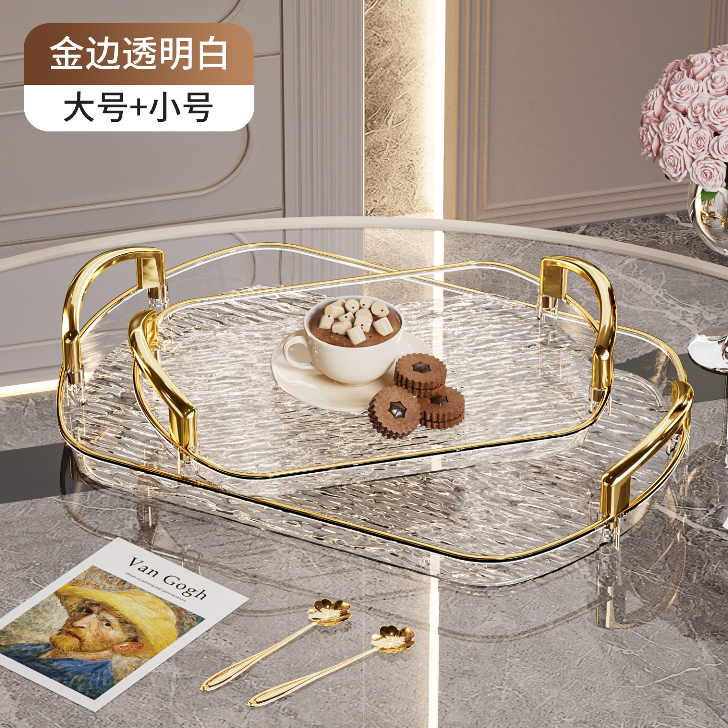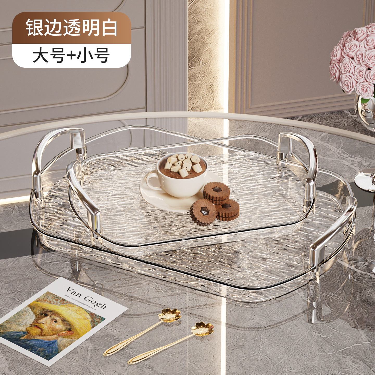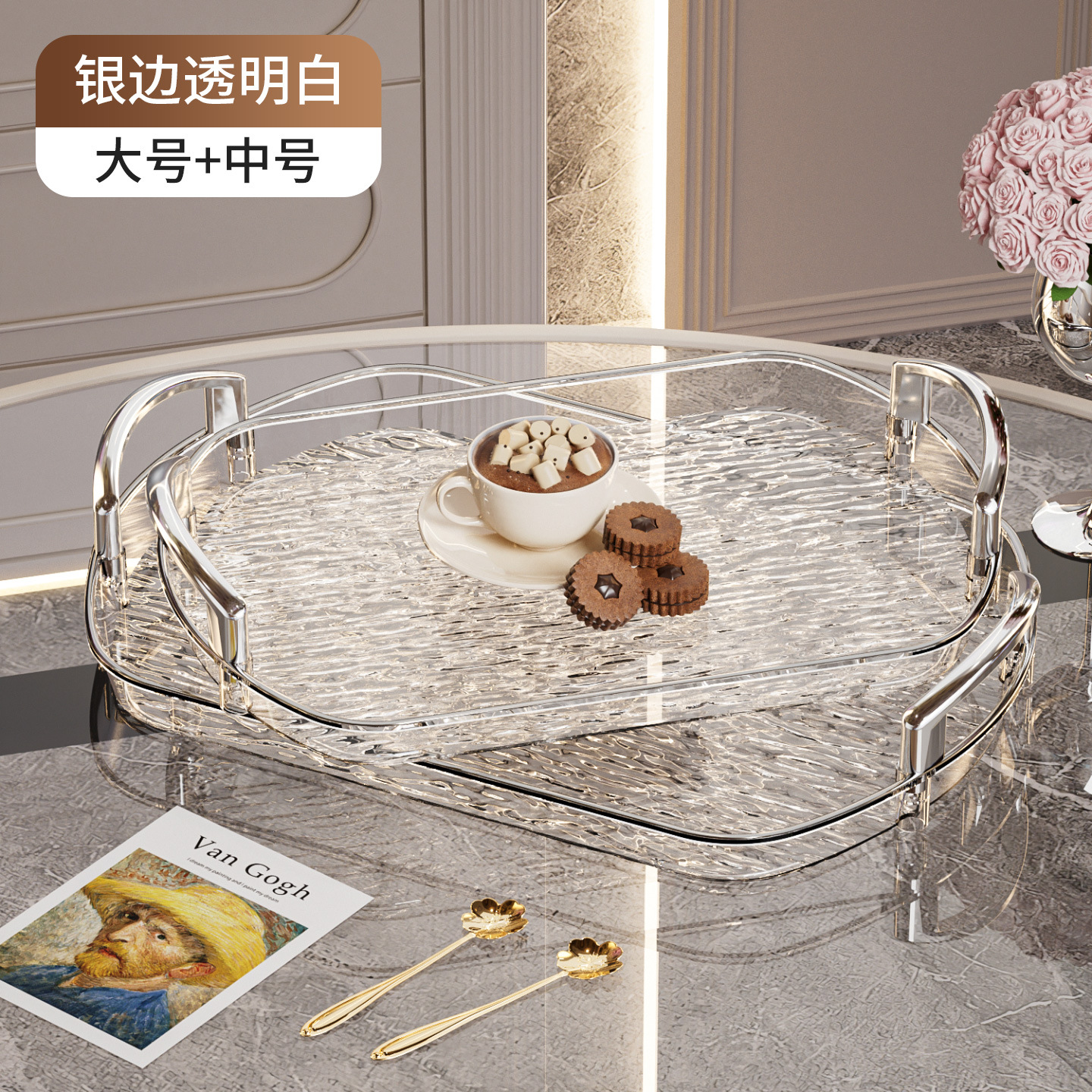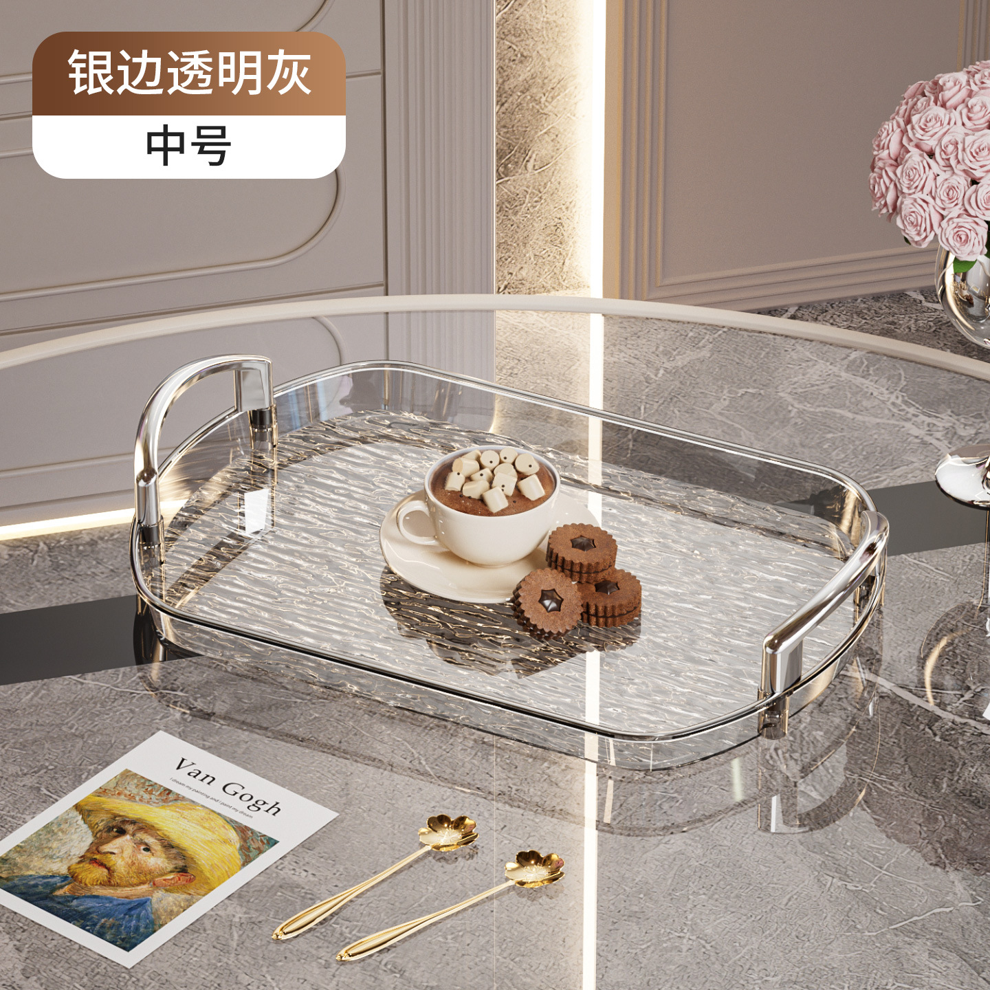 轻奢塑料托盘带把手双耳高档家用茶盘餐盘商用餐厅加厚大号盘子