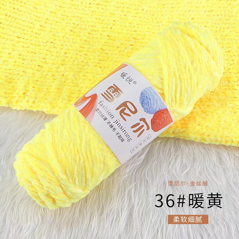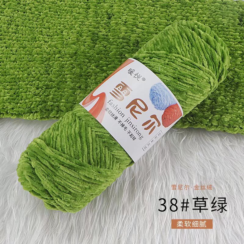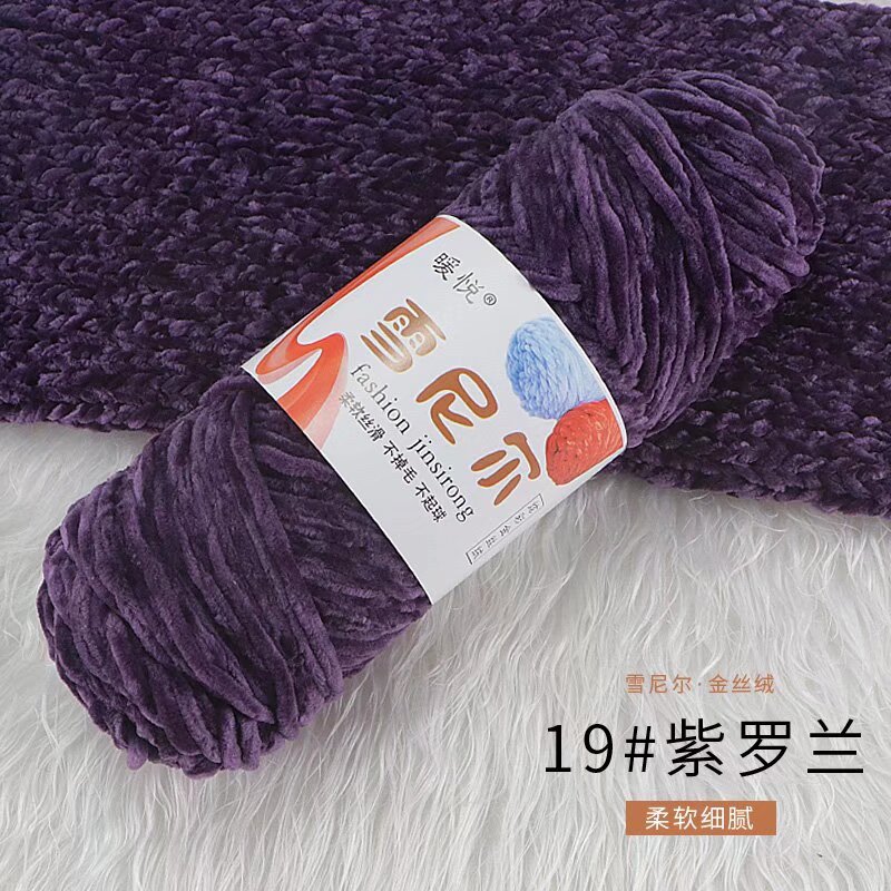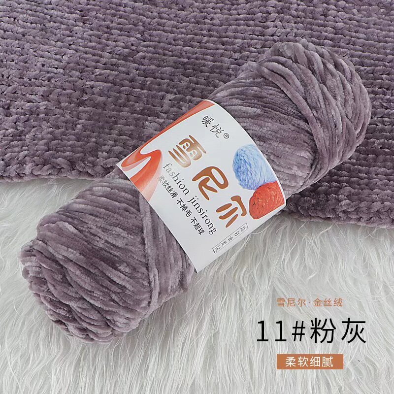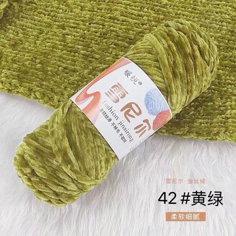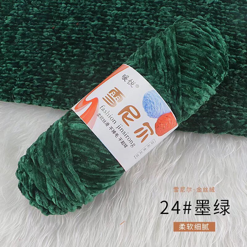 雪尼尔金丝绒毛线团中粗有光多色光泽编织拖鞋钩针线厂家毛线批发