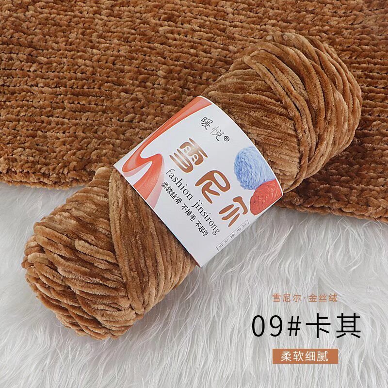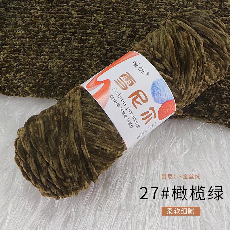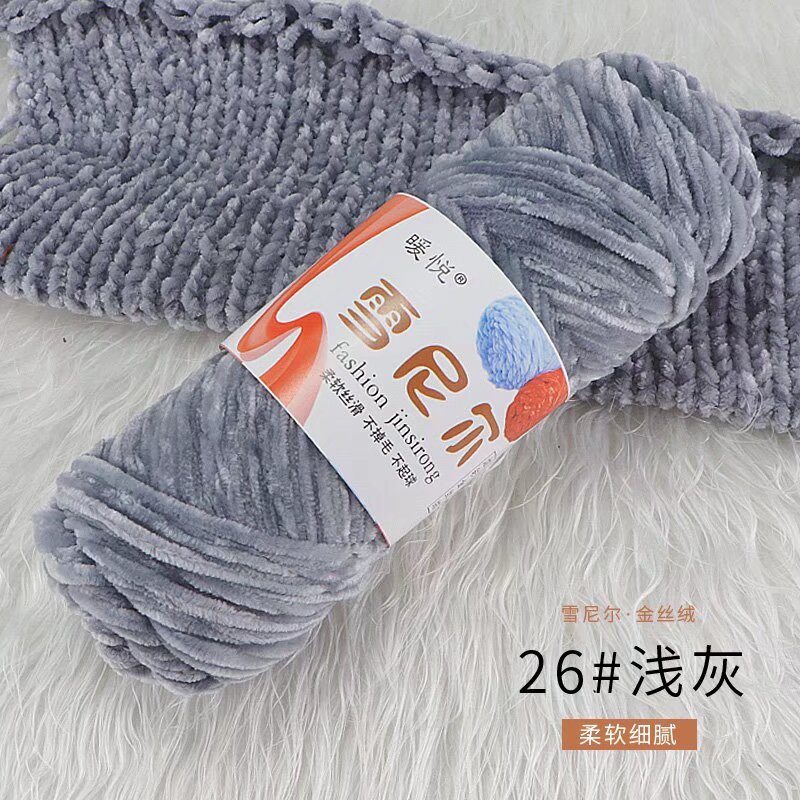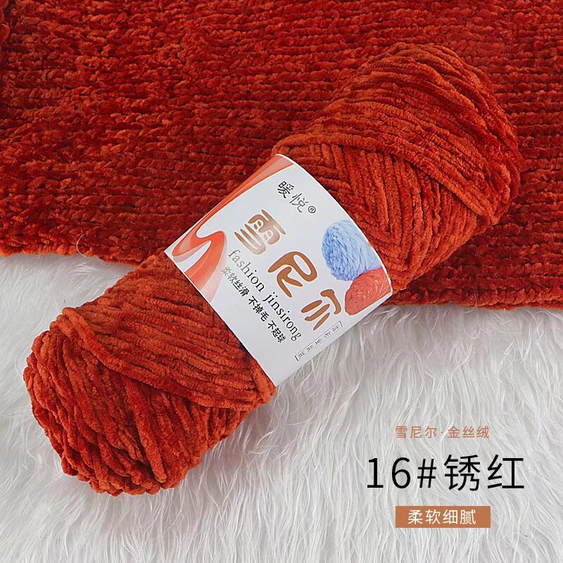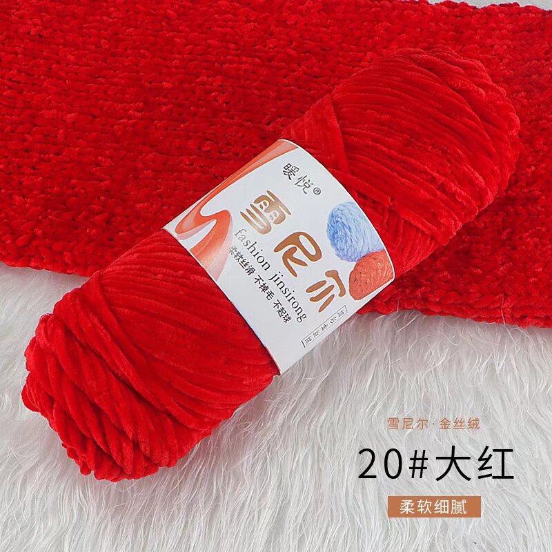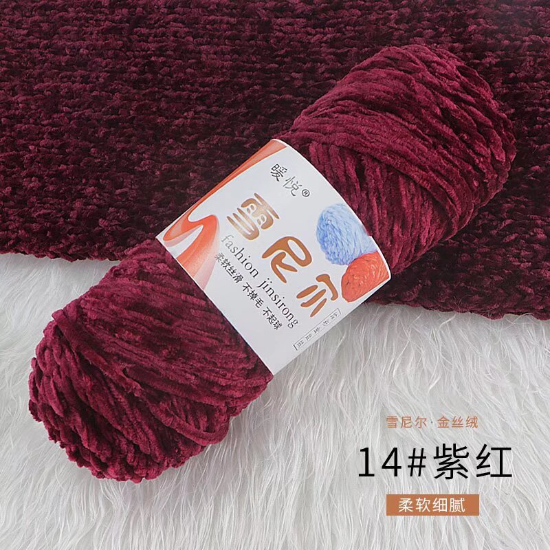 雪尼尔金丝绒毛线团中粗有光多色光泽编织拖鞋钩针线厂家毛线批发