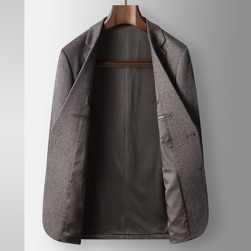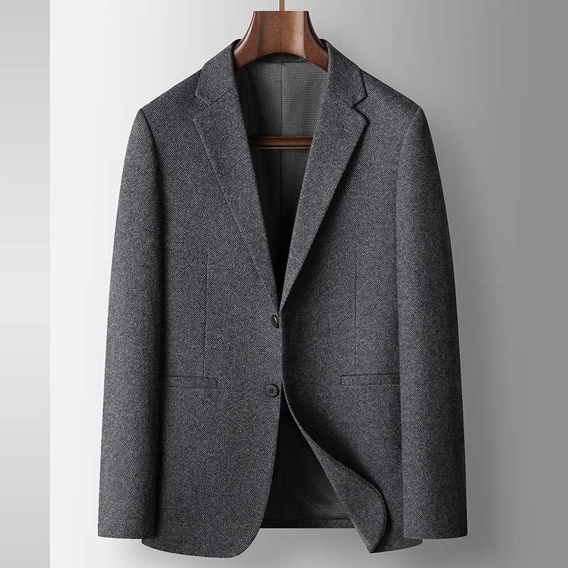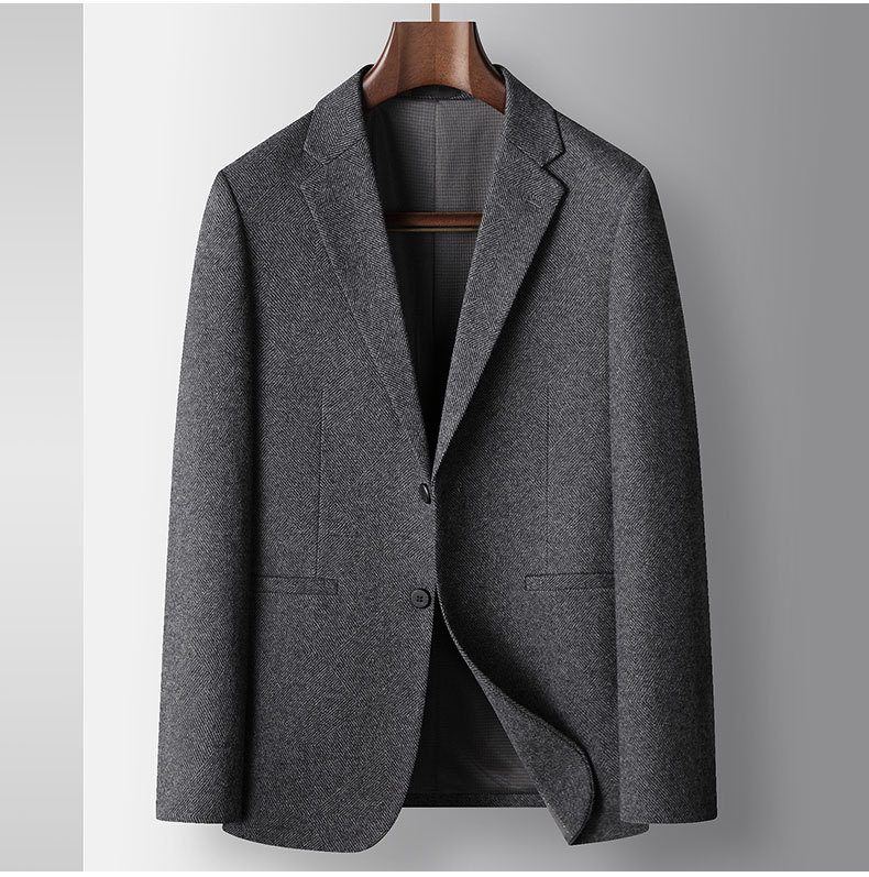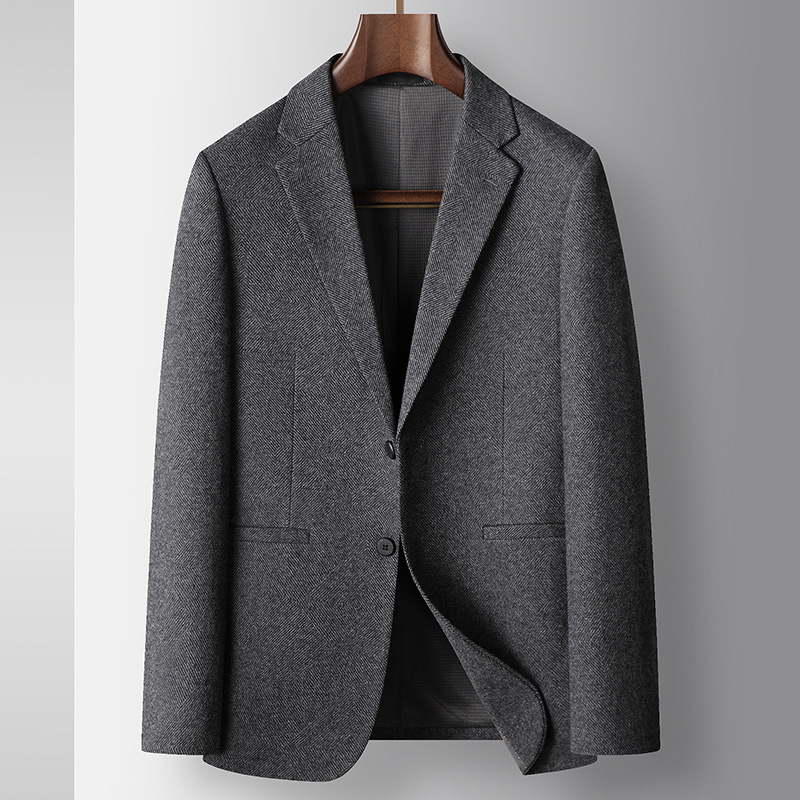 男式休闲西装2025秋冬轻奢商务羊毛单西青年纯色免烫潮流西服外套
