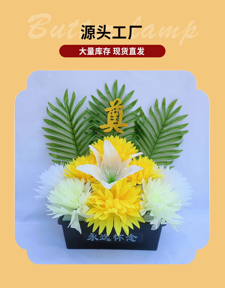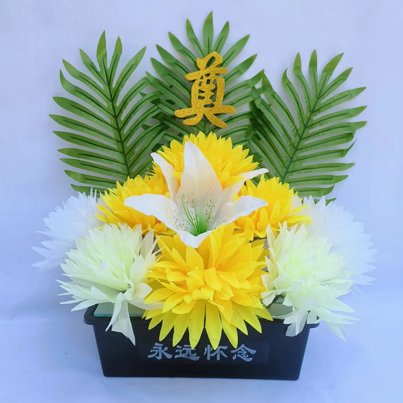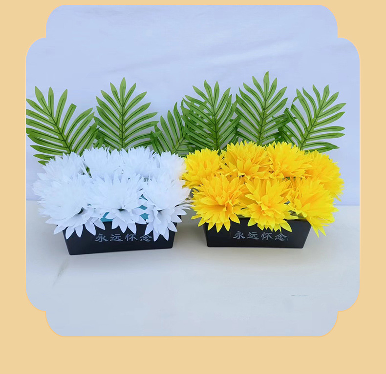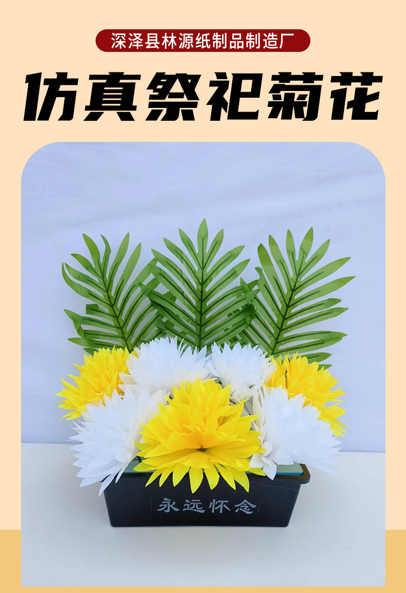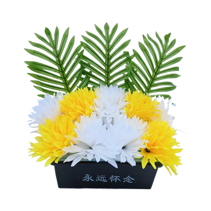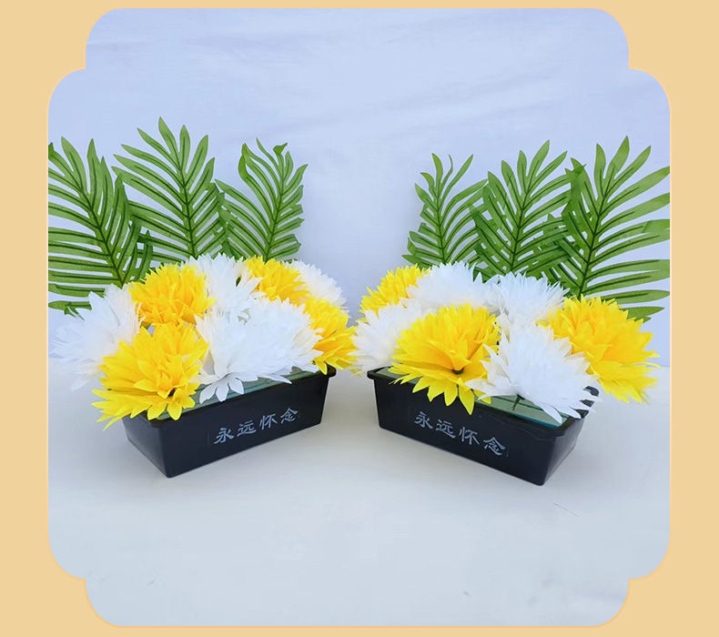 仿真祭祀菊花黄白搭配带盆多种款式陵园墓地摆放祭祀花盆