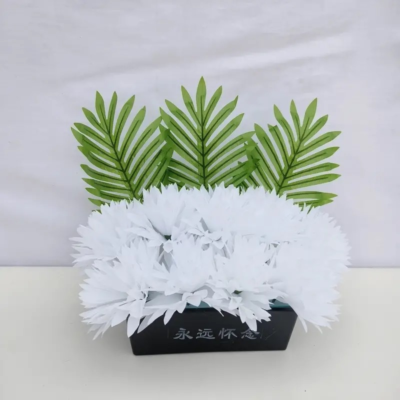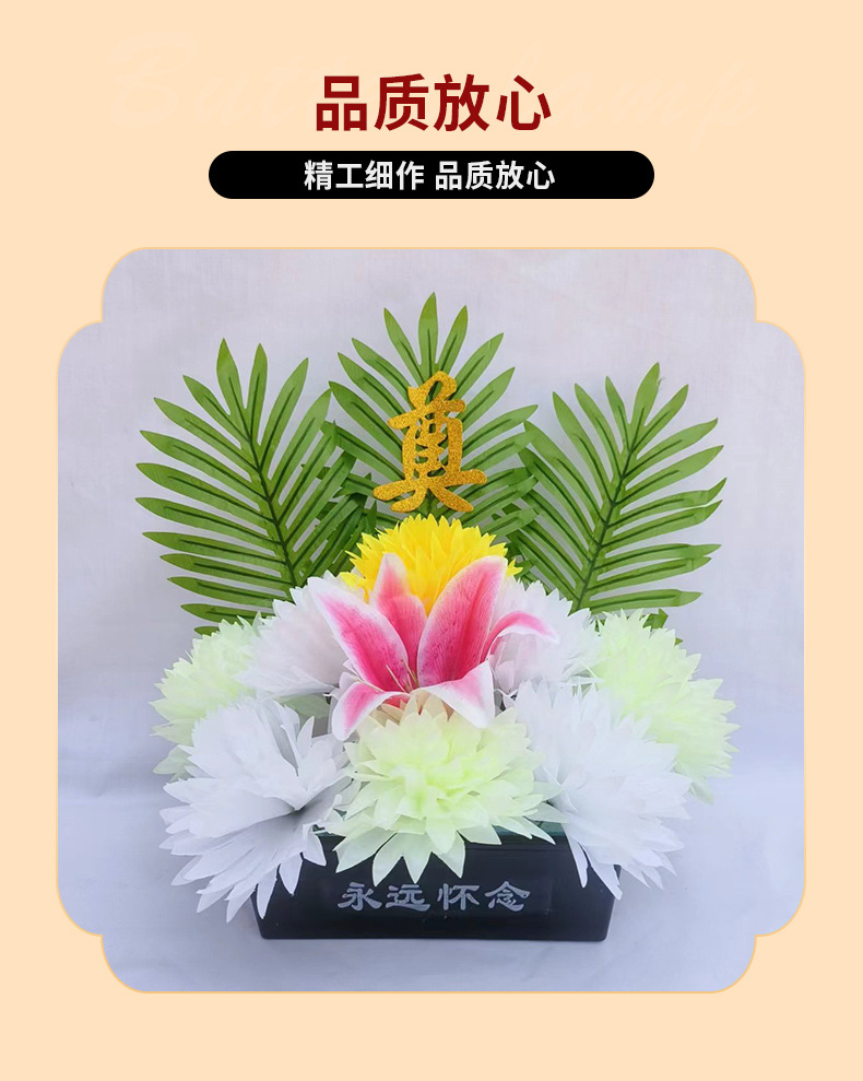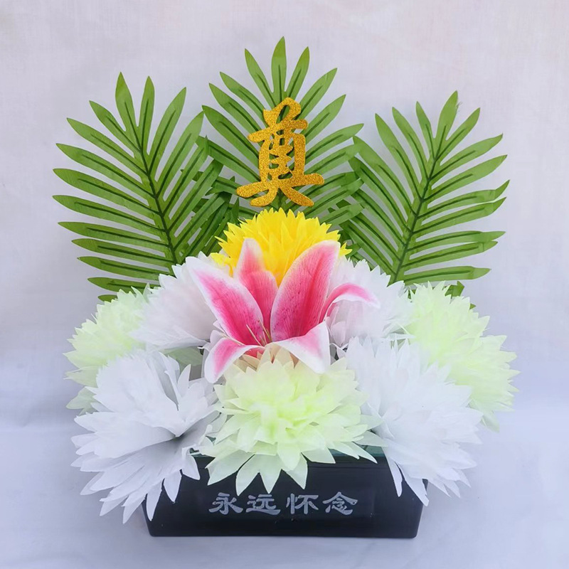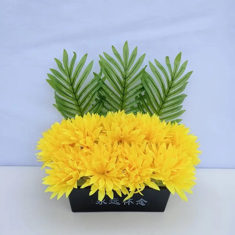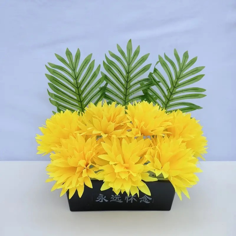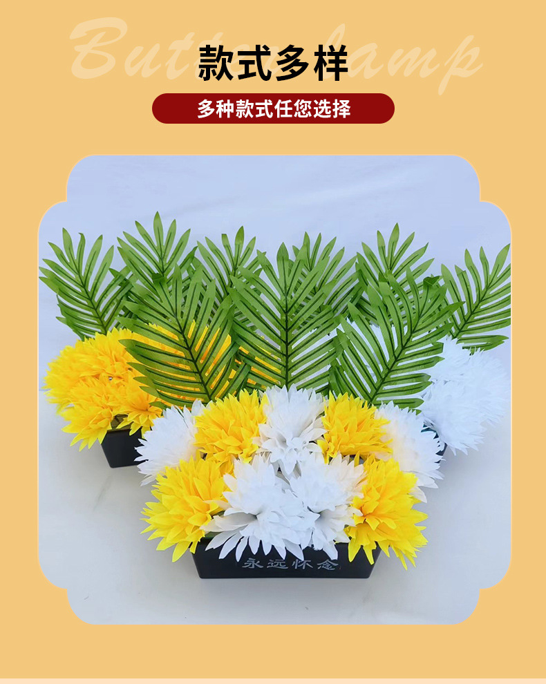 仿真祭祀菊花黄白搭配带盆多种款式陵园墓地摆放祭祀花盆