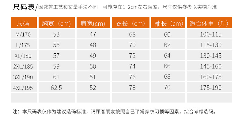 | 195/4XL(适合190-205斤) | USD $0.0 | 100 piece available |
