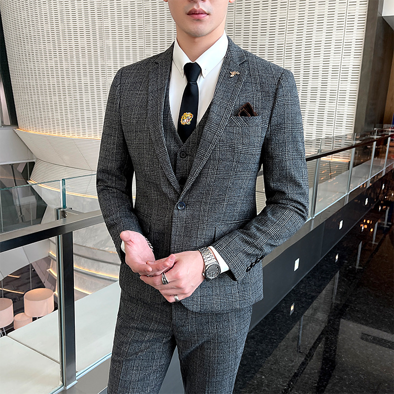 新品男装春季男士休闲西服韩版修身三件套小西装正装礼服批发