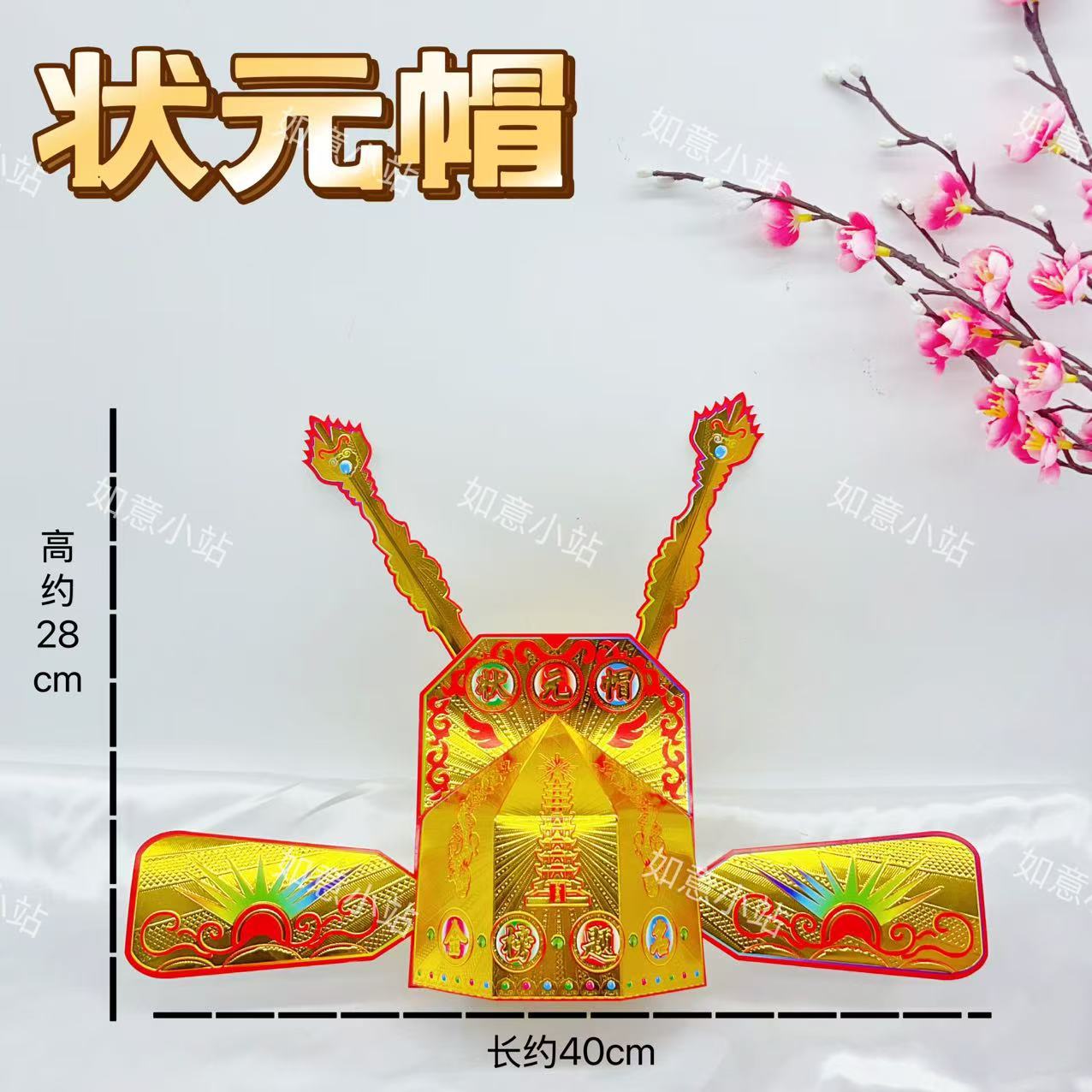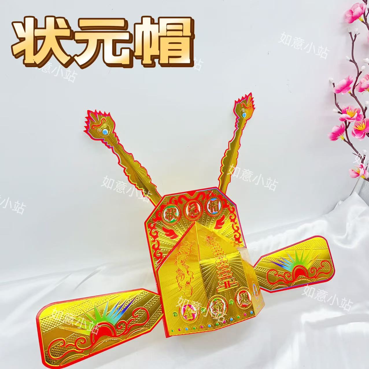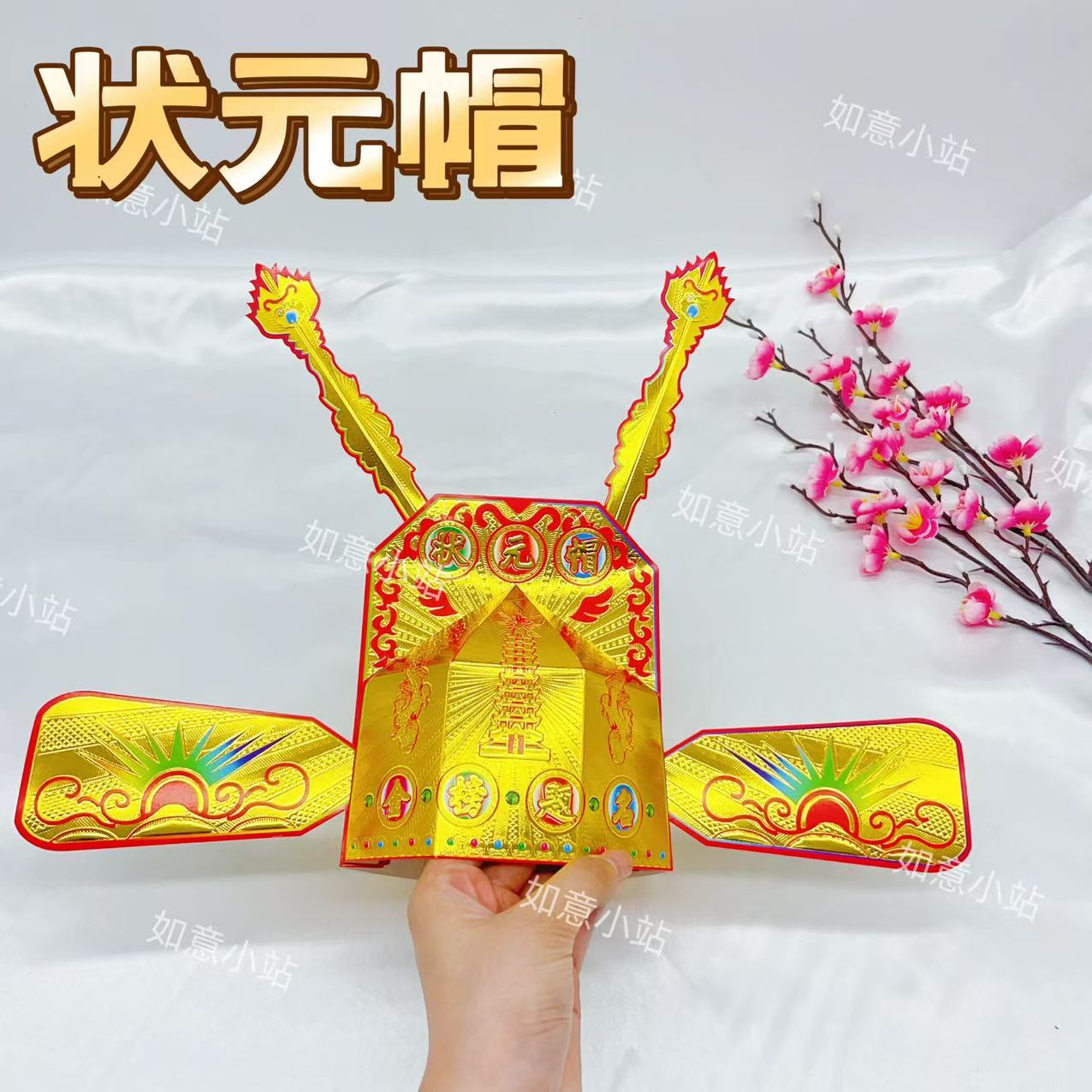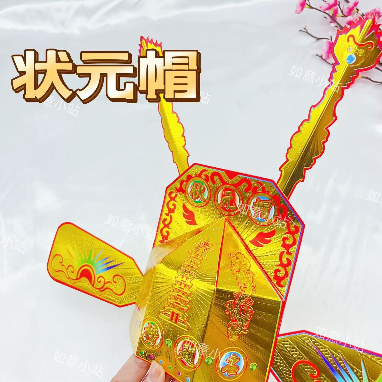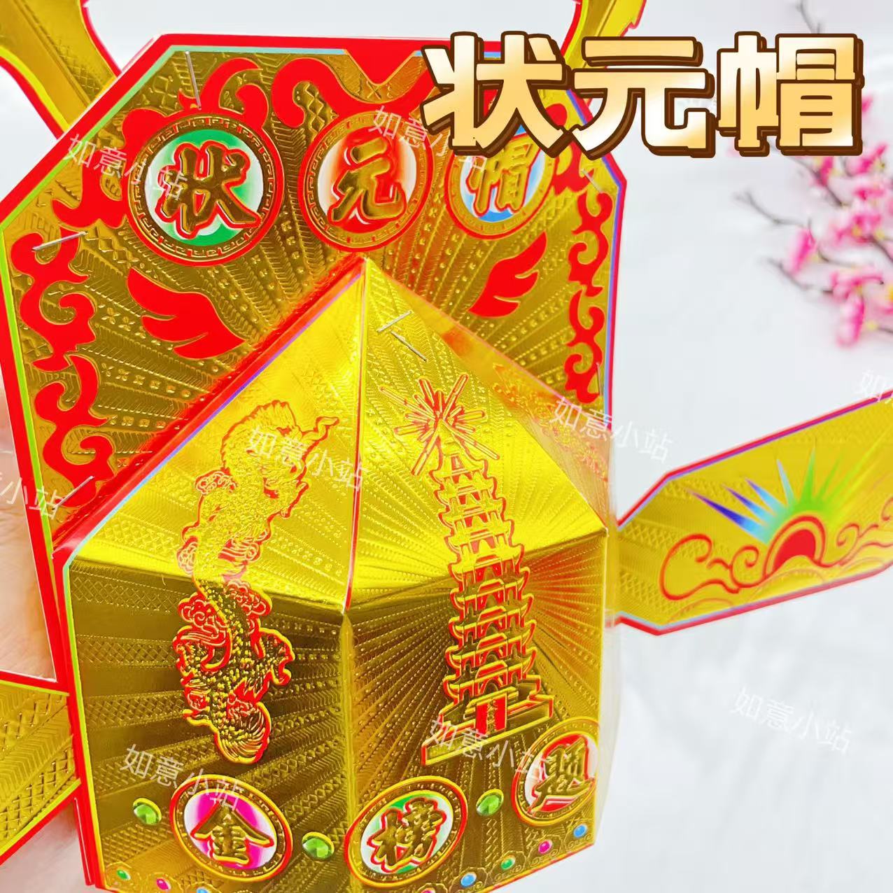 状元帽金榜题名DIY材料高考中考祈福需自折金花文昌帽