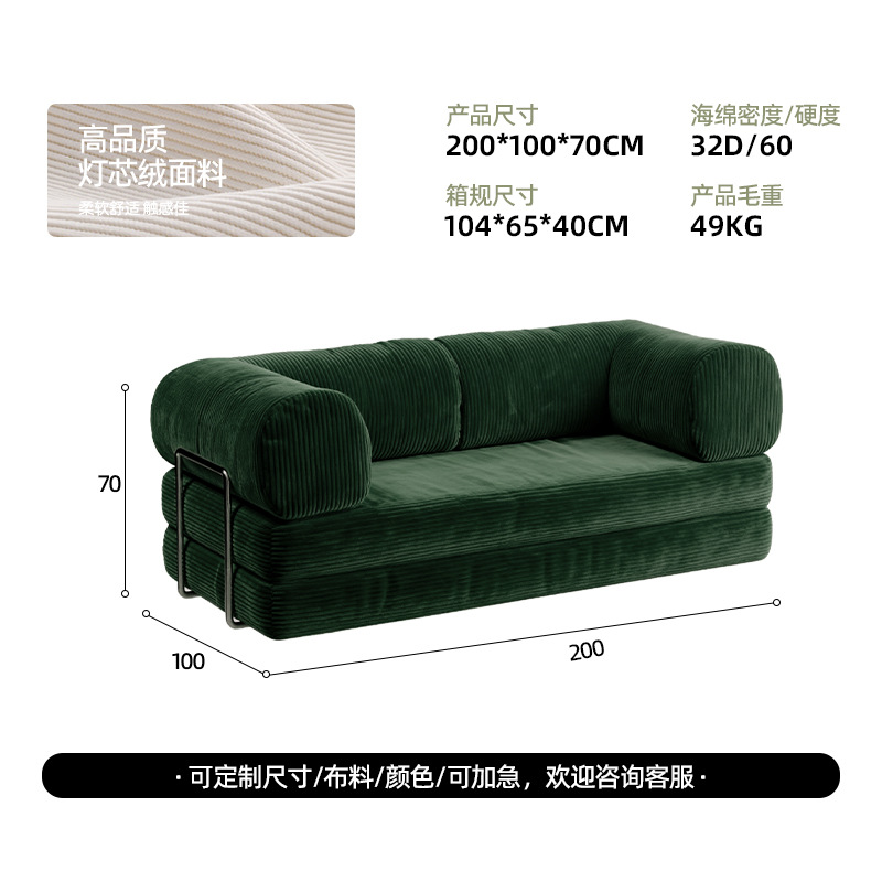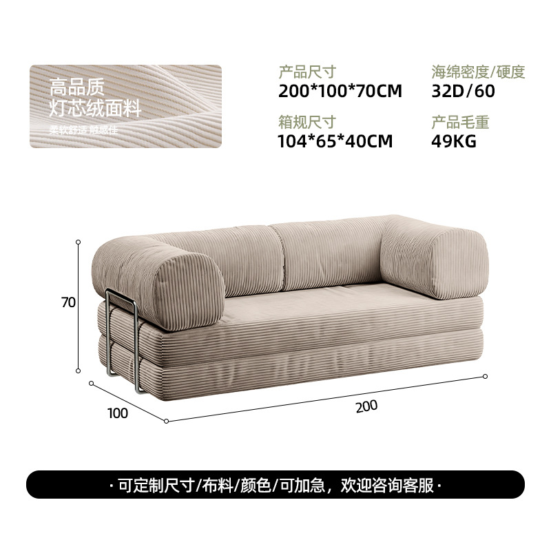 跨境爆款压缩沙发2米折叠两用海绵沙发床小户型沙发客厅懒人沙发