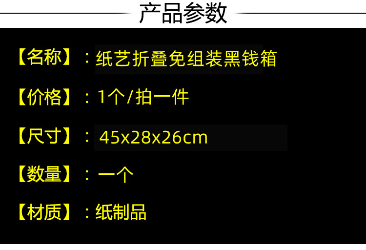 烧纸祭祀用品折叠免组装黑色百宝箱纸糊钱箱子可装元宝衣服衣箱