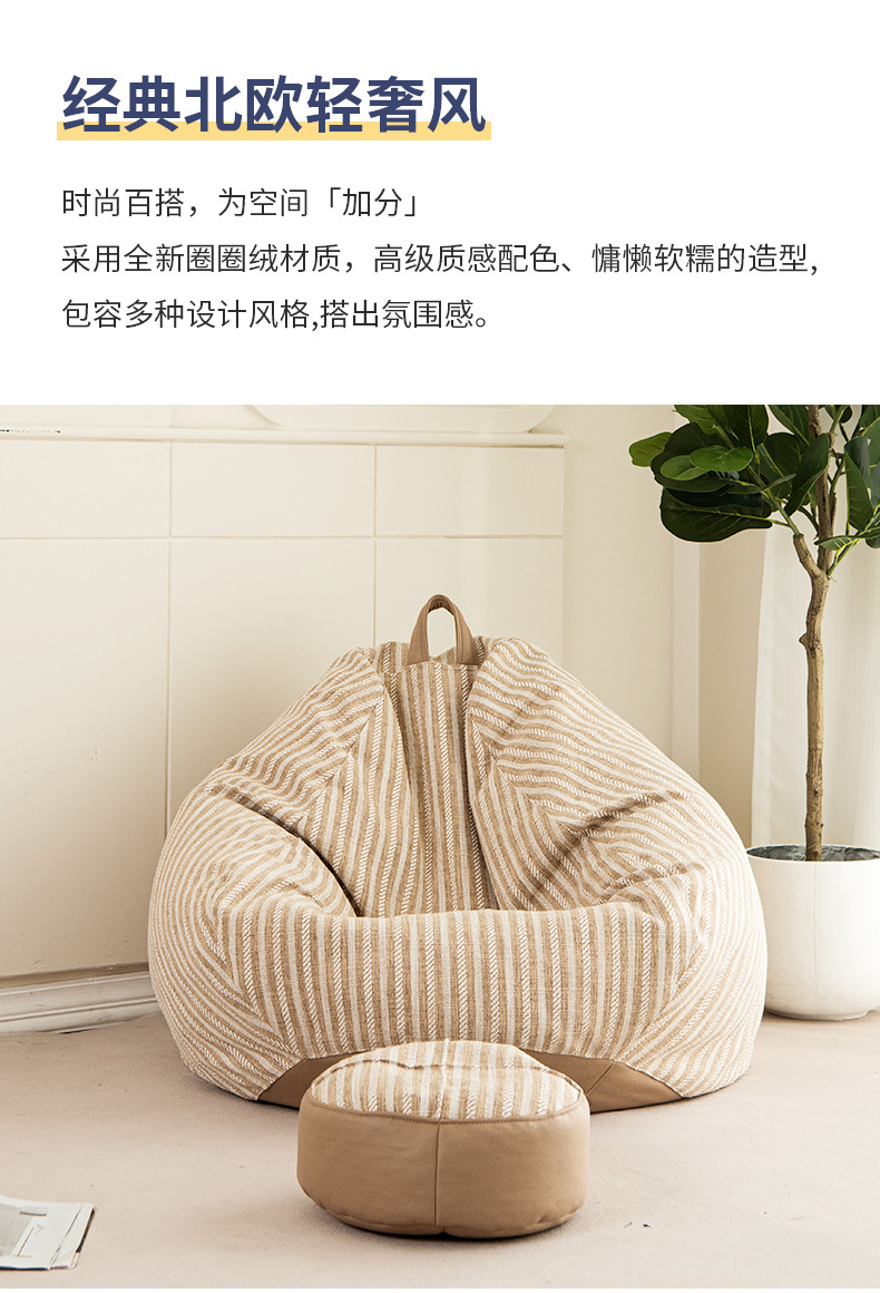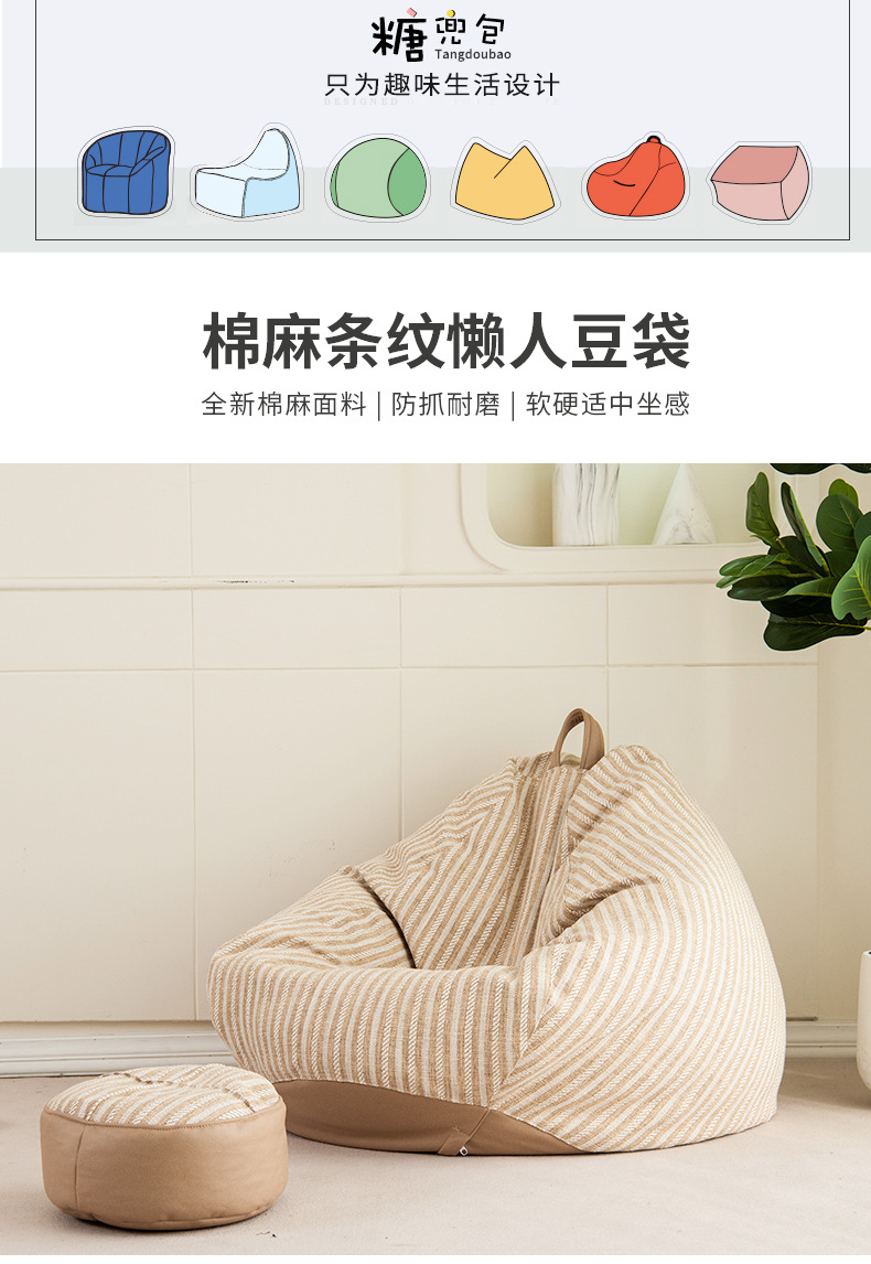 现货棉麻条纹懒人沙发豆袋 豆袋沙发 客厅简约风格沙发豆袋可拆洗