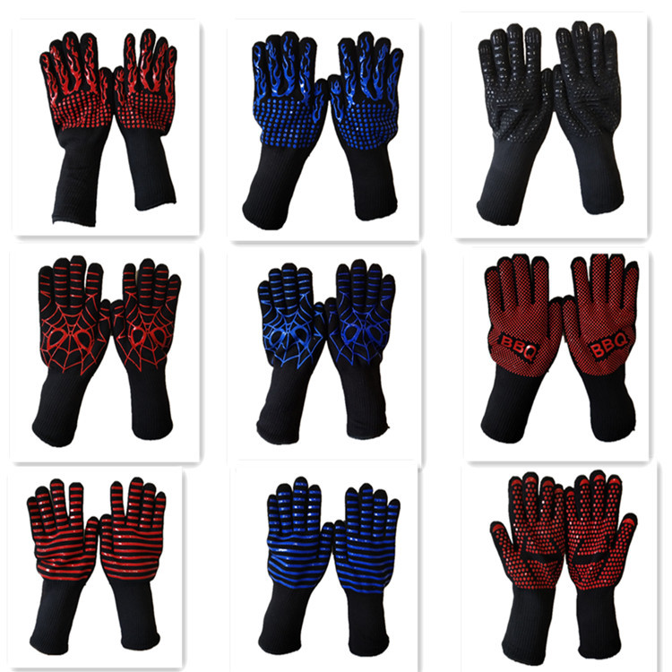 BBQ耐高温手套芳纶硅胶手套烧烤微波炉防火隔热手套厂家批发现货