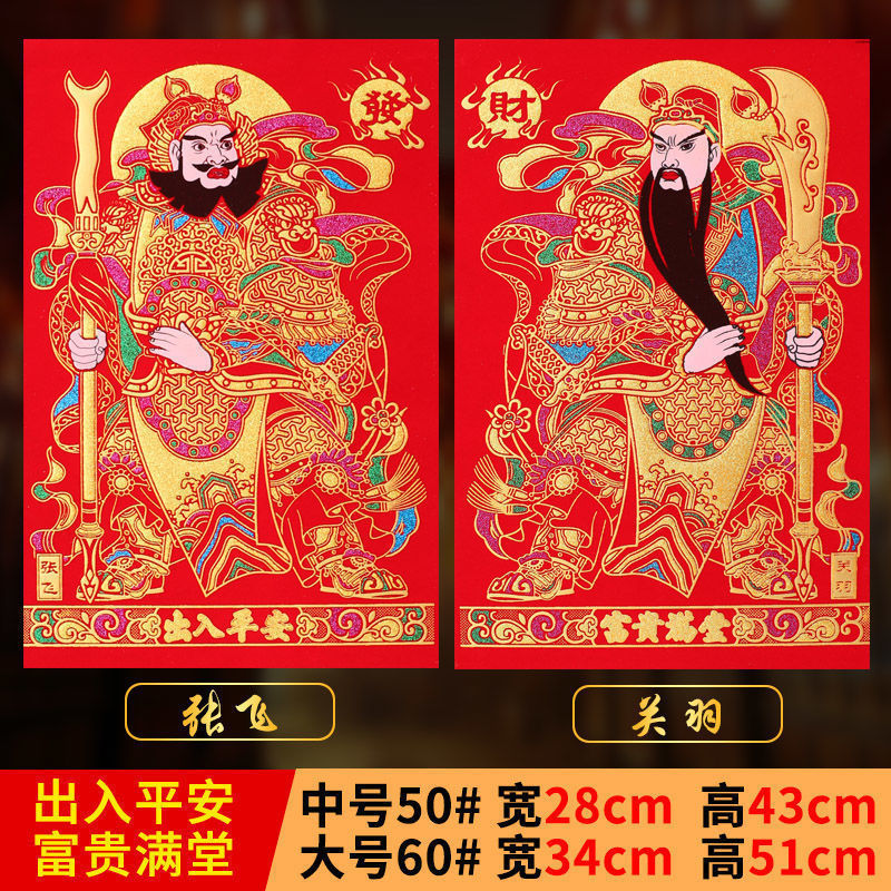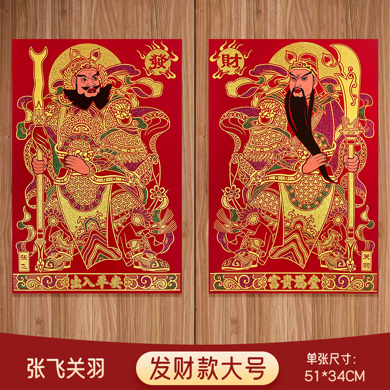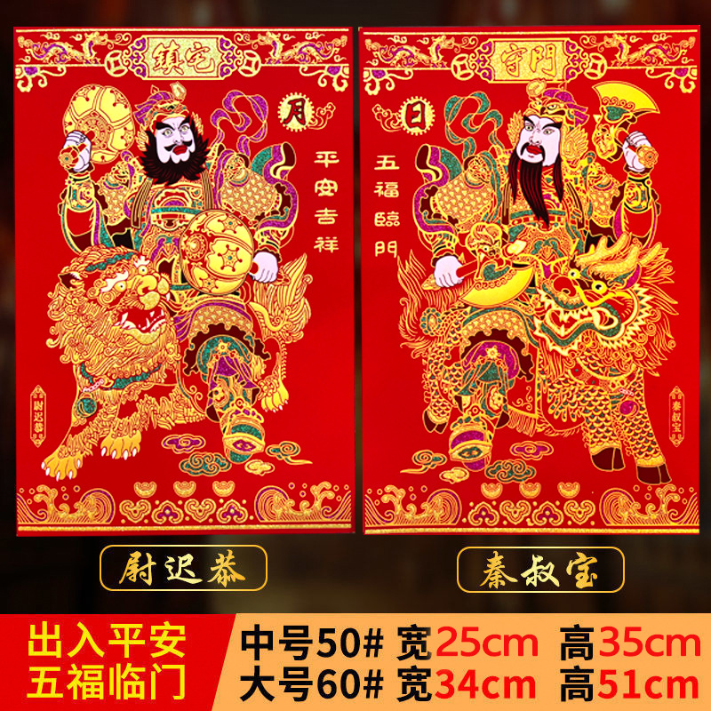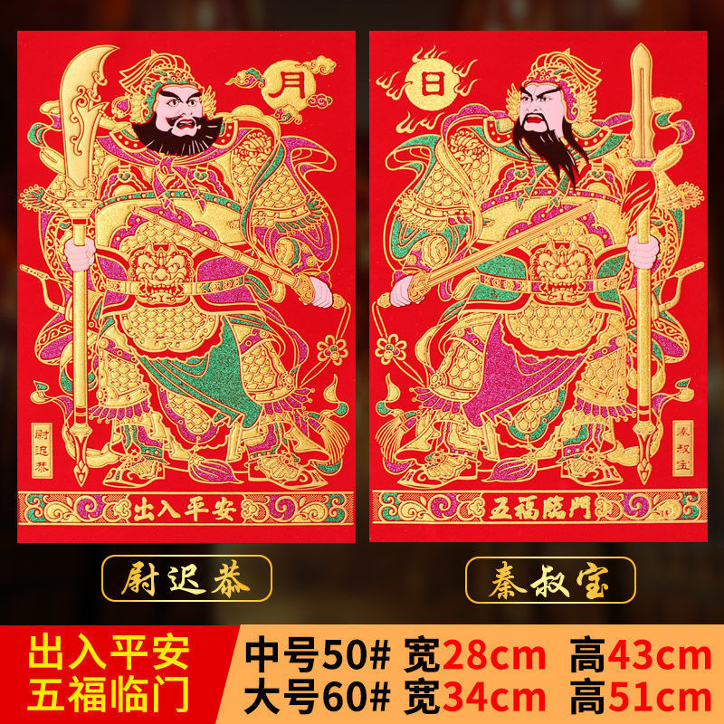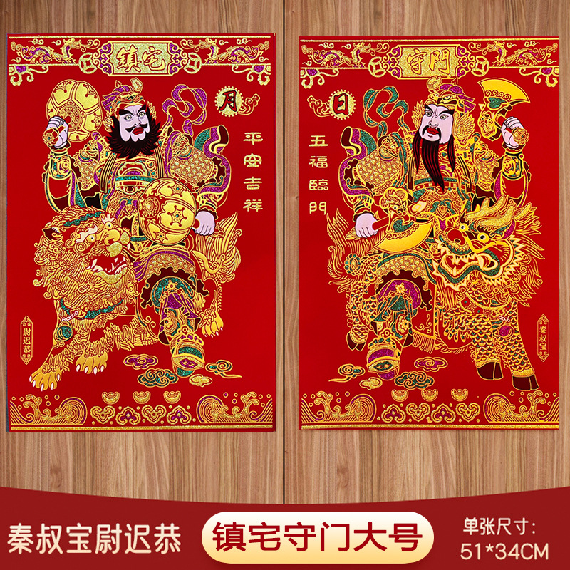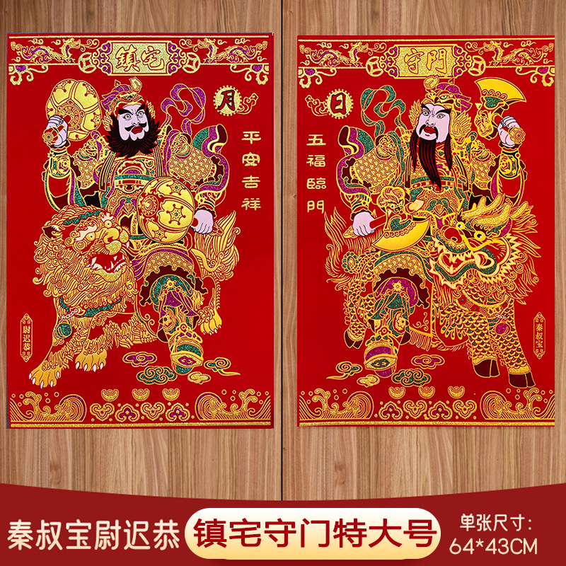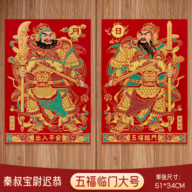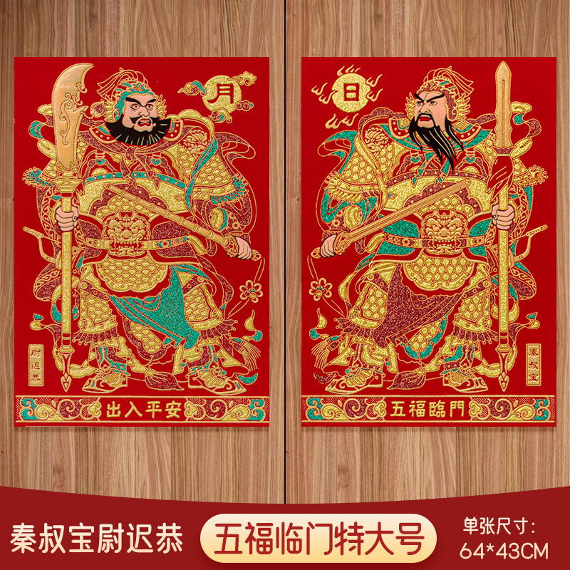 2026全背胶门神对贴绒布门贴日月守护神春节大门贴纸装饰门神批发