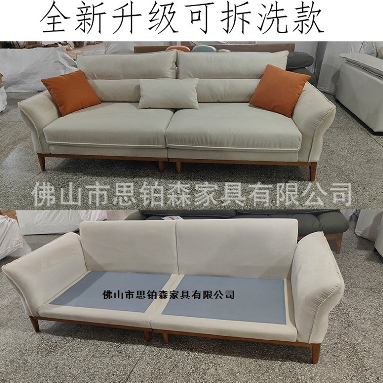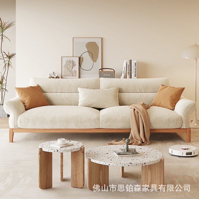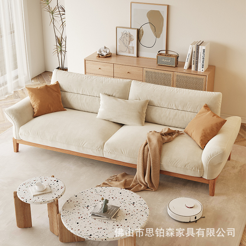 日式布艺沙发实木简约现代大小户型客厅原木沙发奶油风直排三人位
