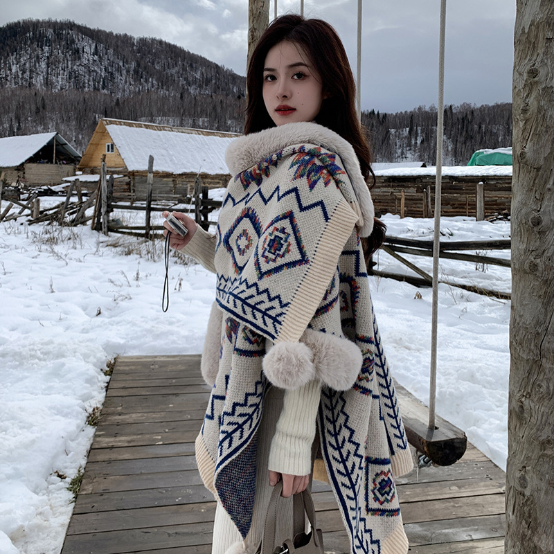 新疆旅行穿搭川西西北旅游民族风披肩斗篷女云南西藏青海草原女装