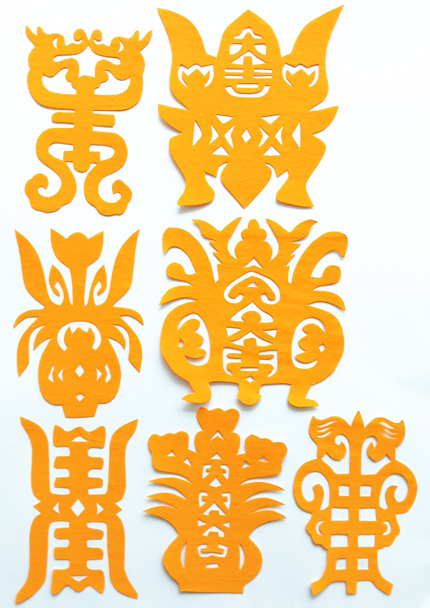包装:OPP透明自粘袋包装,A4白纸做底子衬托,一袋一张剪纸独立包装