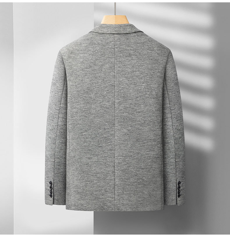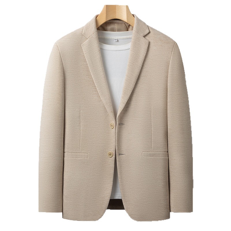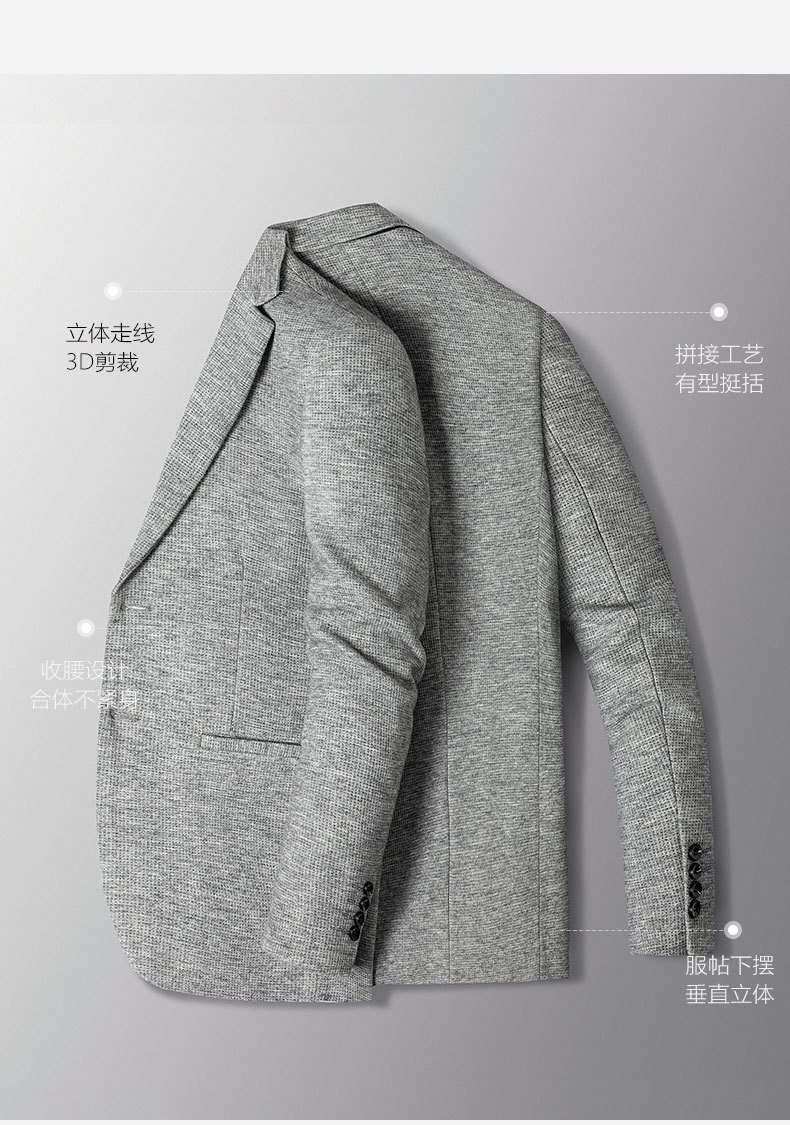 速卖通秋冬休闲西服外套男式青年华夫格免烫轻奢小西装男装上衣