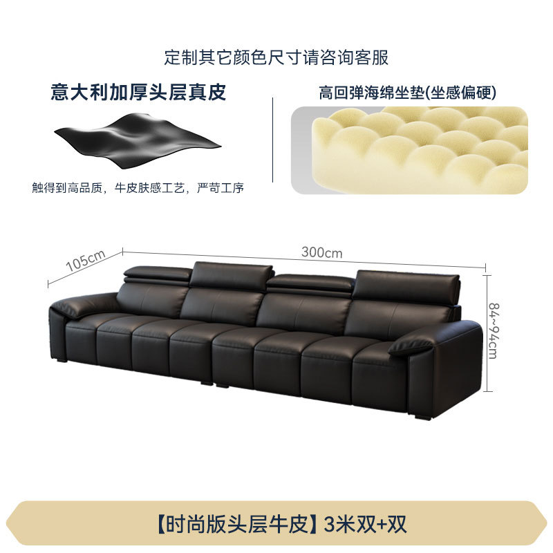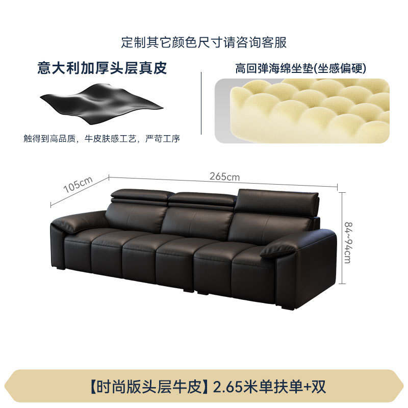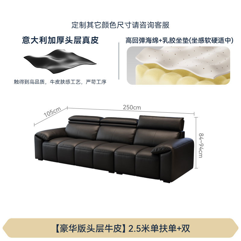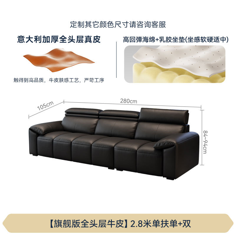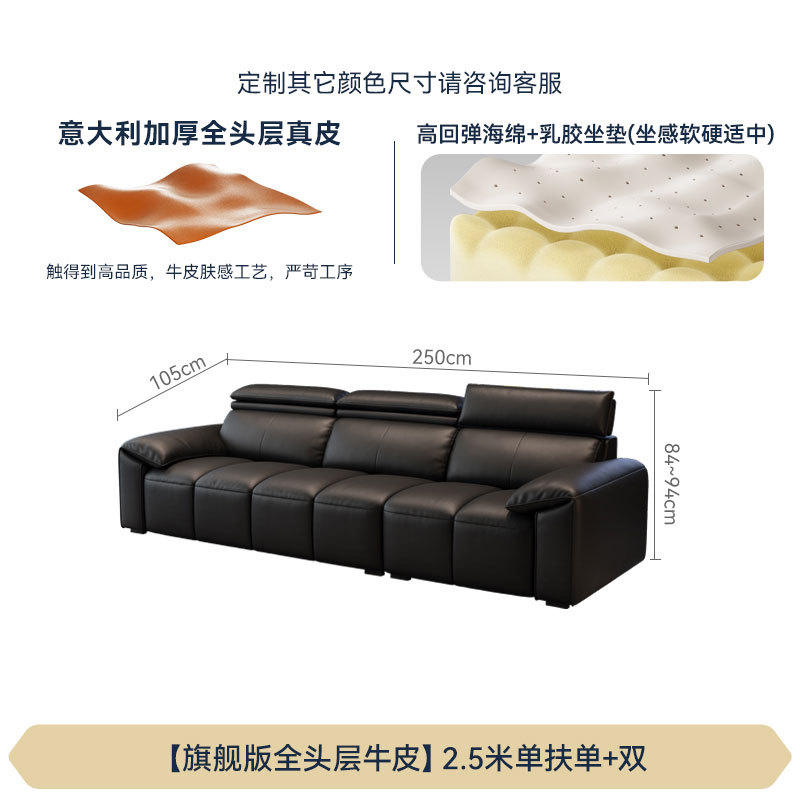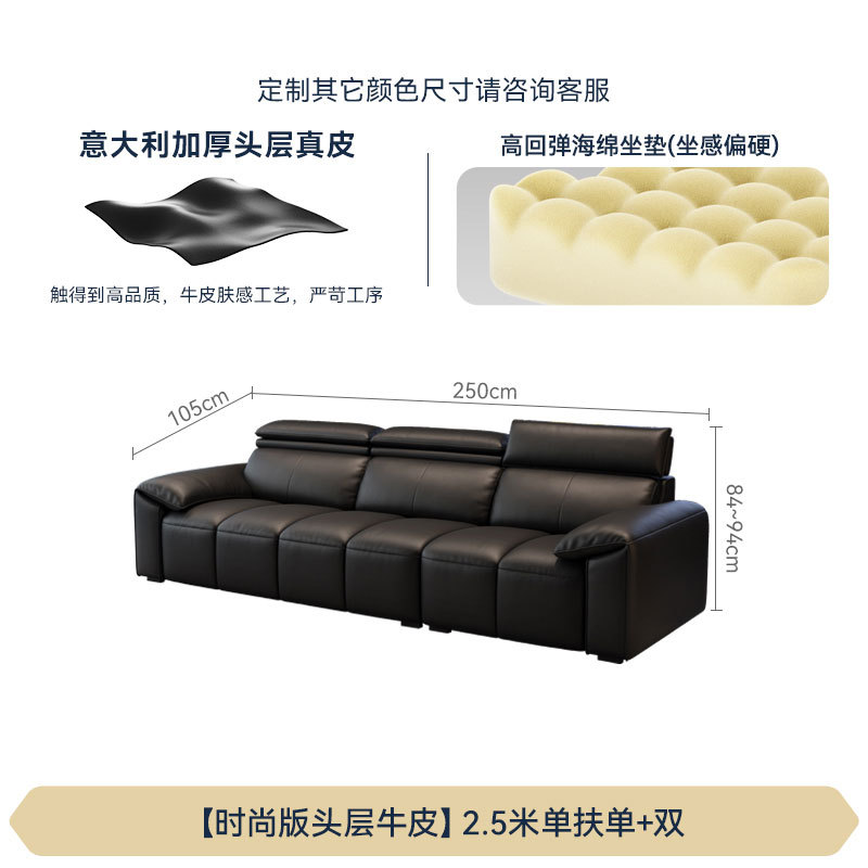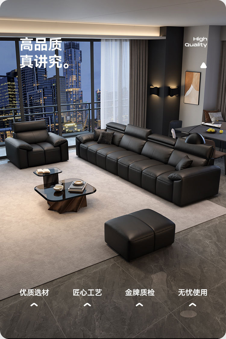 意式极简钢琴键真皮沙发现代简约客厅大小户型全真皮黑色直排沙发