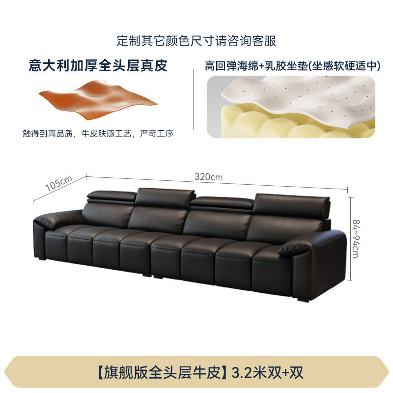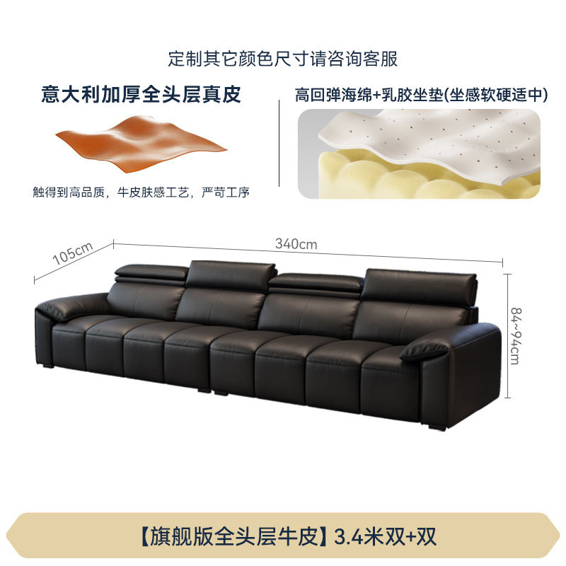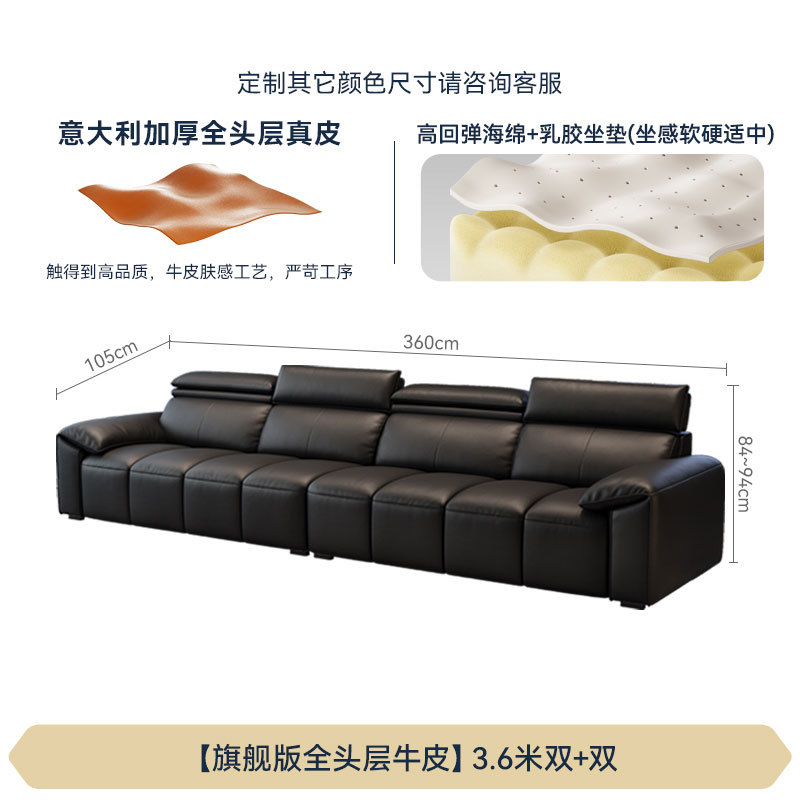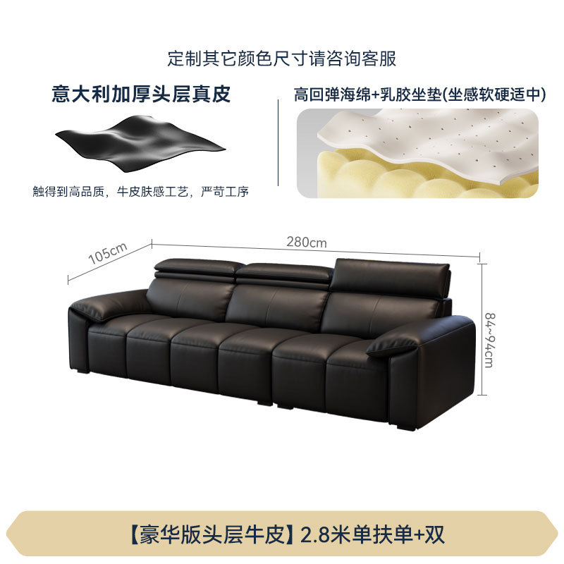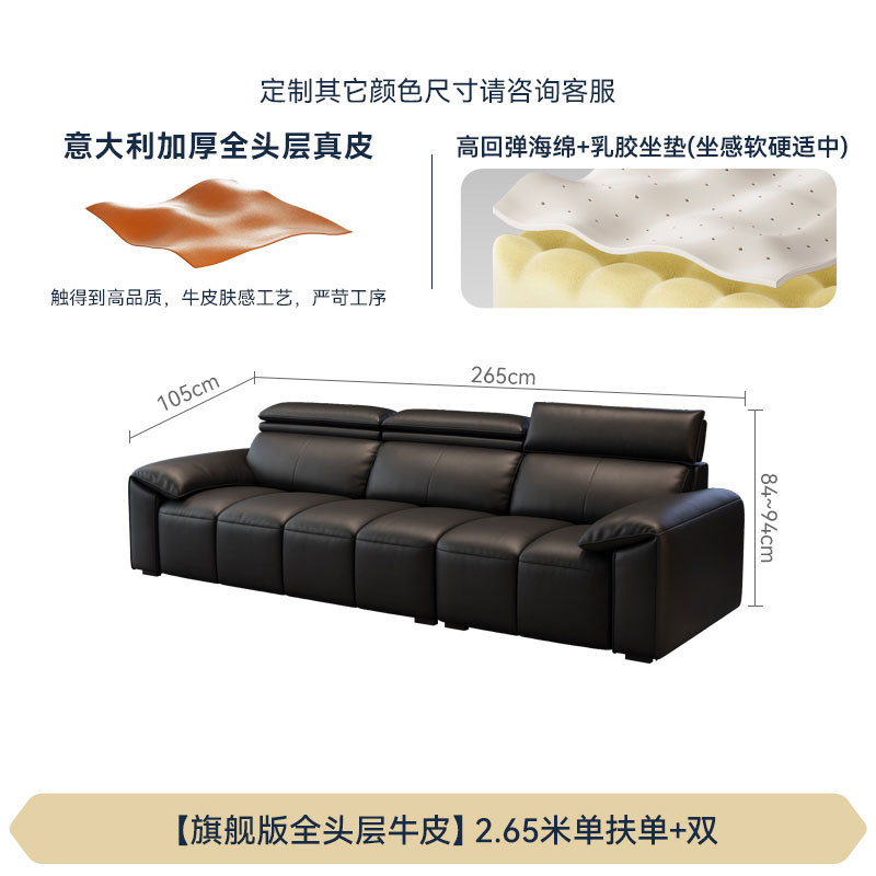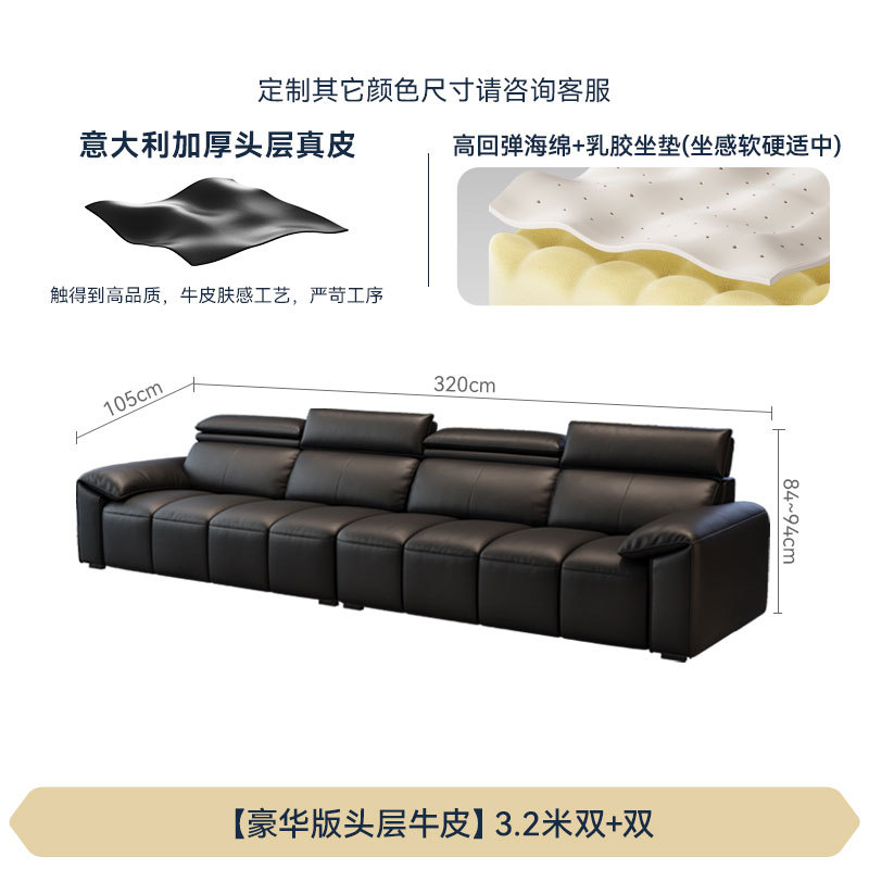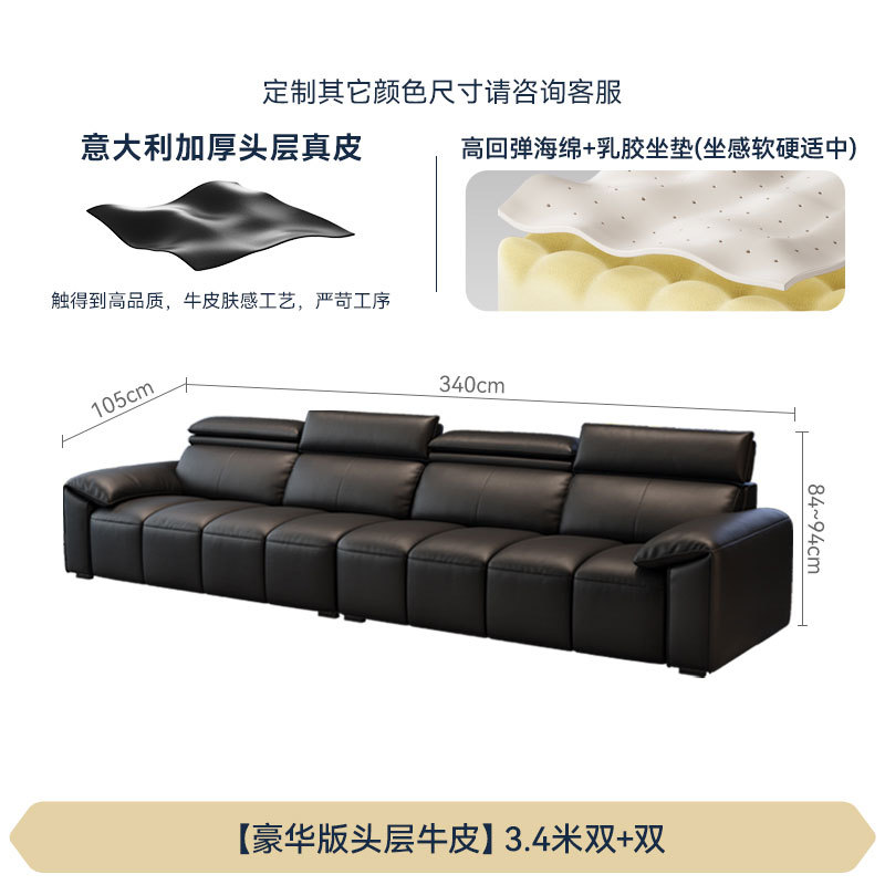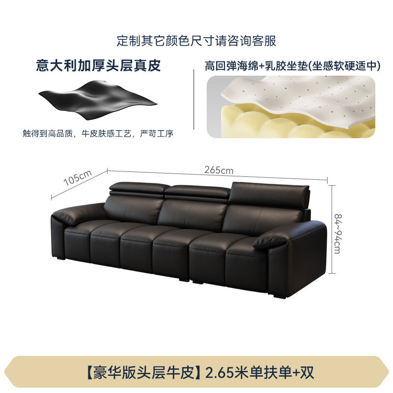 意式极简钢琴键真皮沙发现代简约客厅大小户型全真皮黑色直排沙发