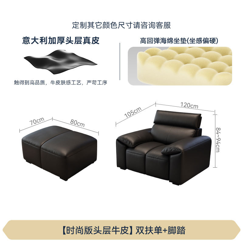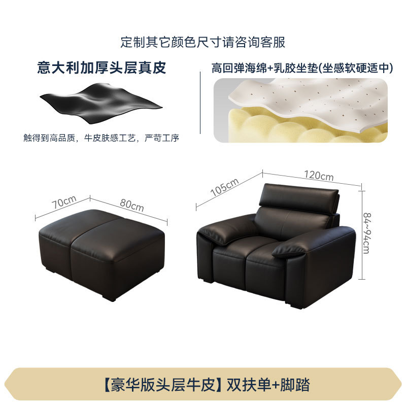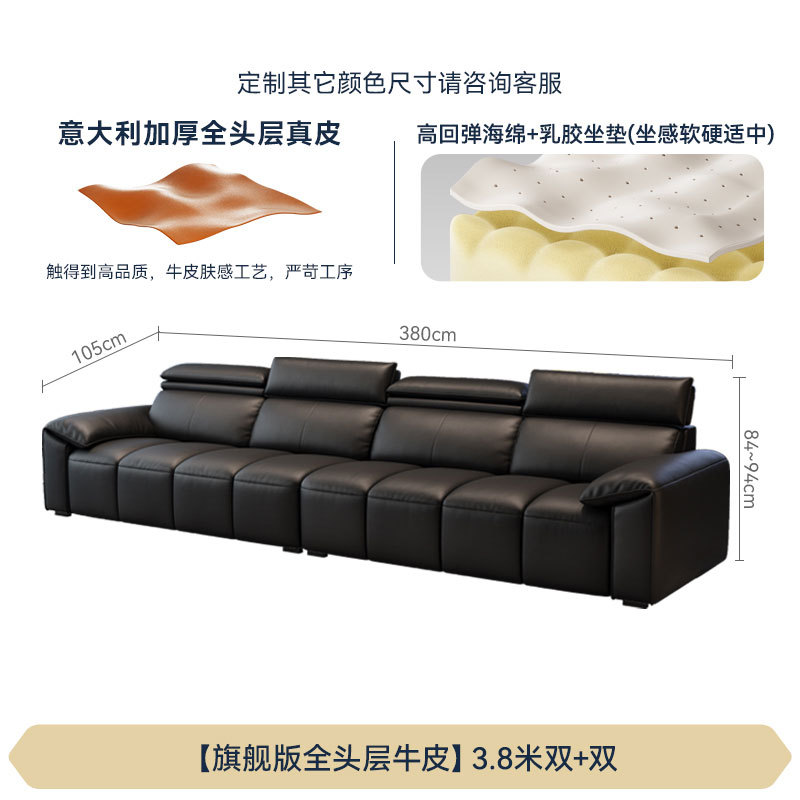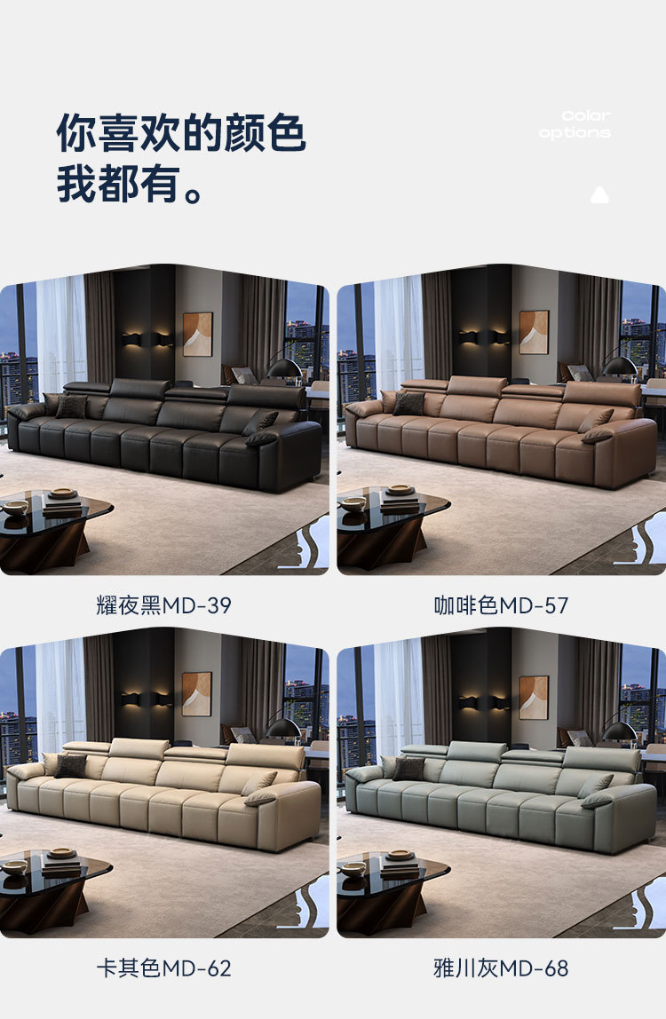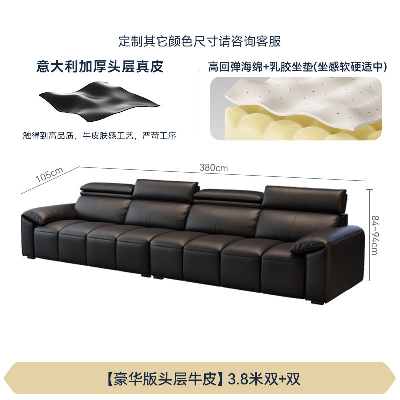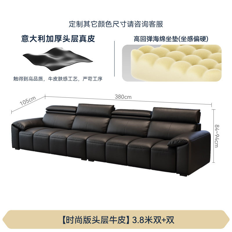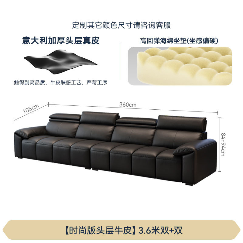 意式极简钢琴键真皮沙发现代简约客厅大小户型全真皮黑色直排沙发