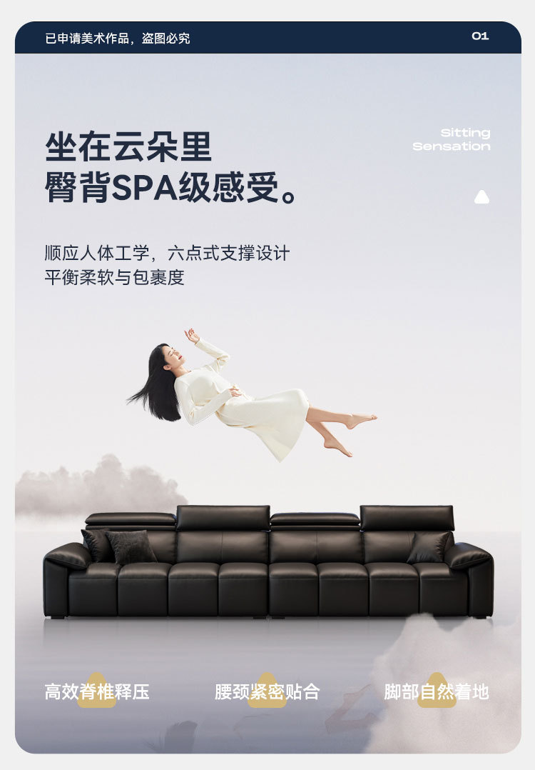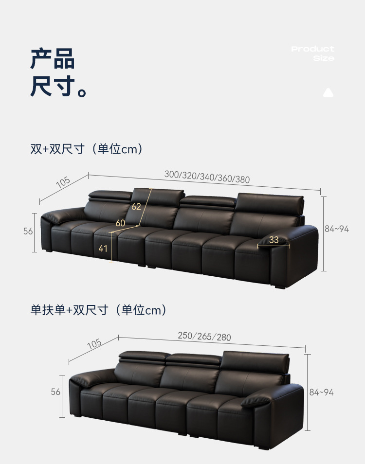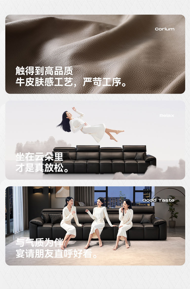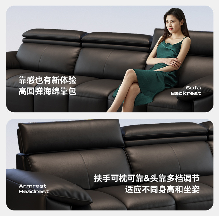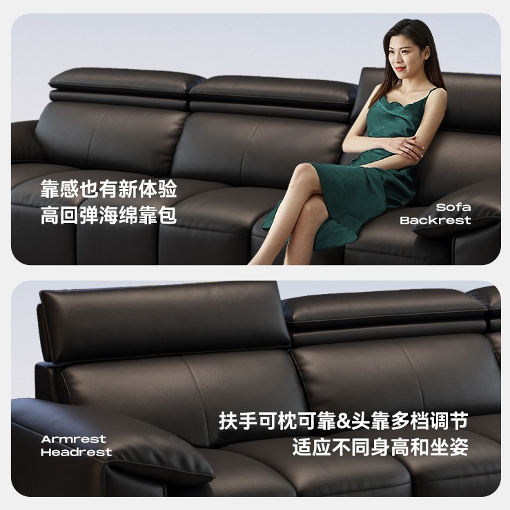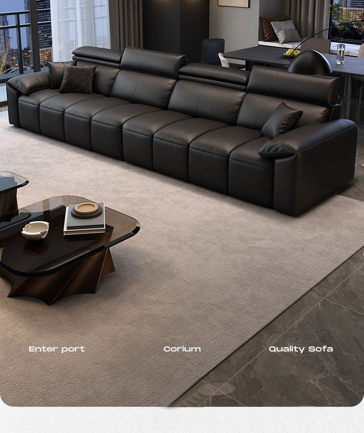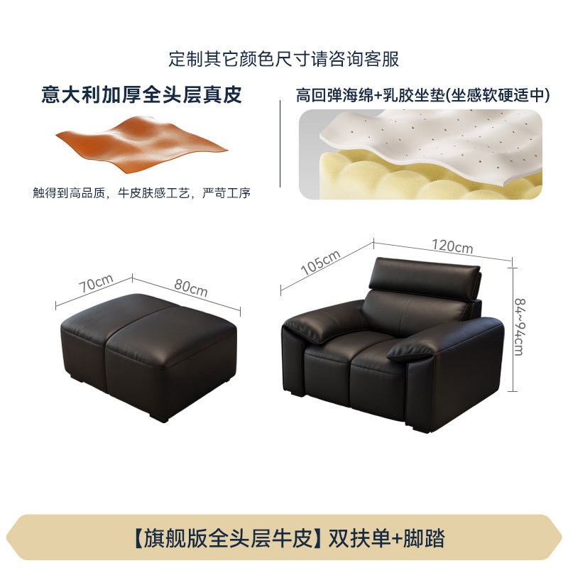 意式极简钢琴键真皮沙发现代简约客厅大小户型全真皮黑色直排沙发
