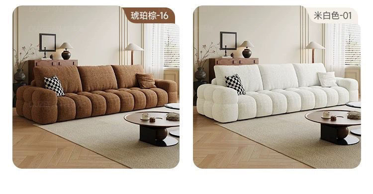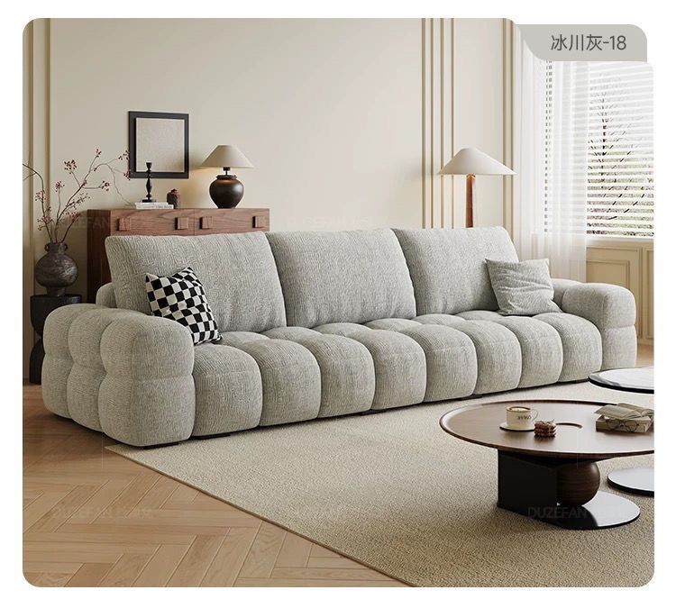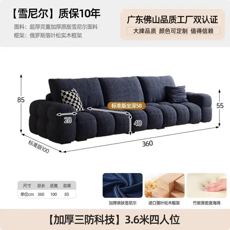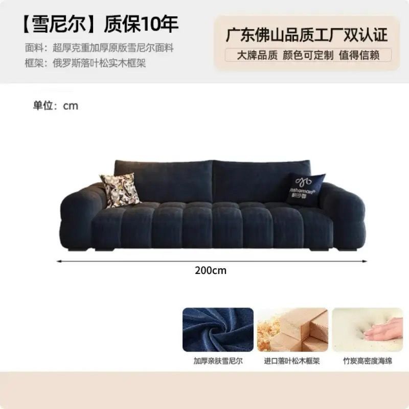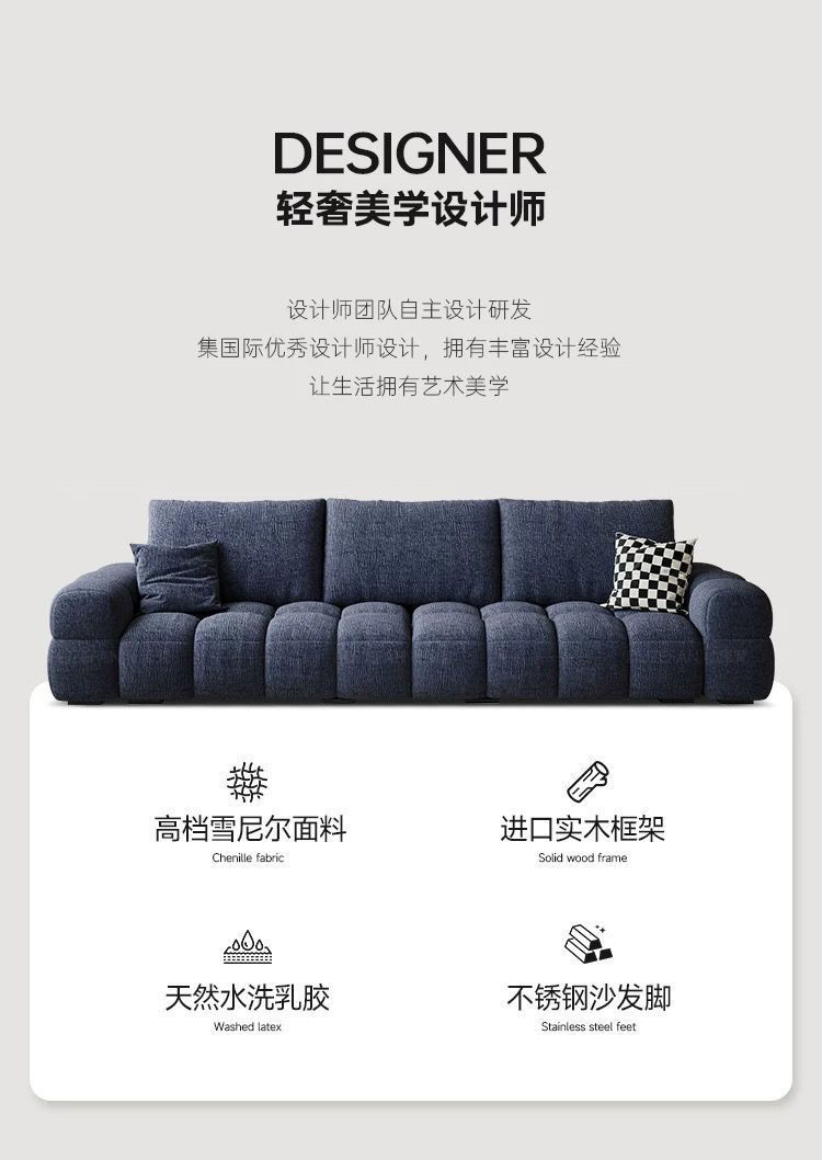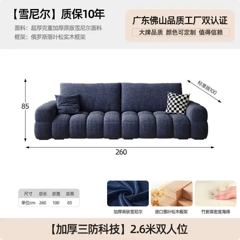 奶油风泡芙雪尼尔布艺沙发现代简约小户型客厅棉花糖云朵直排沙发