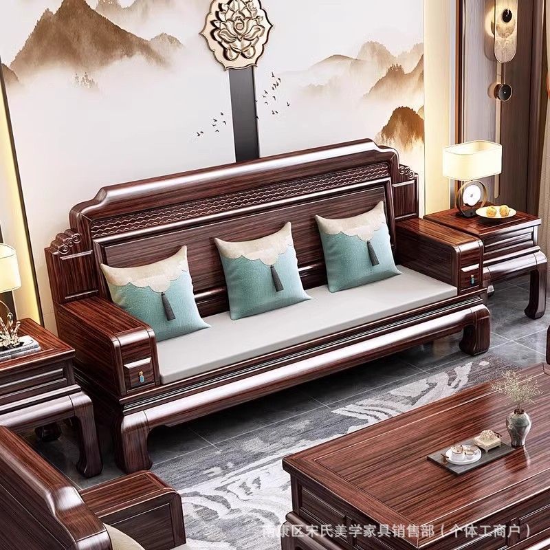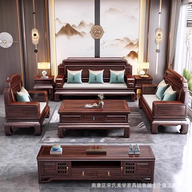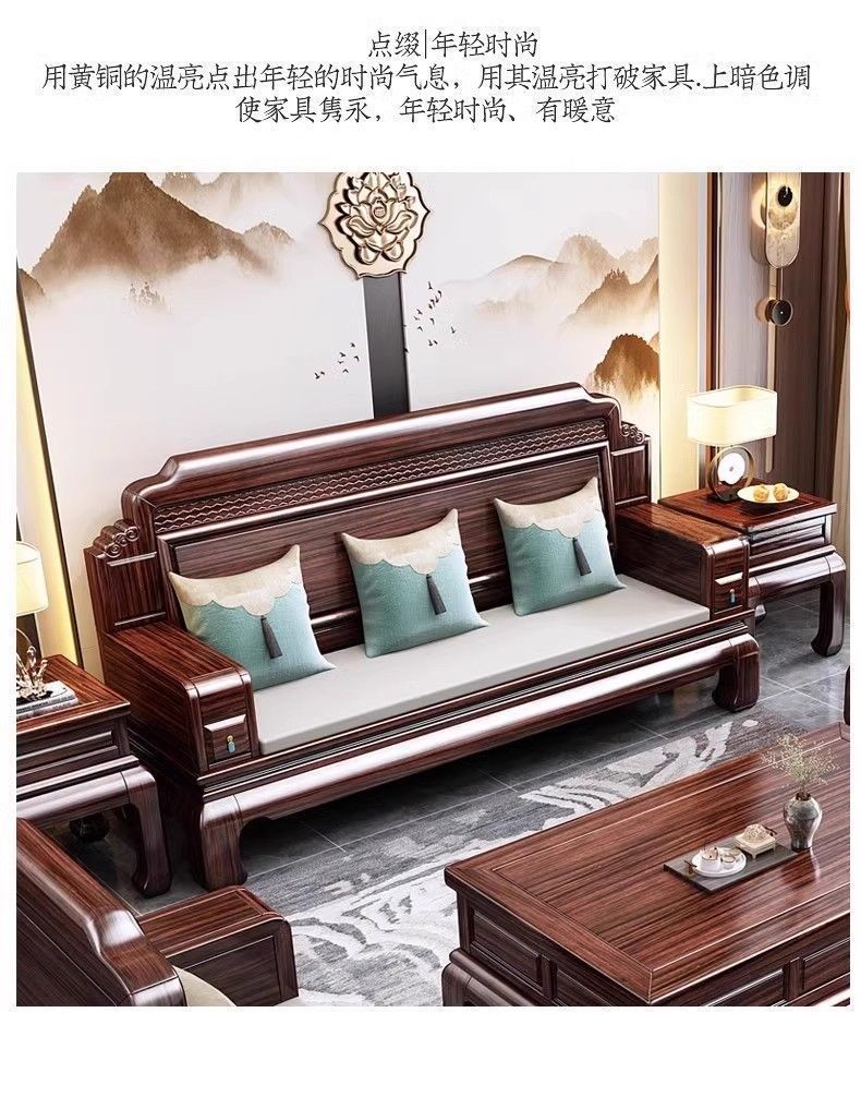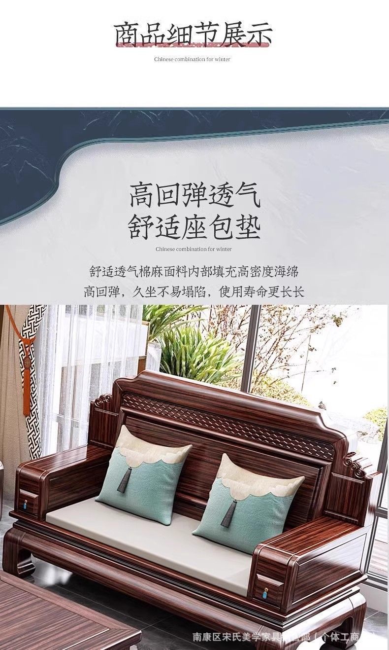 花梨木实木沙发 别墅客厅沙发组合榫卯雕花冬夏两用 宋氏美学沙发