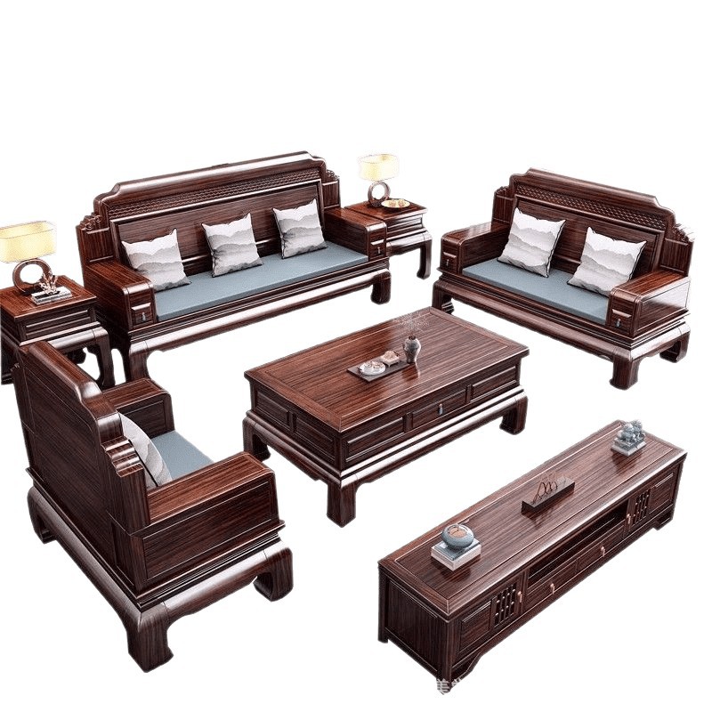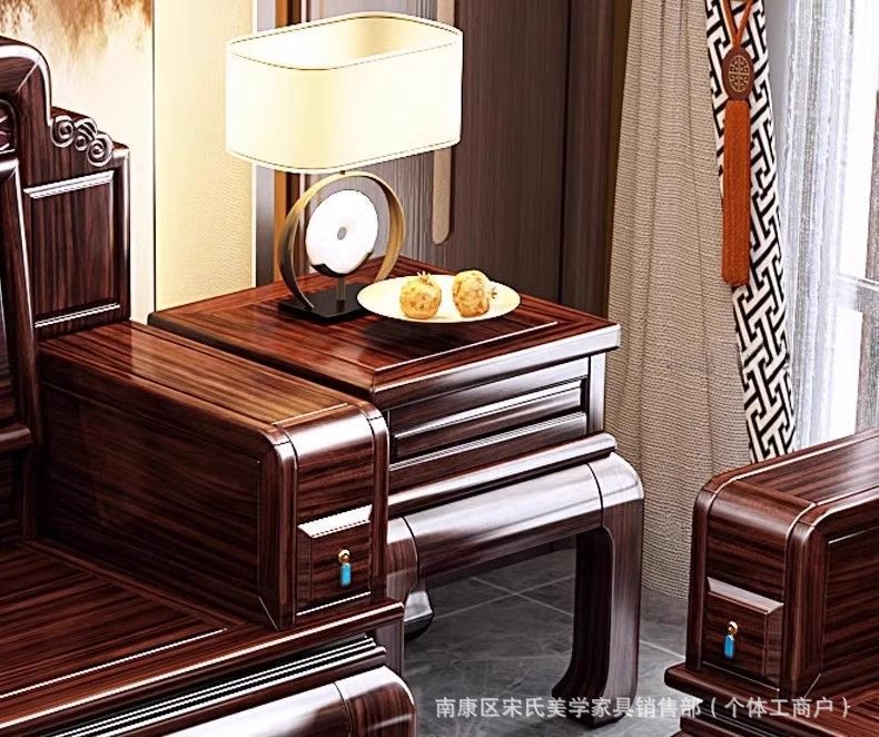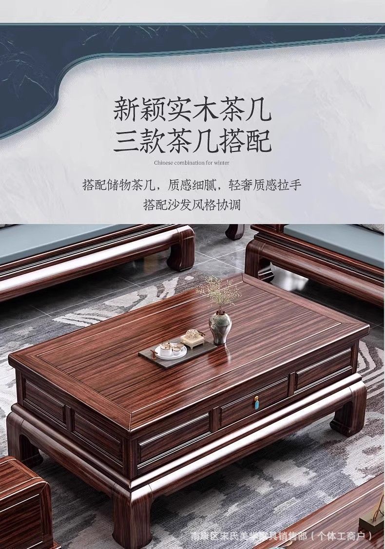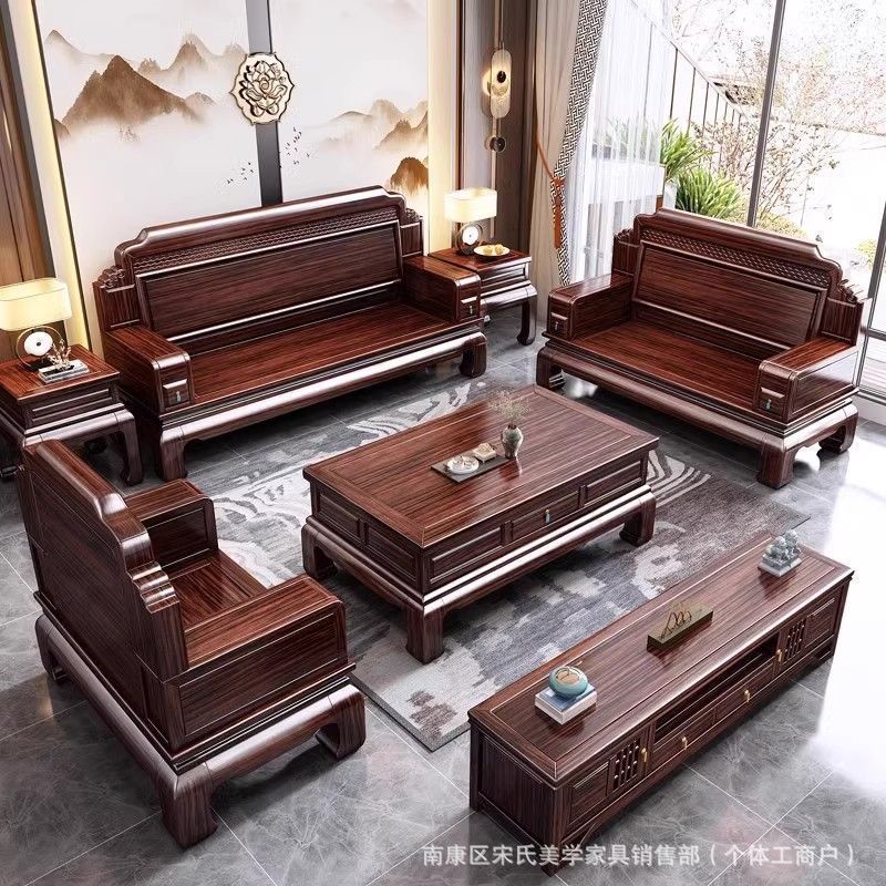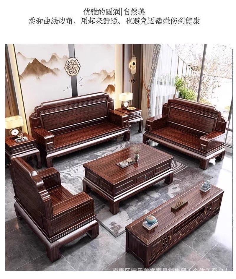 花梨木实木沙发 别墅客厅沙发组合榫卯雕花冬夏两用 宋氏美学沙发
