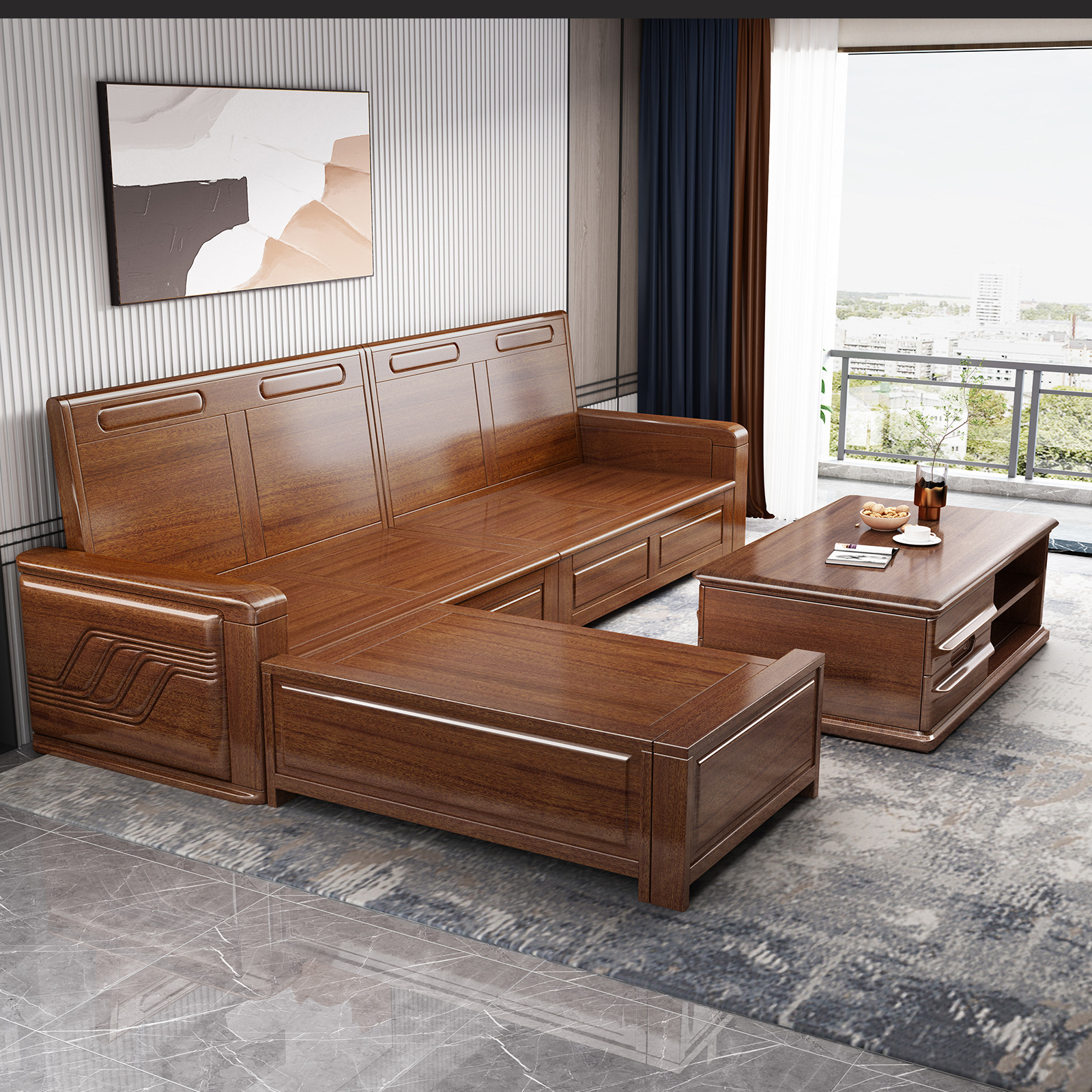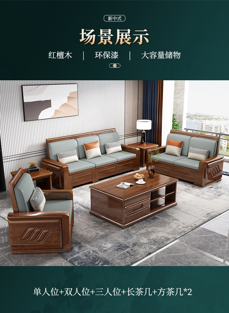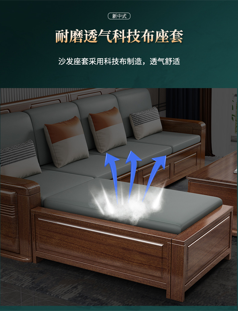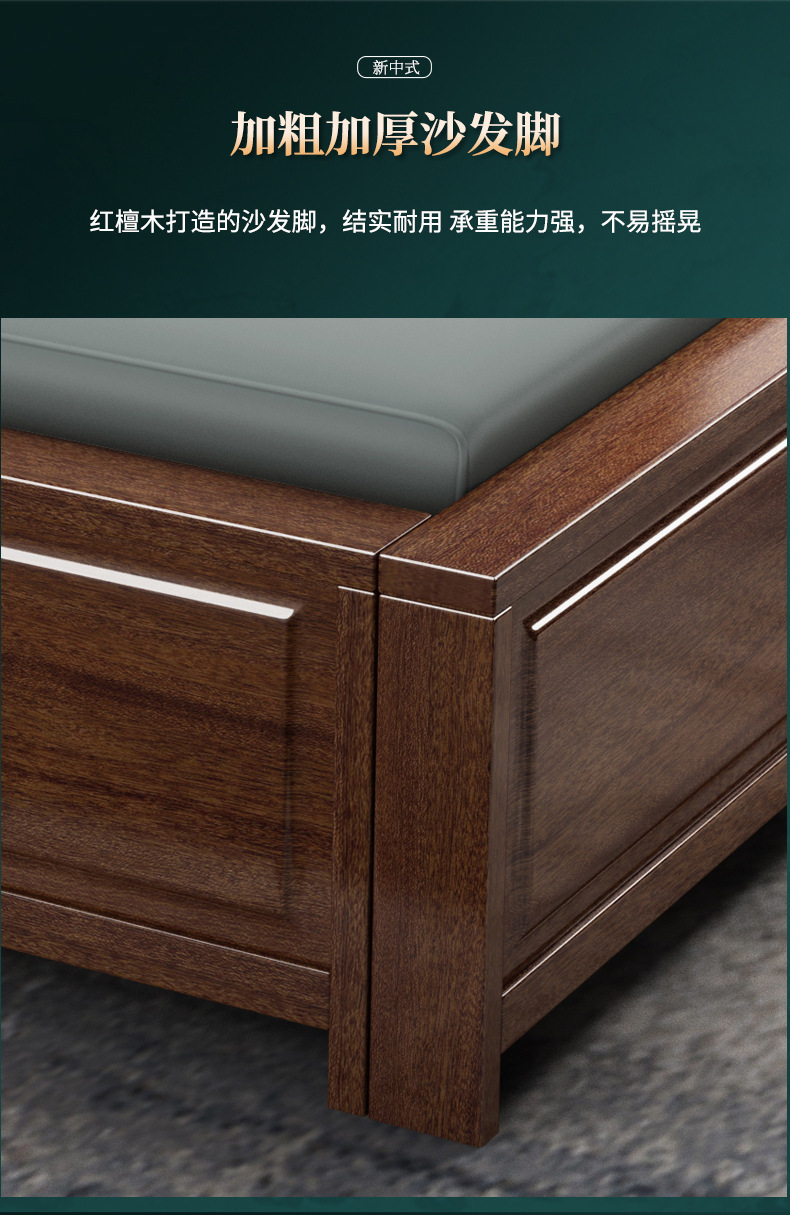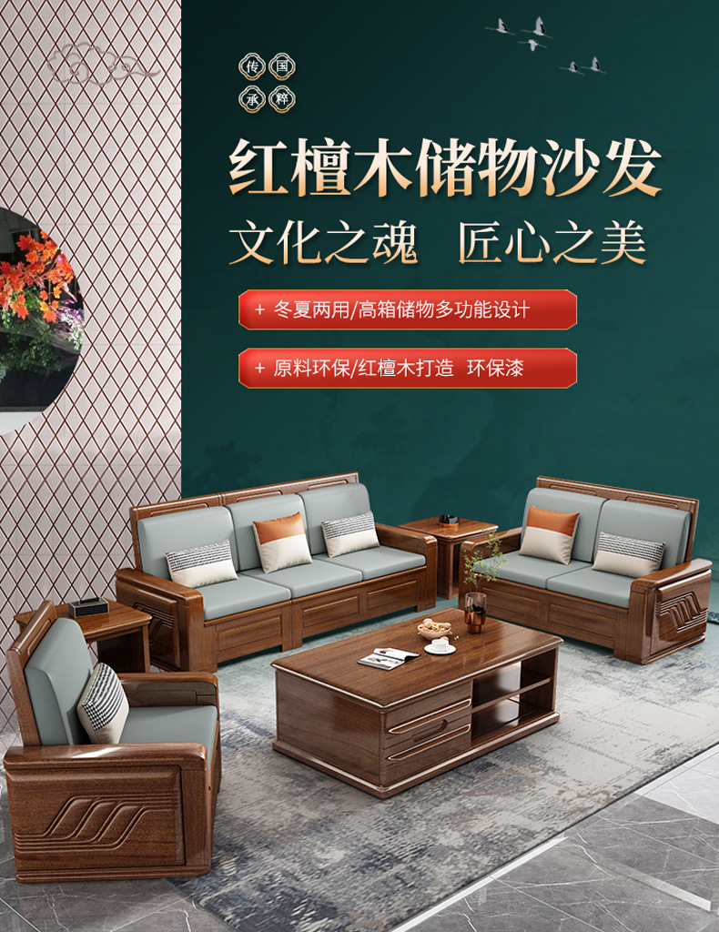 新中式实木沙发红檀木家具冬夏两用客厅储物现代简约贵妃转角沙发