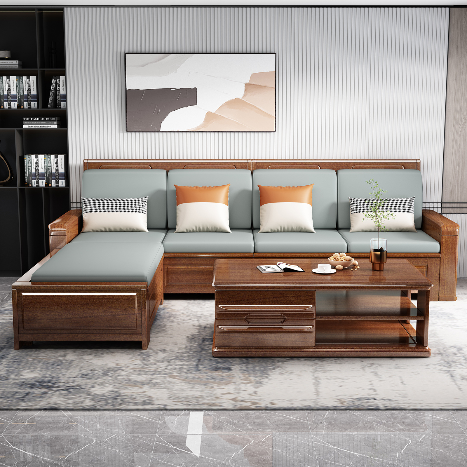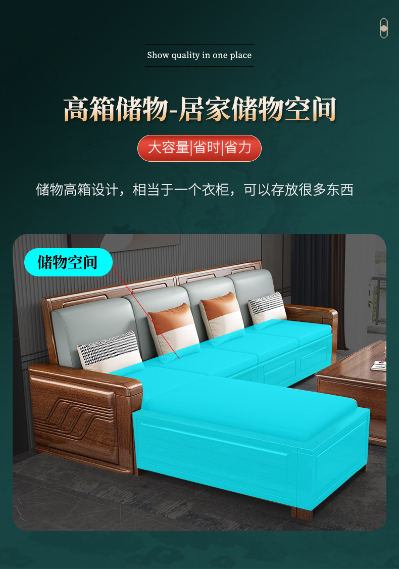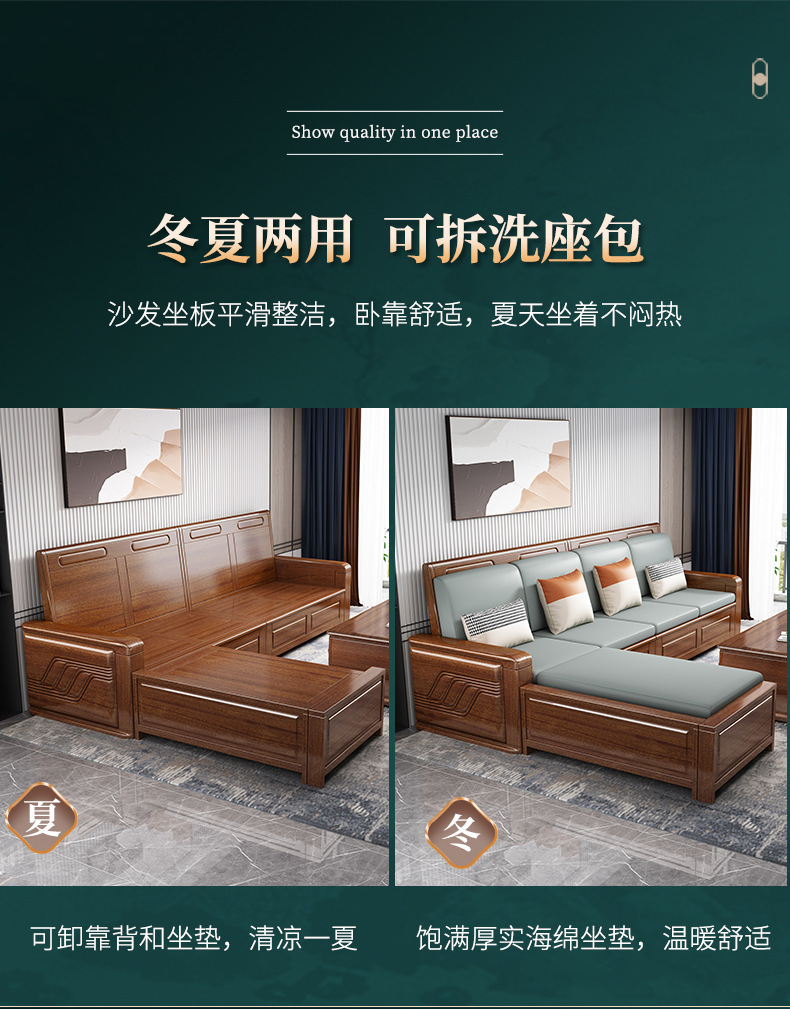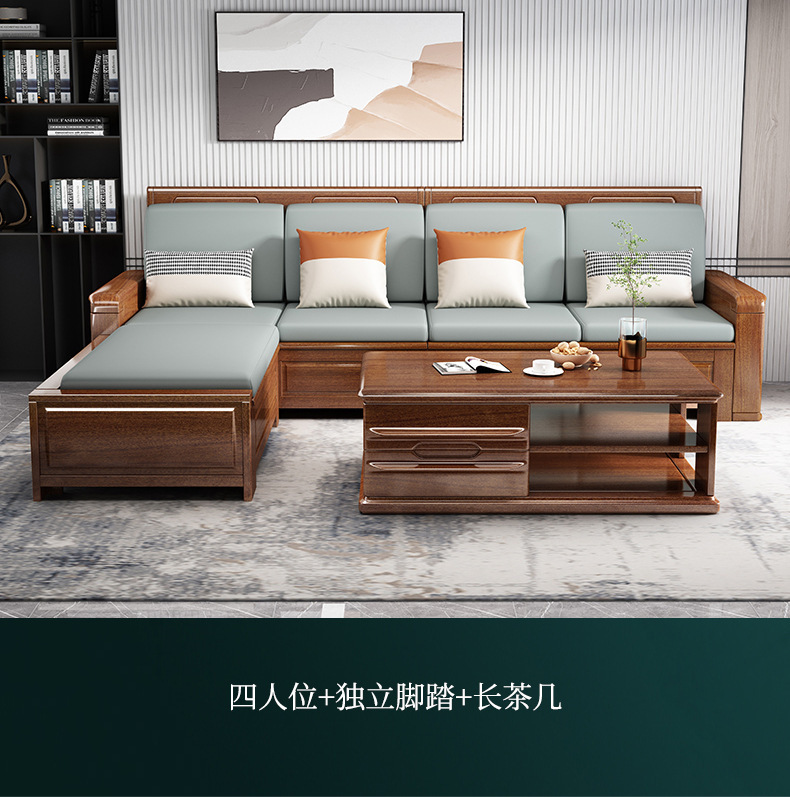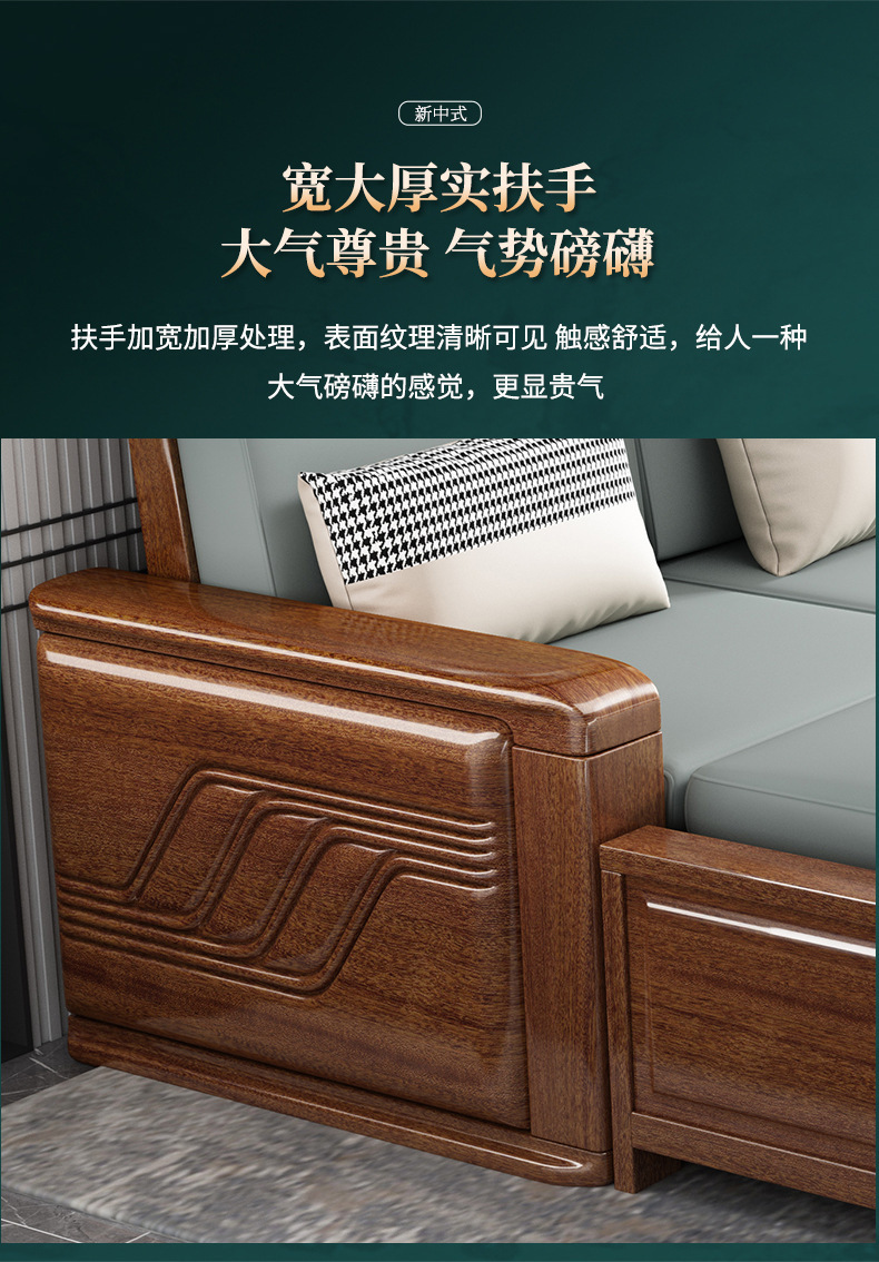 新中式实木沙发红檀木家具冬夏两用客厅储物现代简约贵妃转角沙发