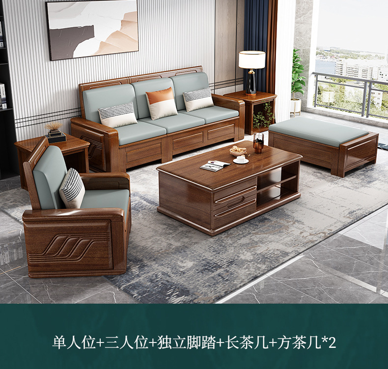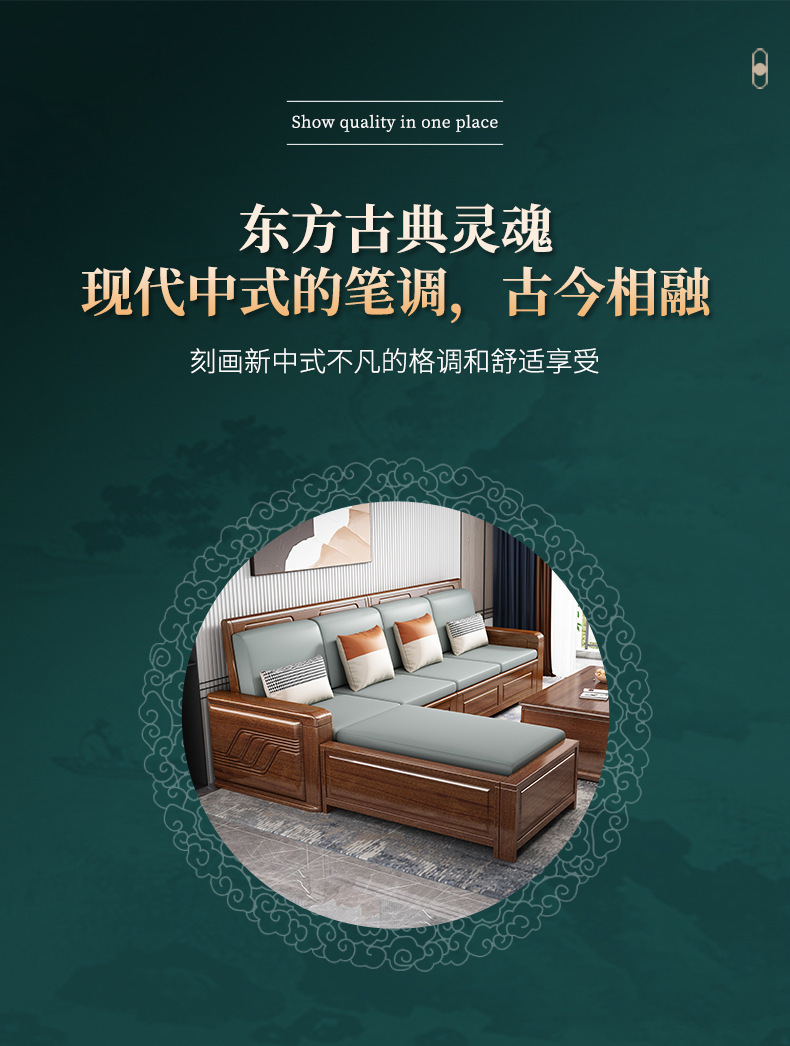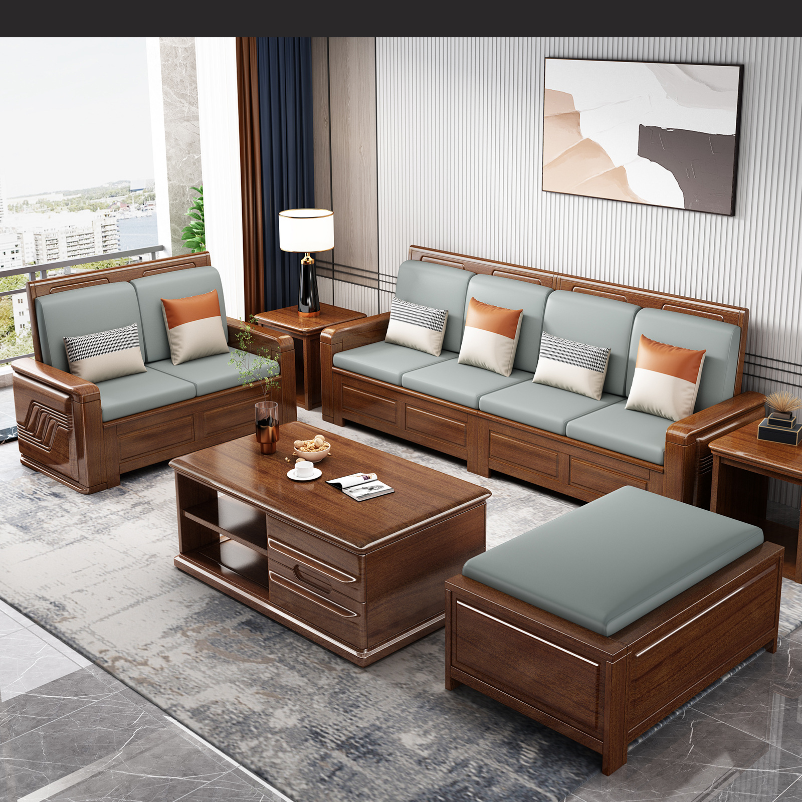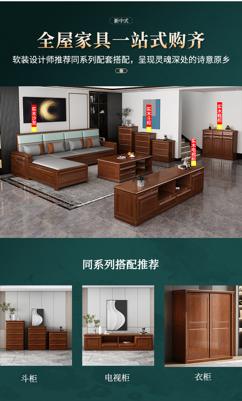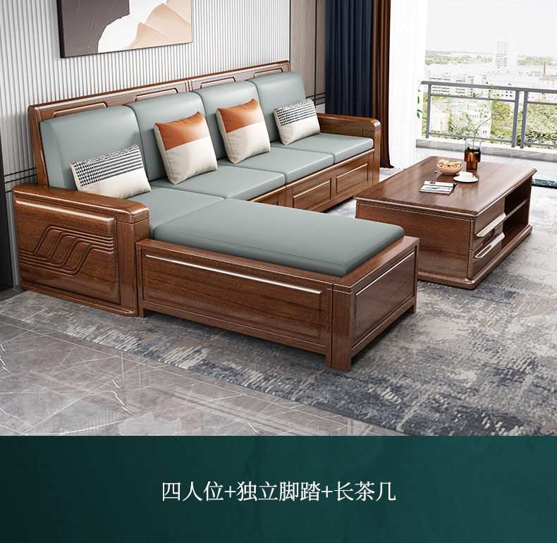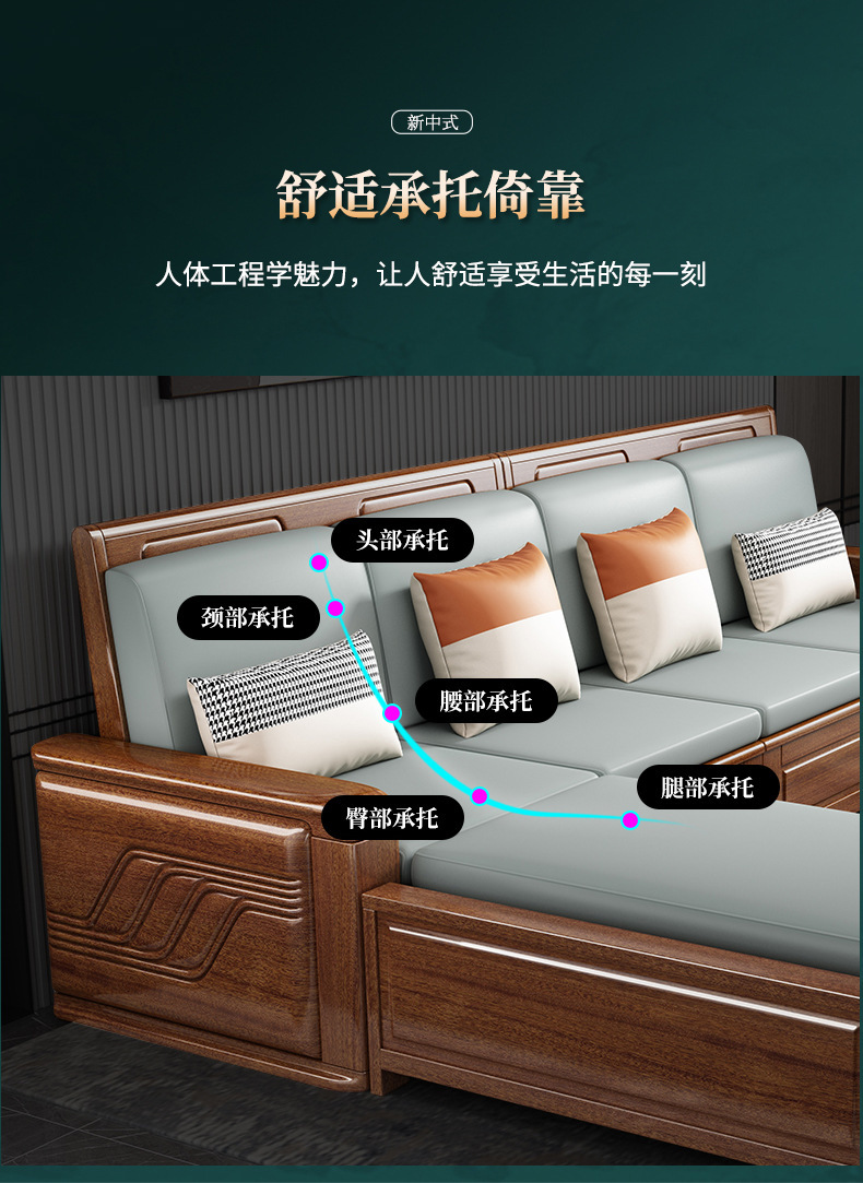 新中式实木沙发红檀木家具冬夏两用客厅储物现代简约贵妃转角沙发