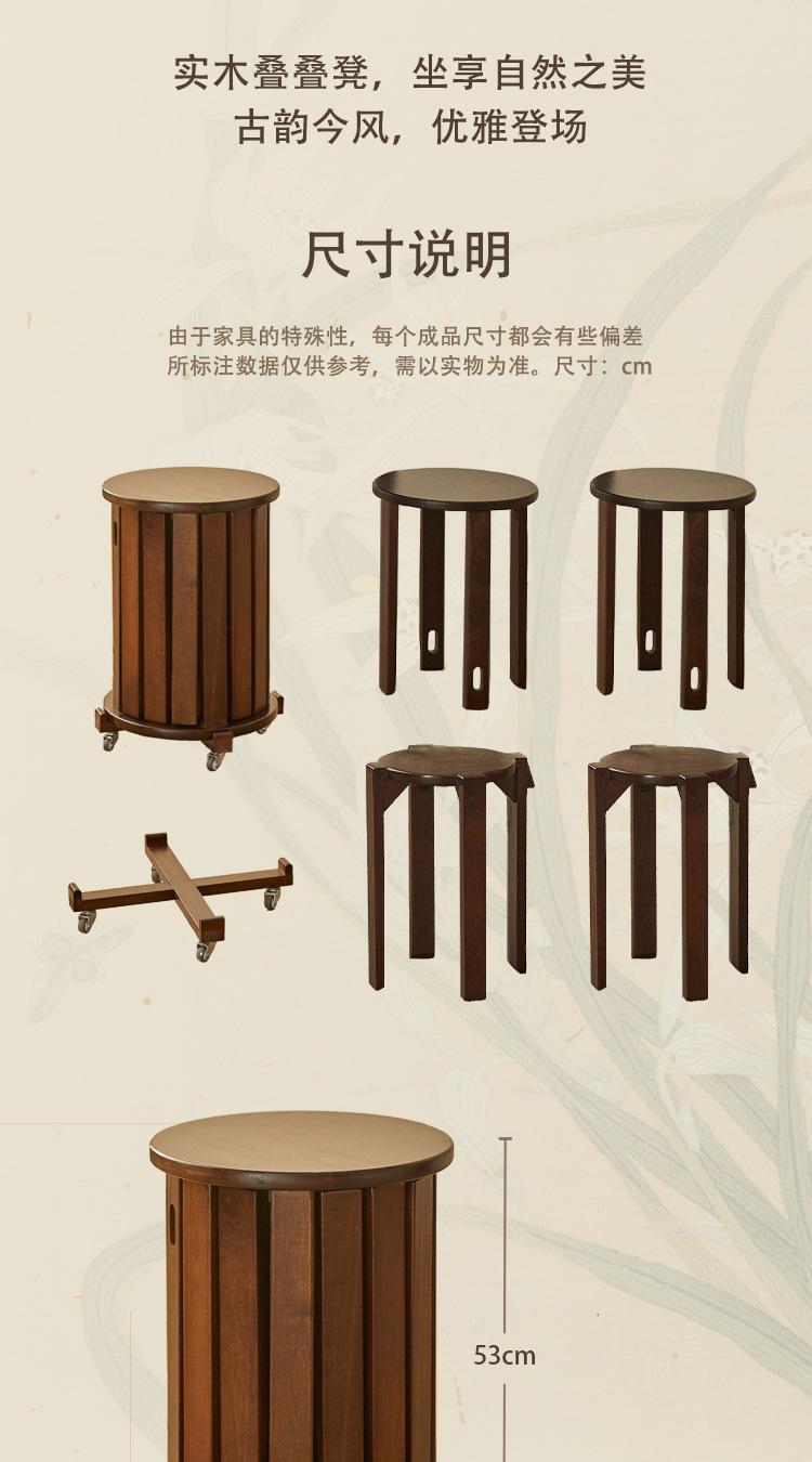 茶几凳子实木家具餐桌凳餐椅沙发客厅小凳子可叠放折叠待客备用凳