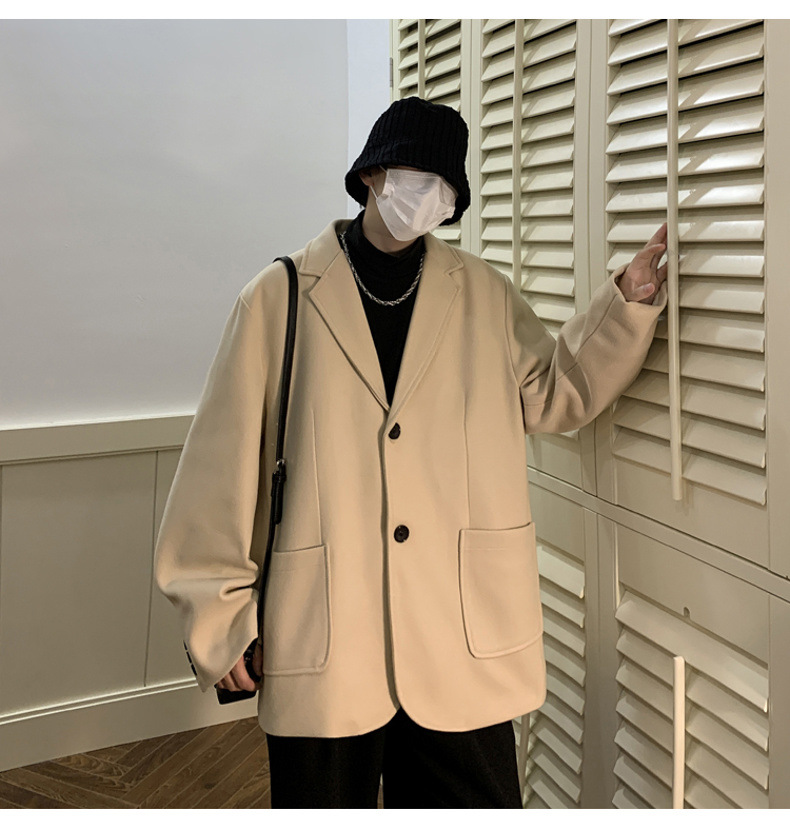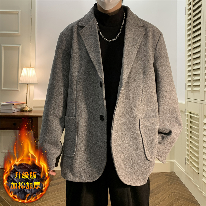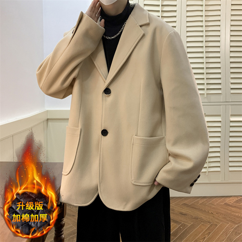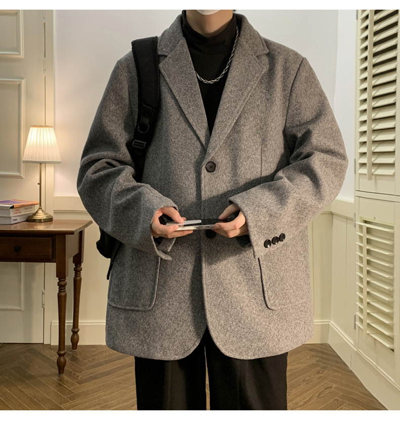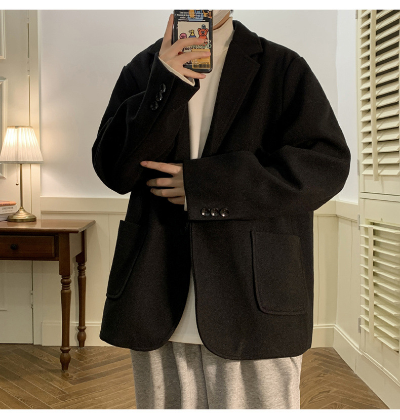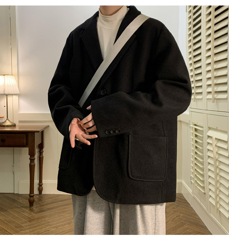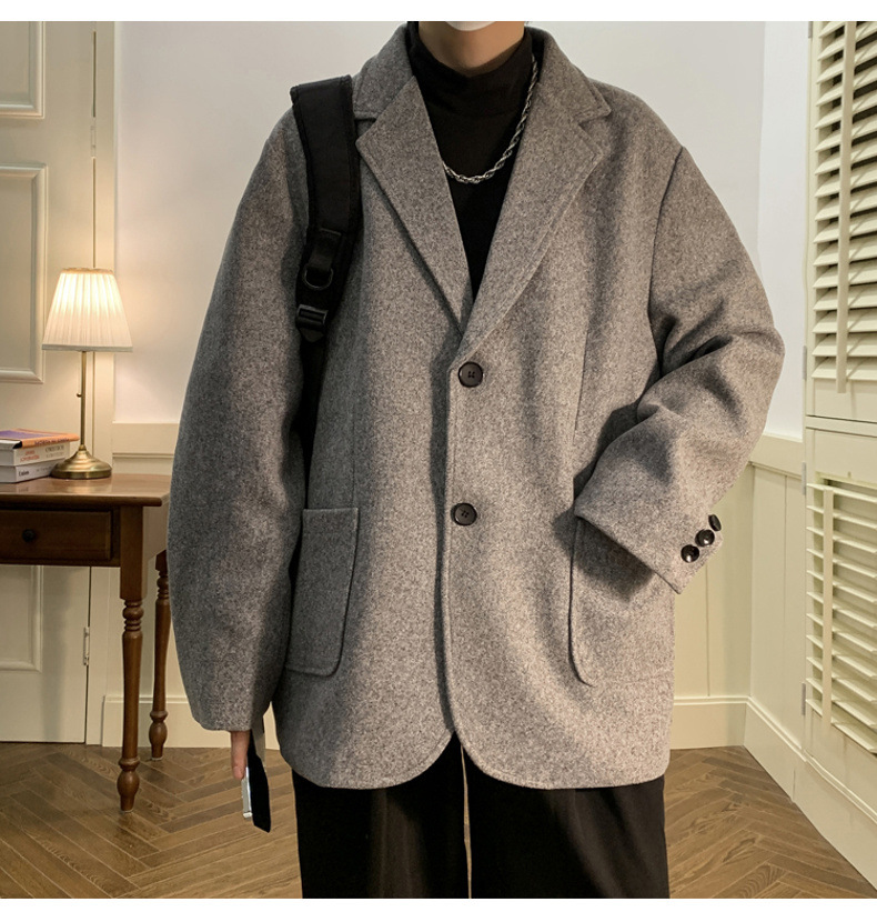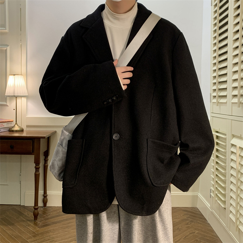 西装男秋季潮牌男装宽松衣服休闲男款外套男士加厚短款毛呢大衣潮