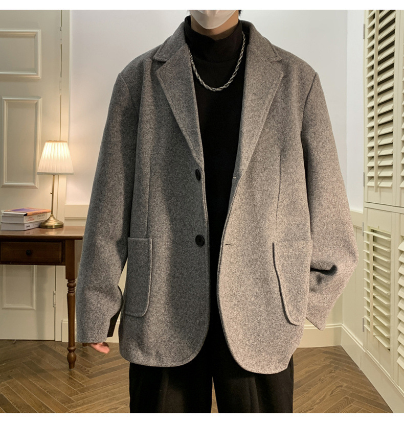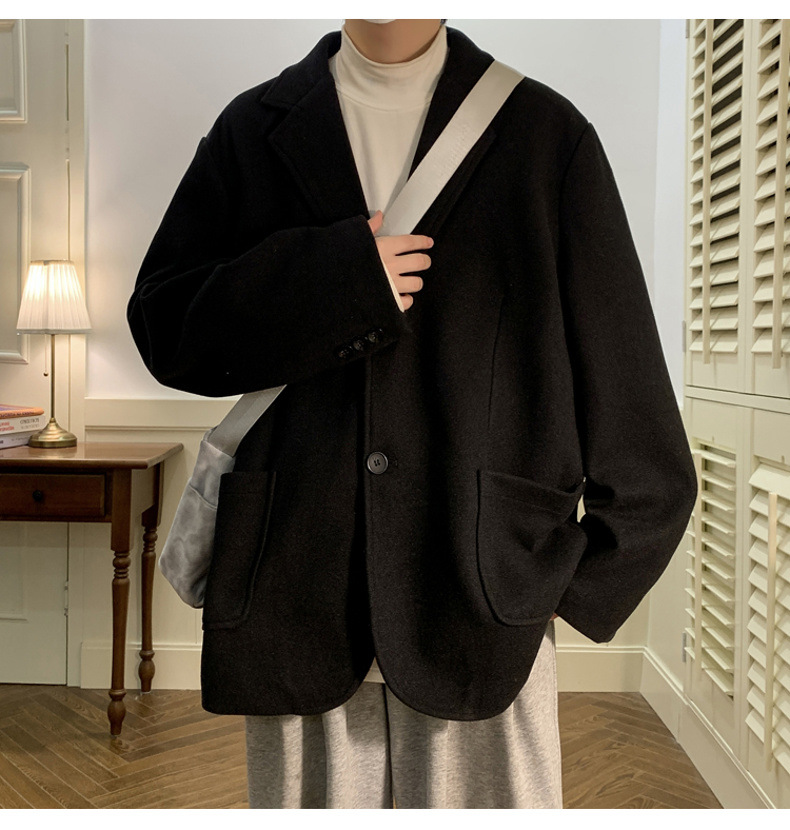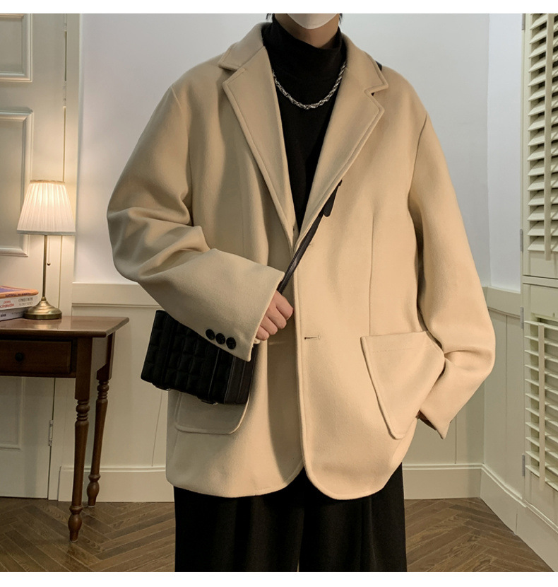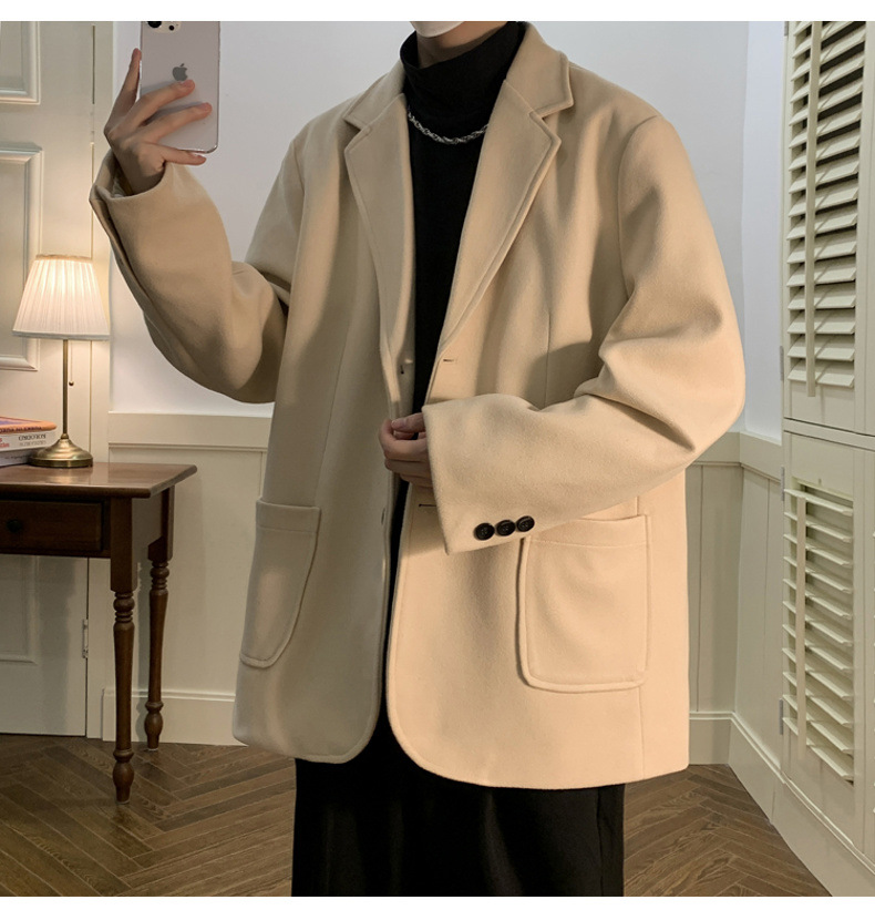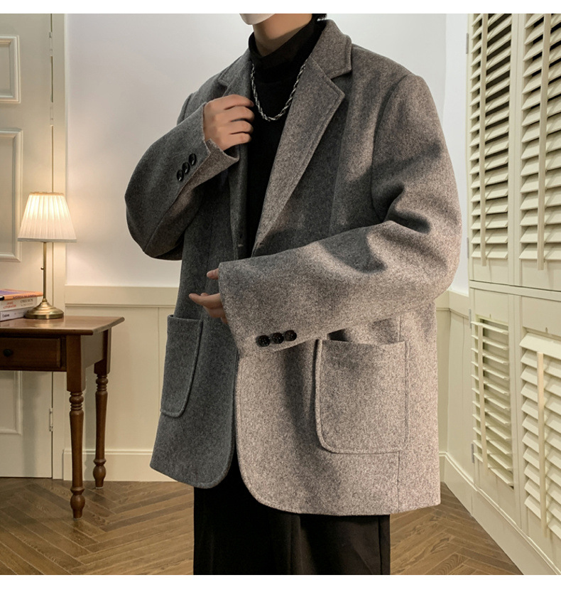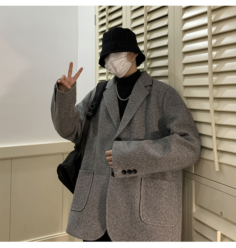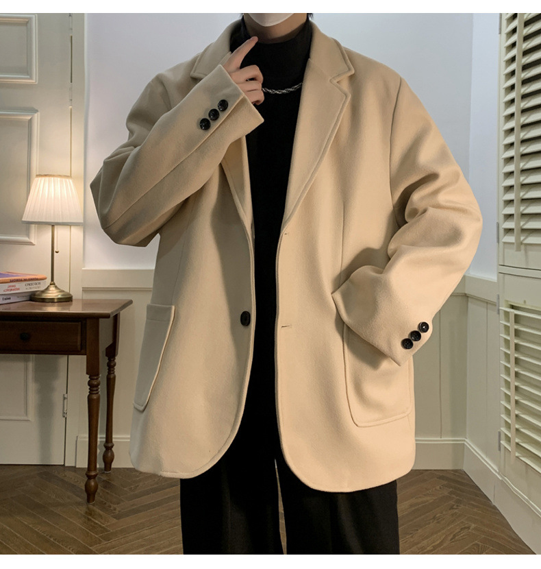西装男秋季潮牌男装宽松衣服休闲男款外套男士加厚短款毛呢大衣潮