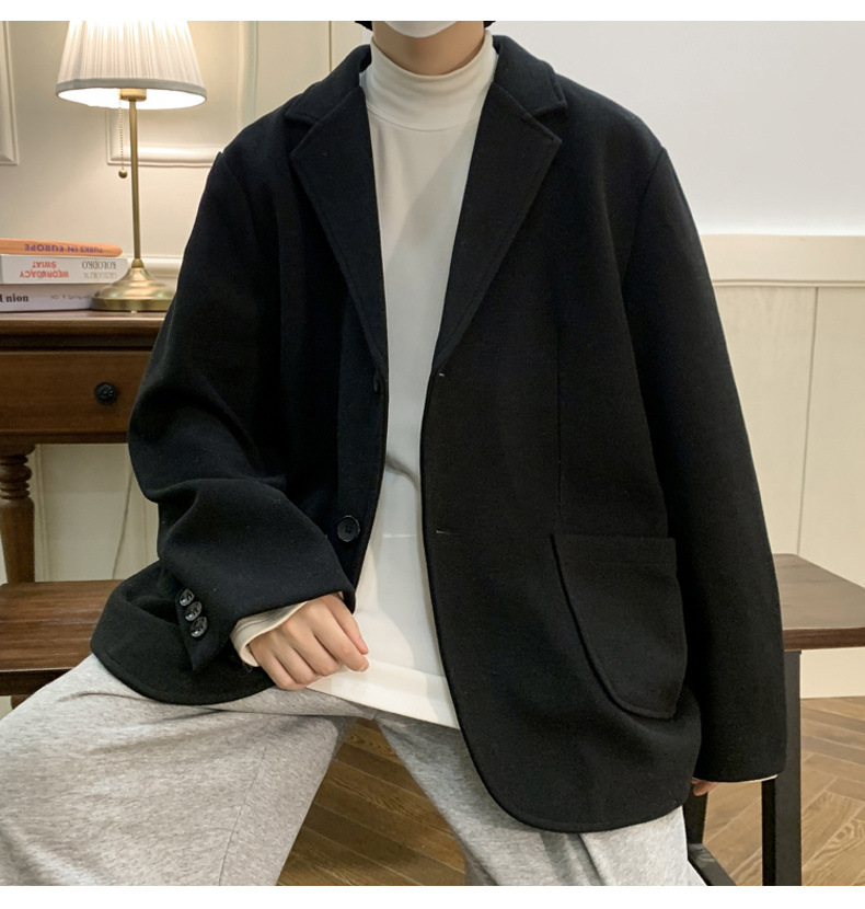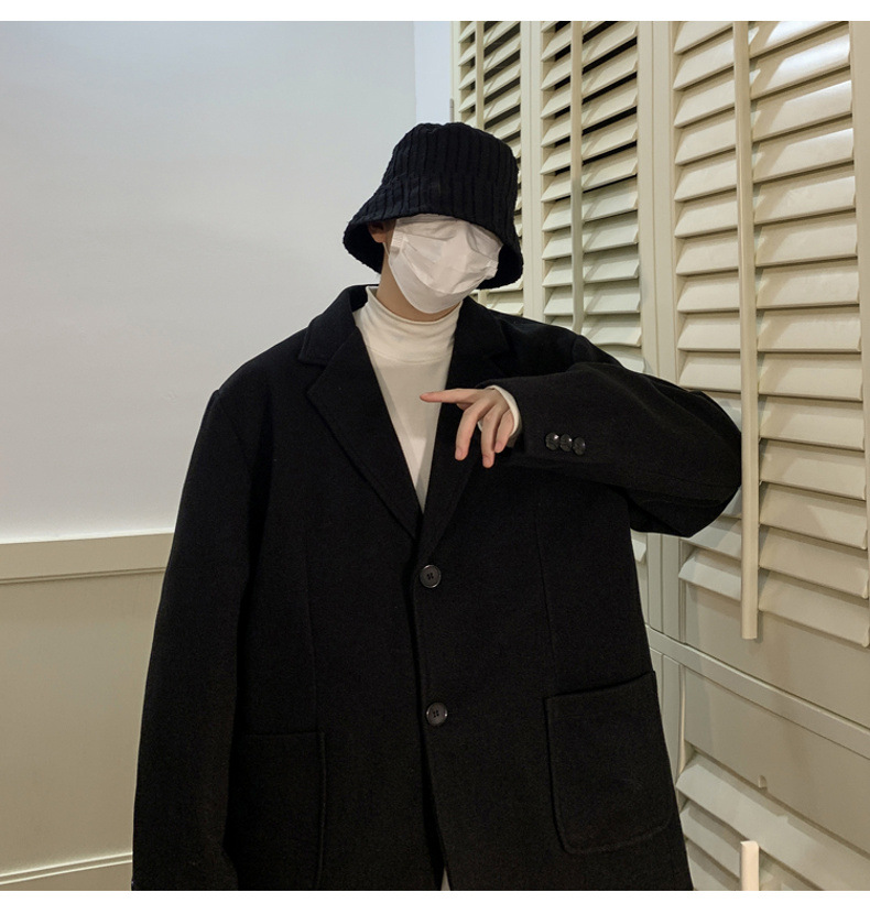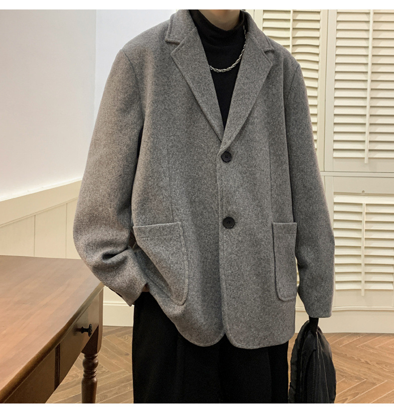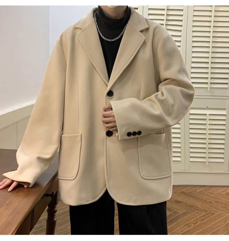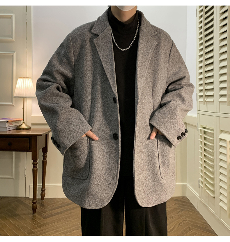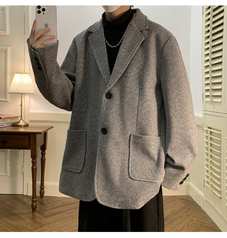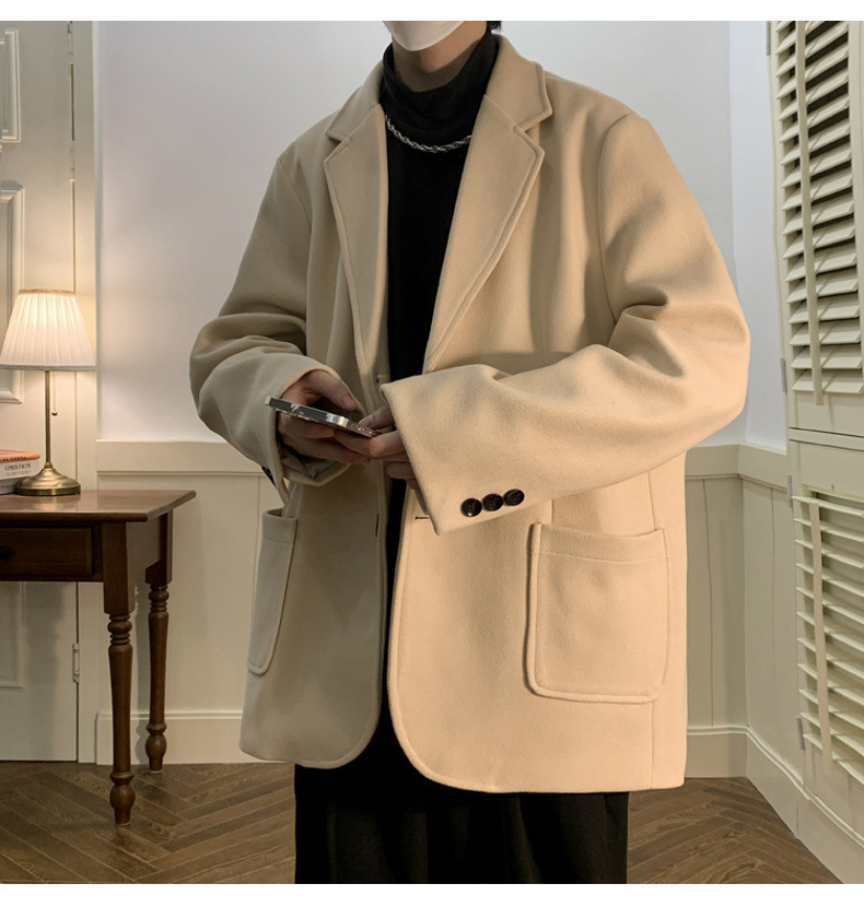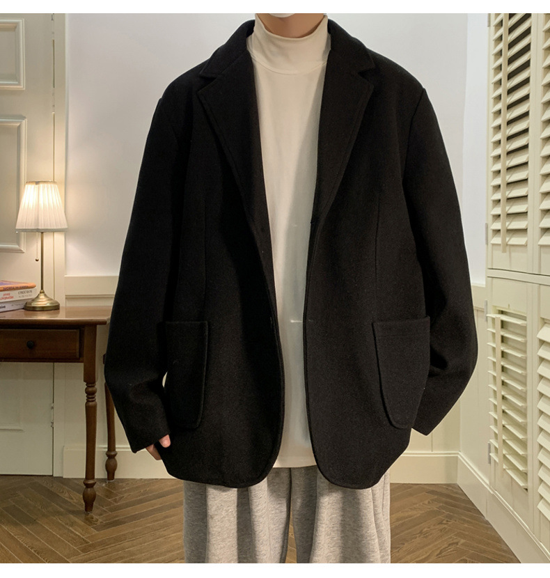 西装男秋季潮牌男装宽松衣服休闲男款外套男士加厚短款毛呢大衣潮