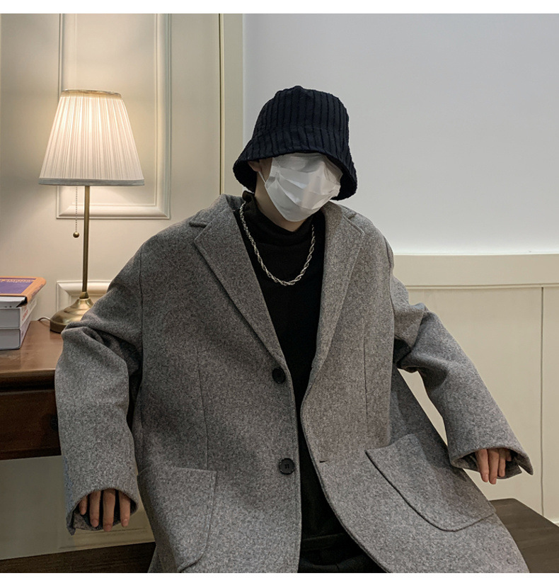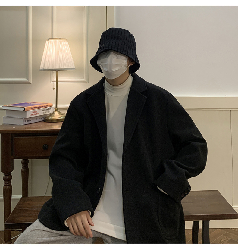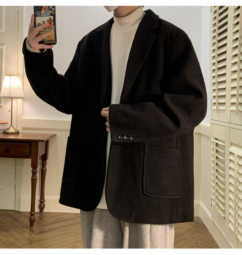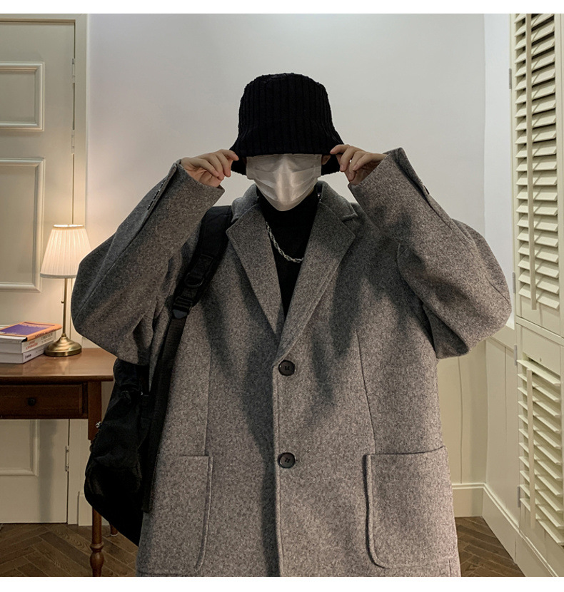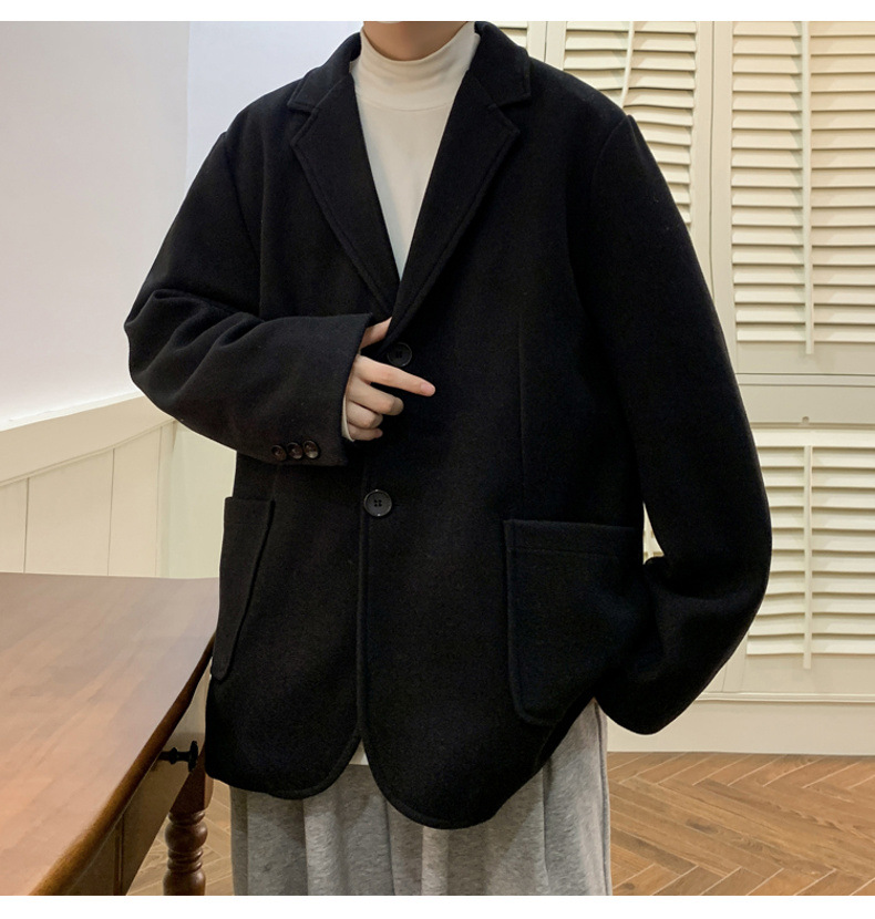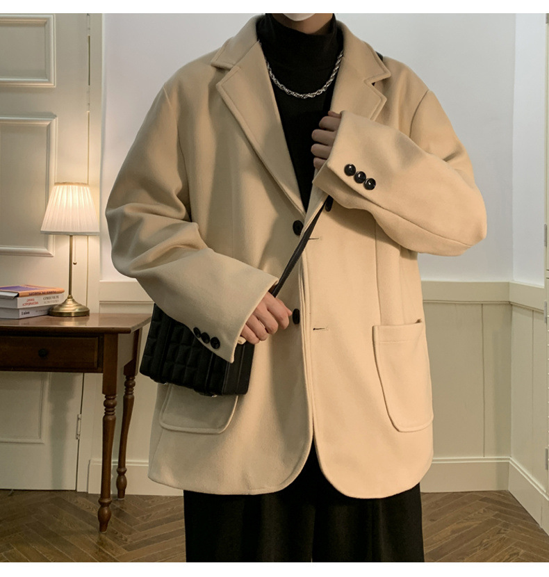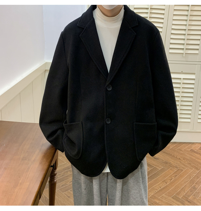 西装男秋季潮牌男装宽松衣服休闲男款外套男士加厚短款毛呢大衣潮